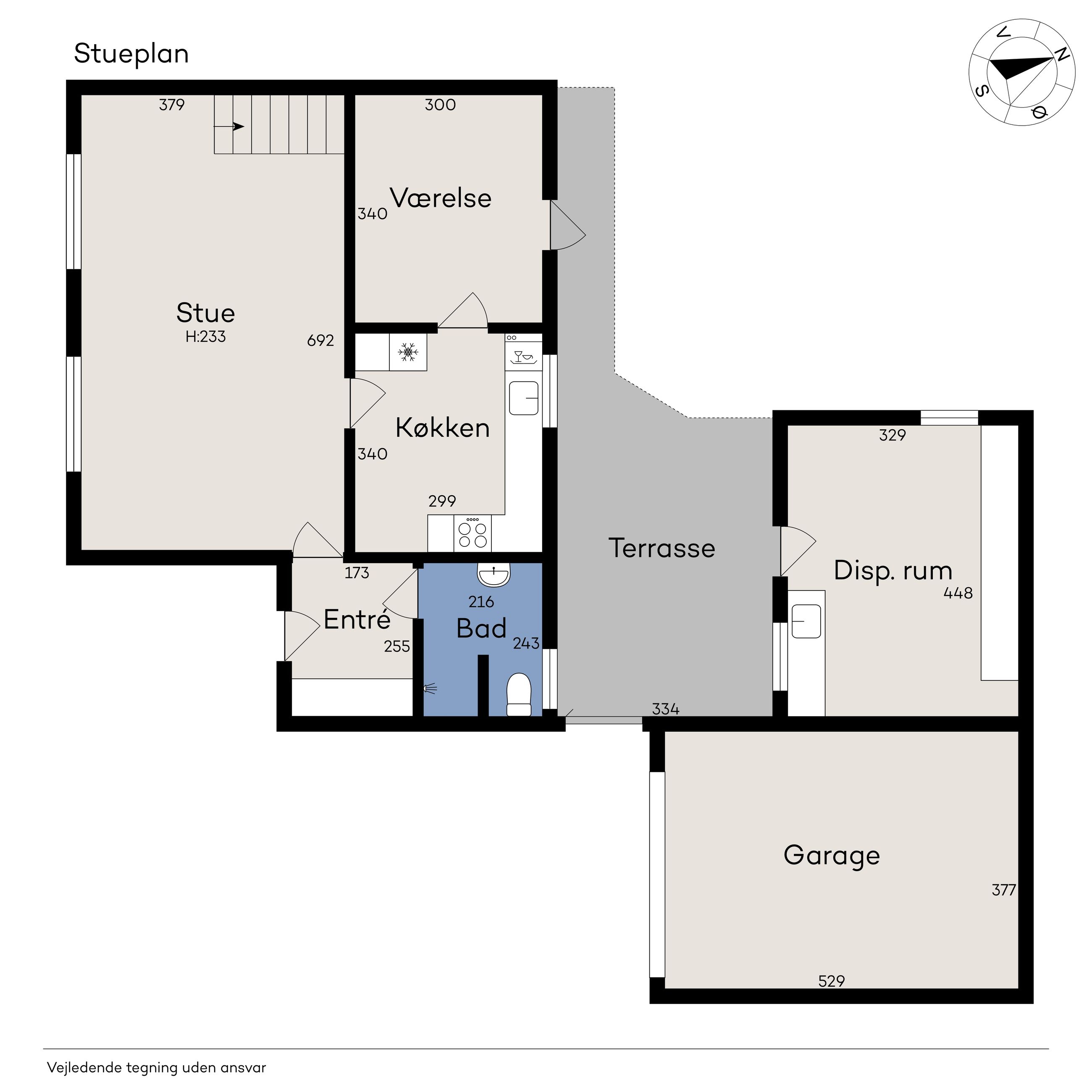 spiseafdeling. Fra køkkenet er adgang til det ene af de 3 af husets værelser. Fra dette værelse er adgang