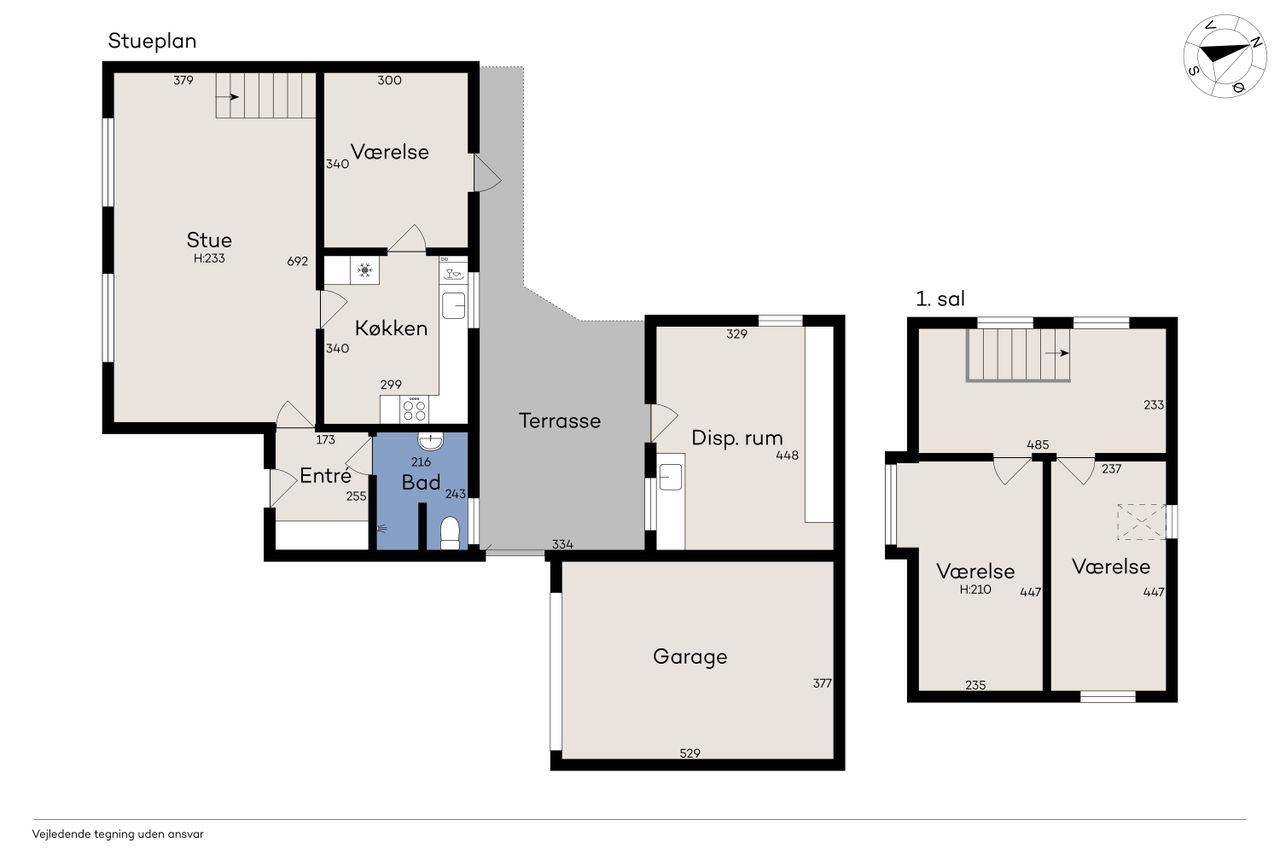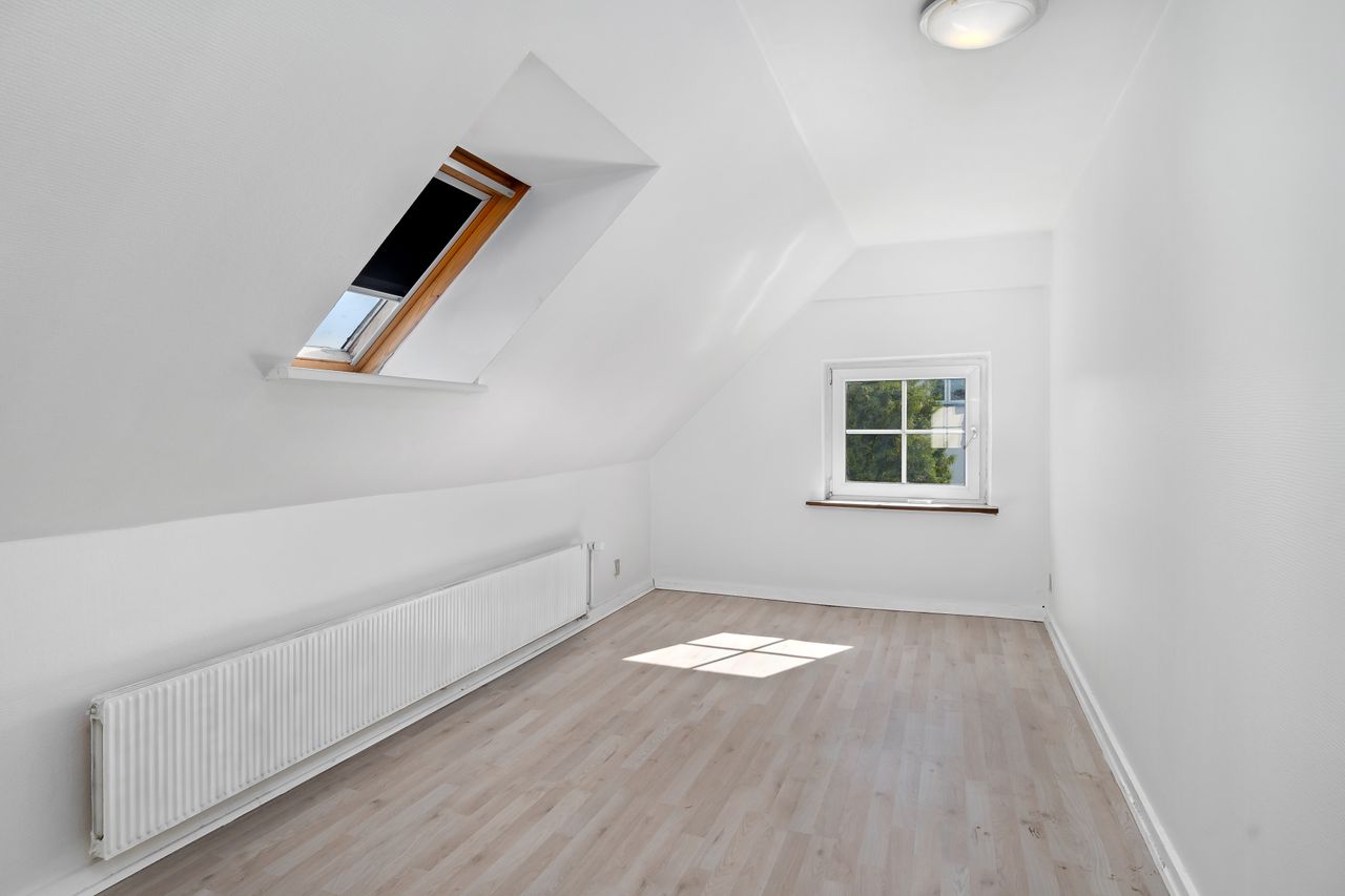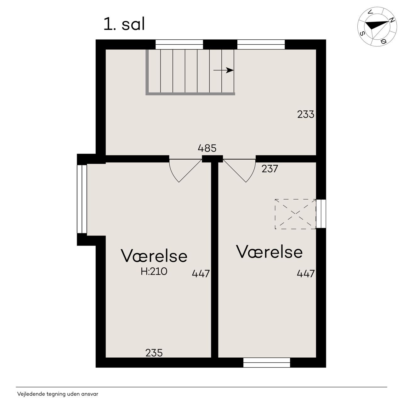 til baghaven. I stuen er ligeløbstrappe til 1. sal, hvor findes stort repos / fordelingsgang, der giver adgang