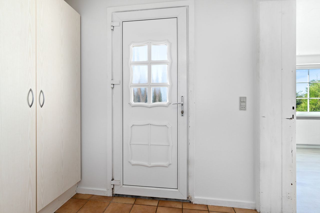 Velkommen indenfor til entre/fordelingsgang med dobbeltskab / garderobe. Adgang til godt badeværelse
