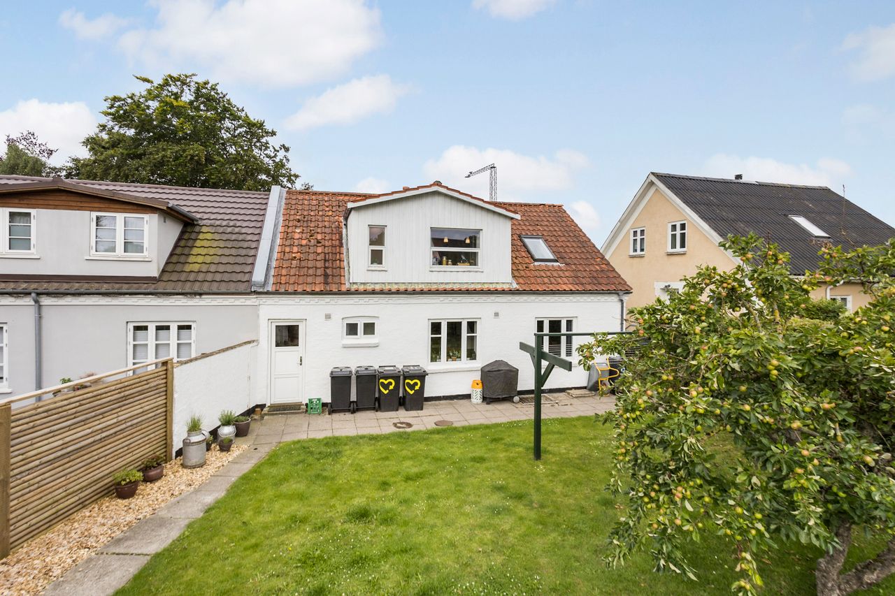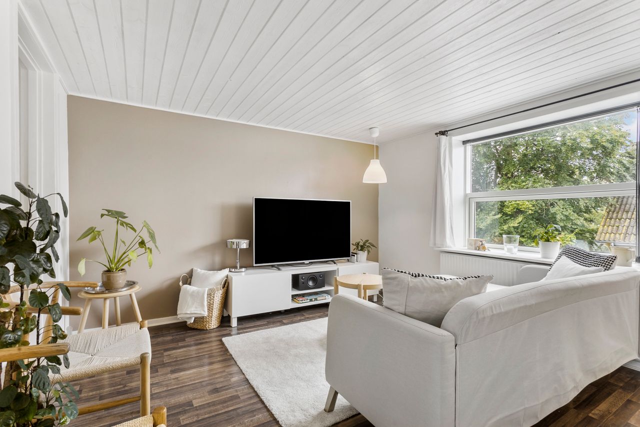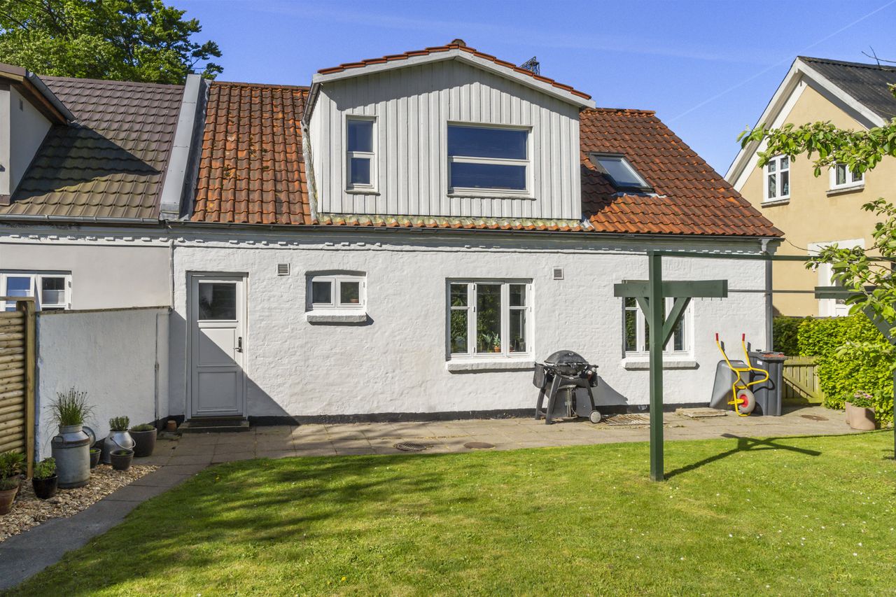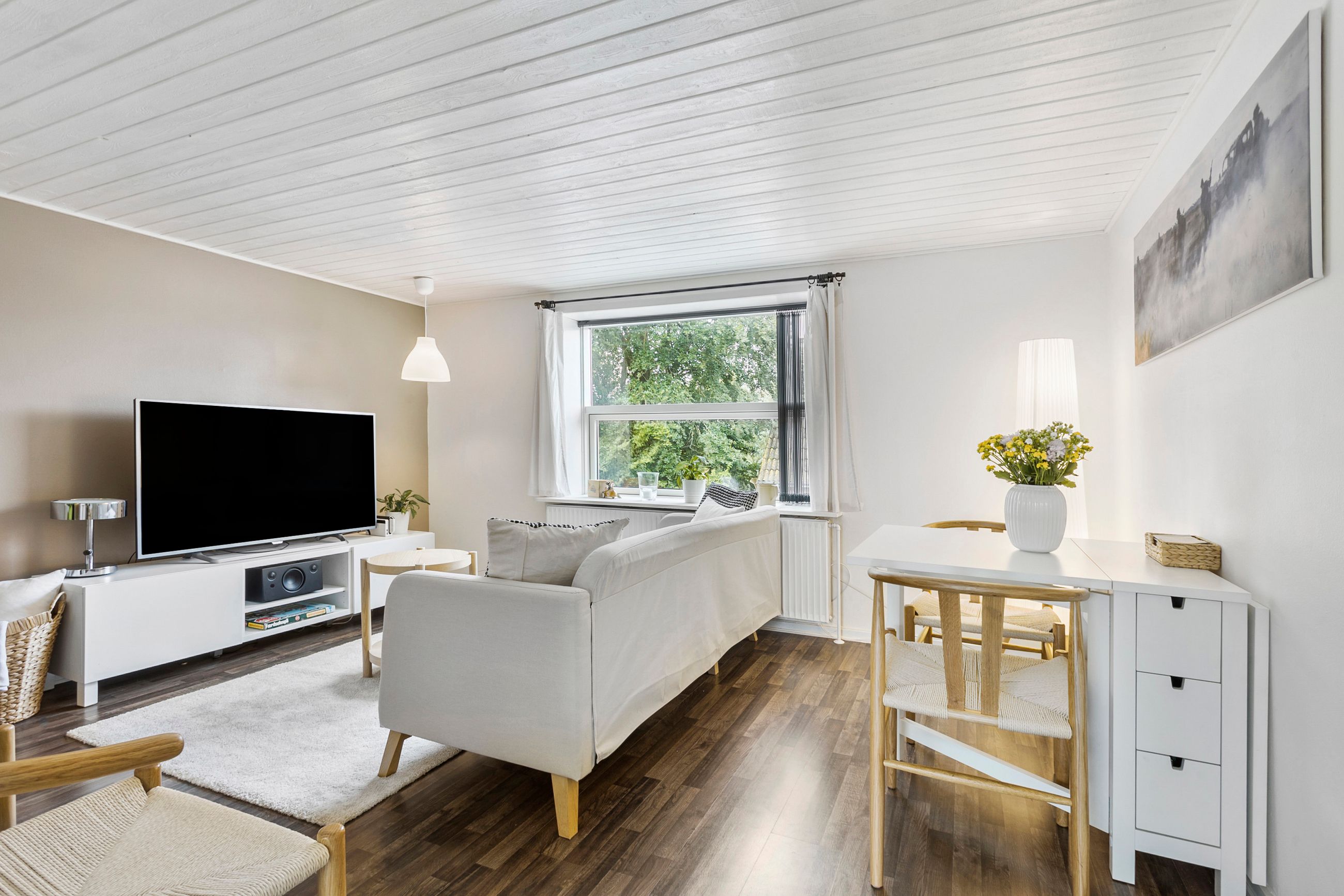 Ejendommen stråler af karakter med sin hvide facade, røde tegltag og charmerende vinduer. Her er der to ejerlejligheder, og din bolig er beliggende på 1.sal. Man deler med underboen en skøn frodig og lukket have som er helt unikt for området. Et tilhørende udhus giver dig ekstra plads til praktiske gøremål, og parkering er ingen sag idet der må parkeres lige ved ejendommen uden tidsbegrænsning. Idet man er 2 om ejendommen, er det ligeledes meget lave fællesudgifter.