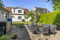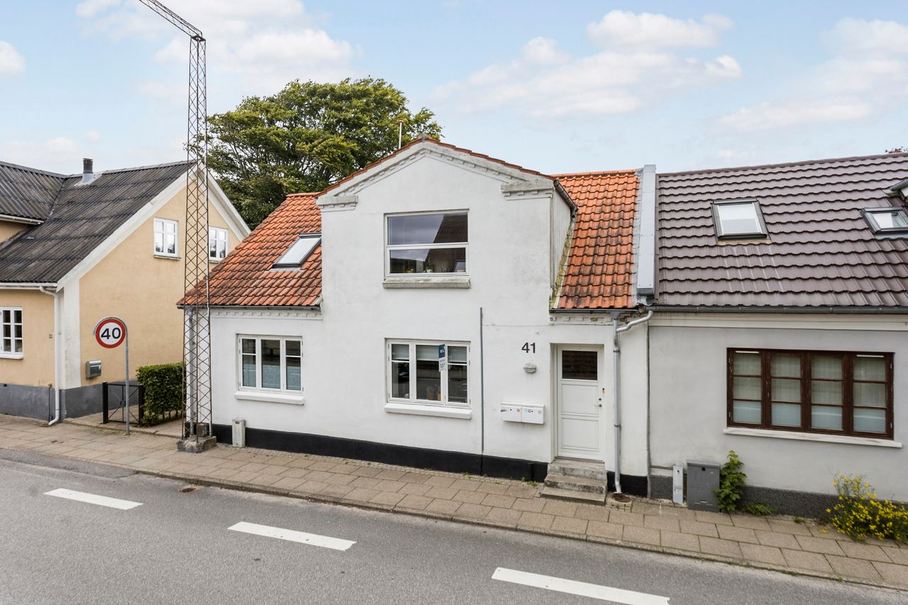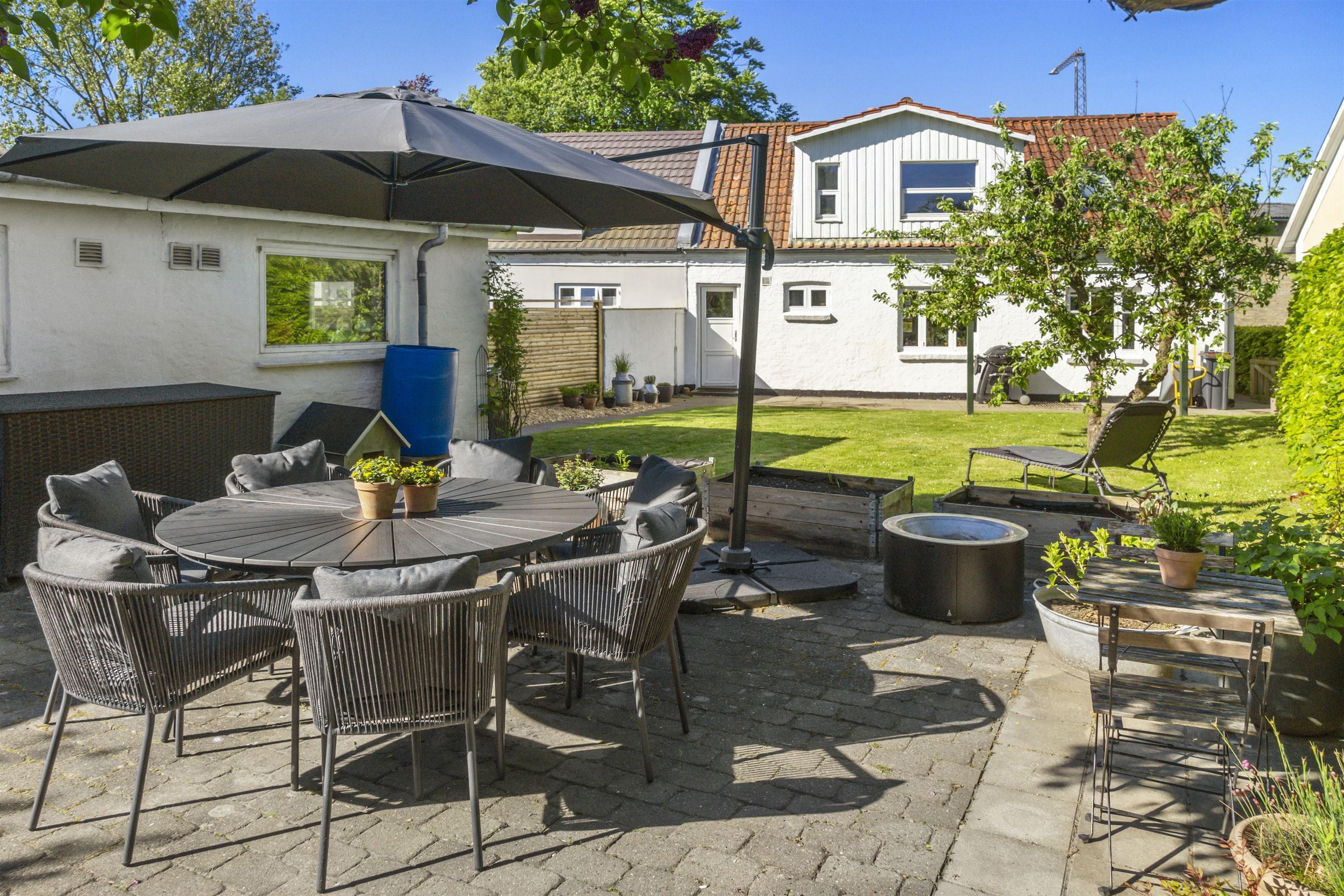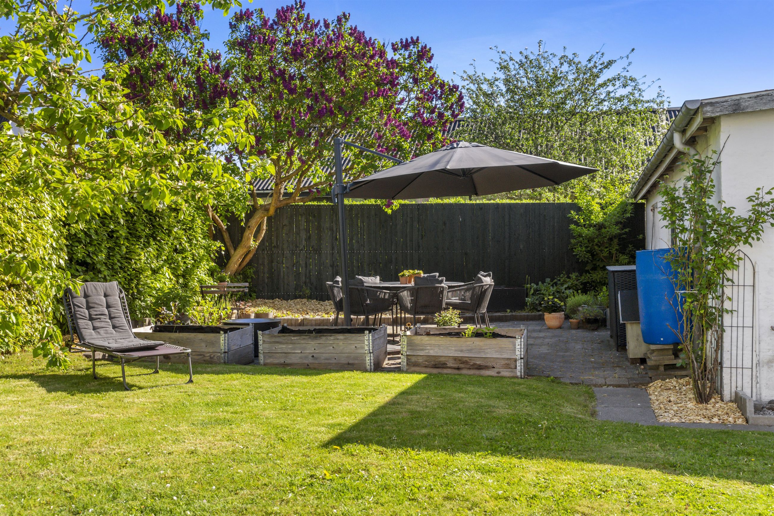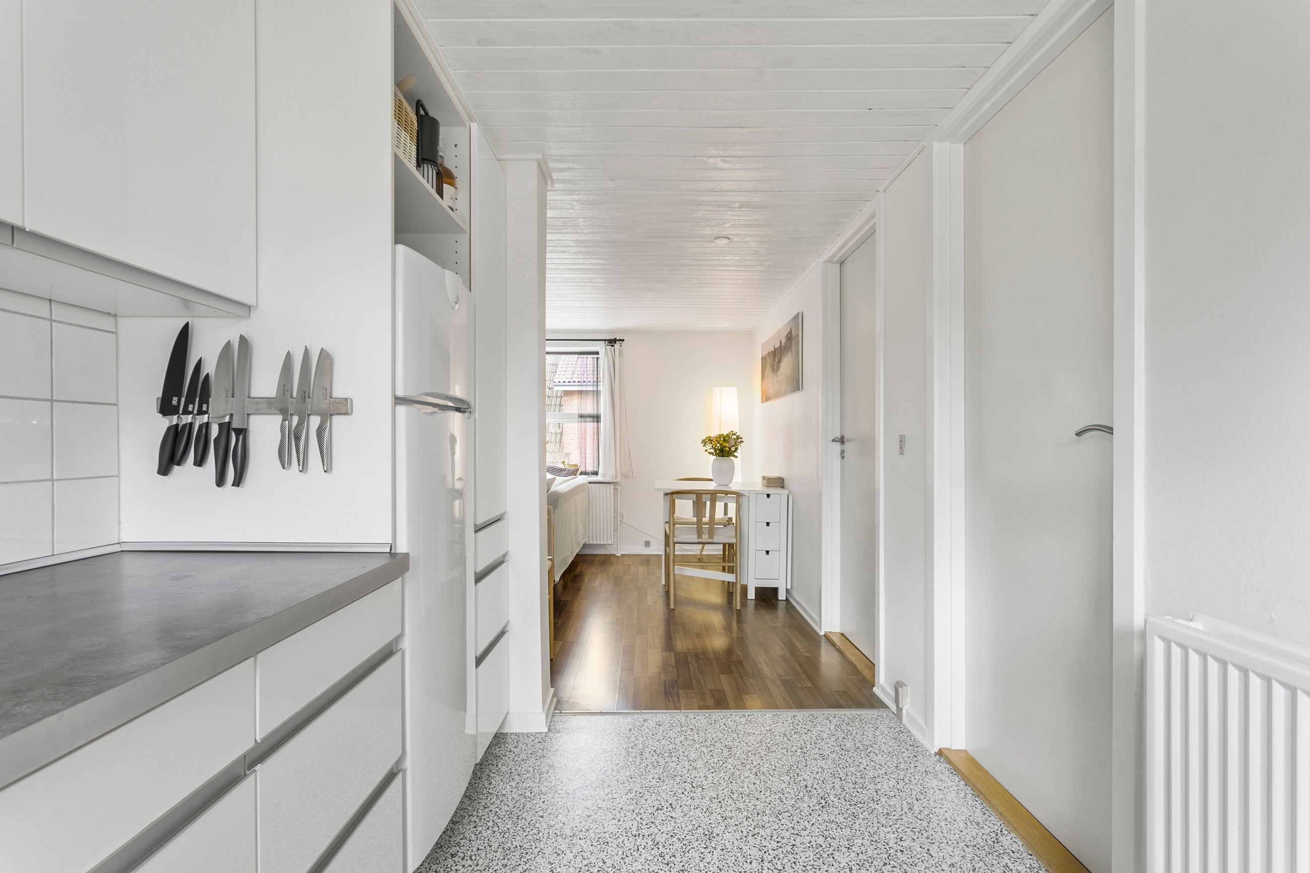 Ejendommen stråler af karakter med sin hvide facade, røde tegltag og charmerende vinduer. Her er der to ejerlejligheder, og din bolig er beliggende på 1.sal. Man deler med underboen en skøn frodig og lukket have som er helt unikt for området. Et tilhørende udhus giver dig ekstra plads til praktiske gøremål, og parkering er ingen sag idet der må parkeres lige ved ejendommen uden tidsbegrænsning. Idet man er 2 om ejendommen, er det ligeledes meget lave fællesudgifter.