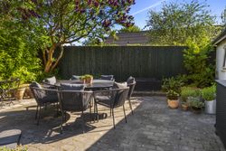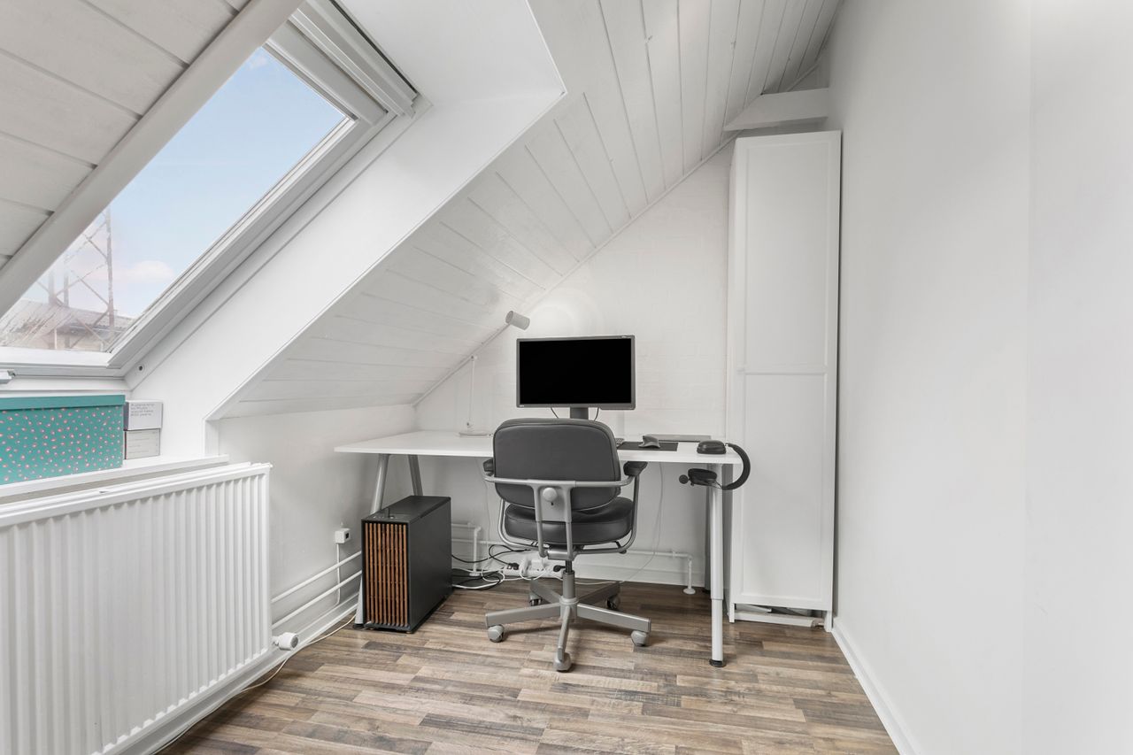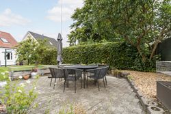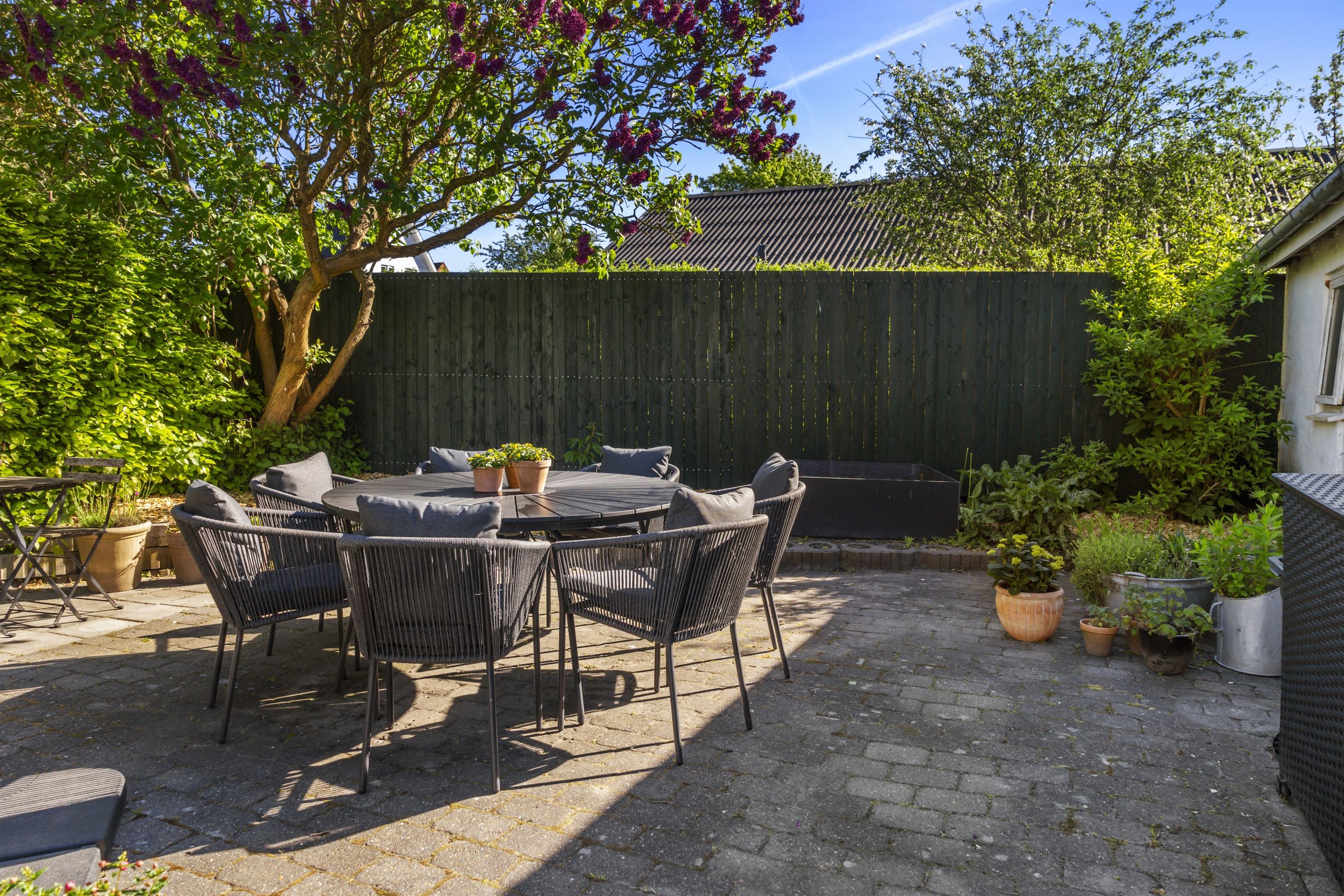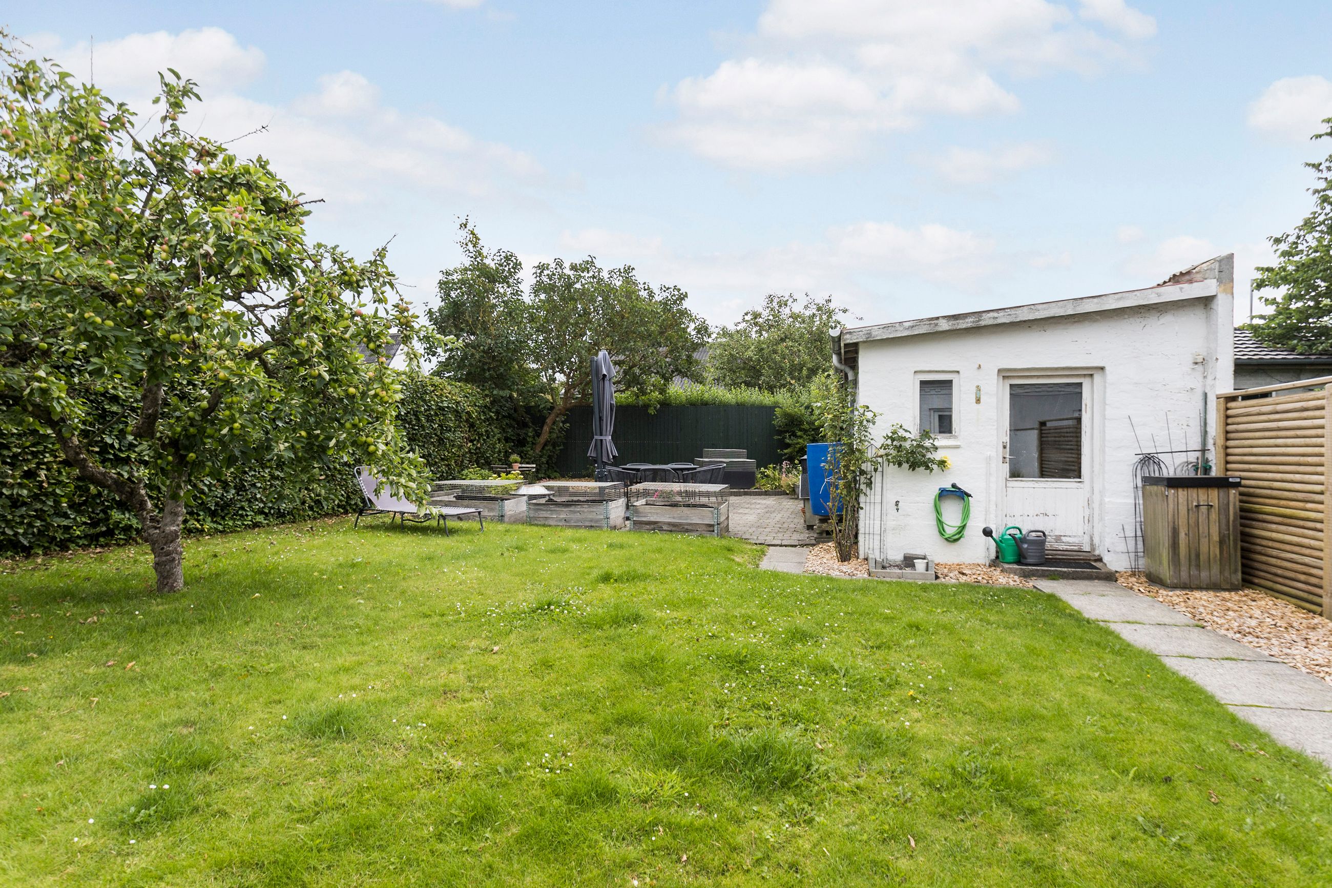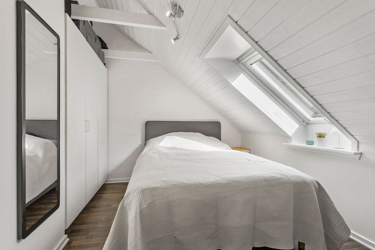 Ejendommen stråler af karakter med sin hvide facade, røde tegltag og charmerende vinduer. Her er der to ejerlejligheder, og din bolig er beliggende på 1.sal. Man deler med underboen en skøn frodig og lukket have som er helt unikt for området. Et tilhørende udhus giver dig ekstra plads til praktiske gøremål, og parkering er ingen sag idet der må parkeres lige ved ejendommen uden tidsbegrænsning. Idet man er 2 om ejendommen, er det ligeledes meget lave fællesudgifter.