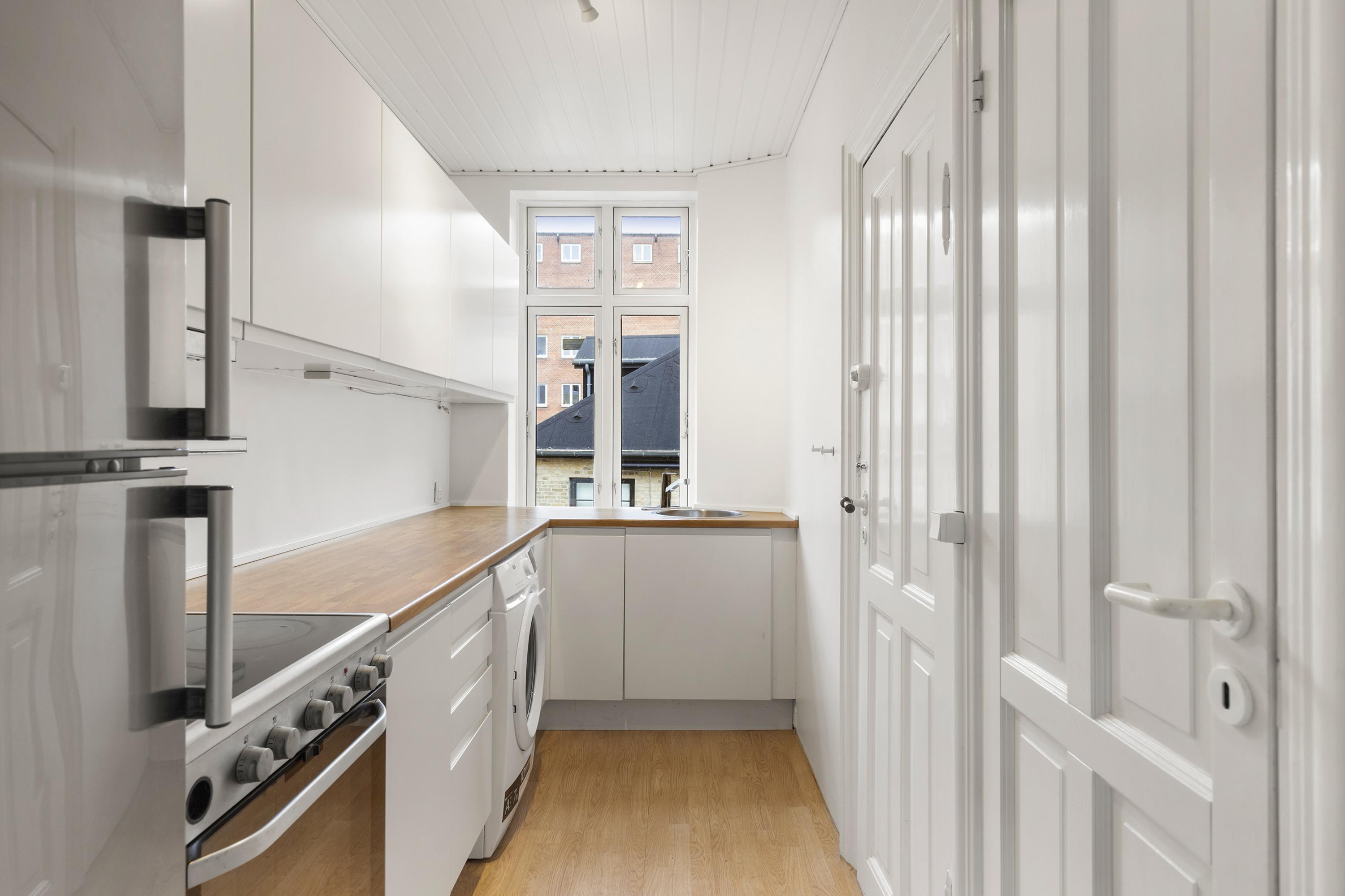 Denne skønne ejerlejlighed er beliggende på Kirkegårdsgade i Aalborg centrum, hvor I får det bedste af både byliv og rolige omgivelser. Beliggenheden byder på kort afstand til indkøb, caféer og offentlig transport. Derudover er der nem adgang til Aalborgs charmerende bymidte med dens mange
