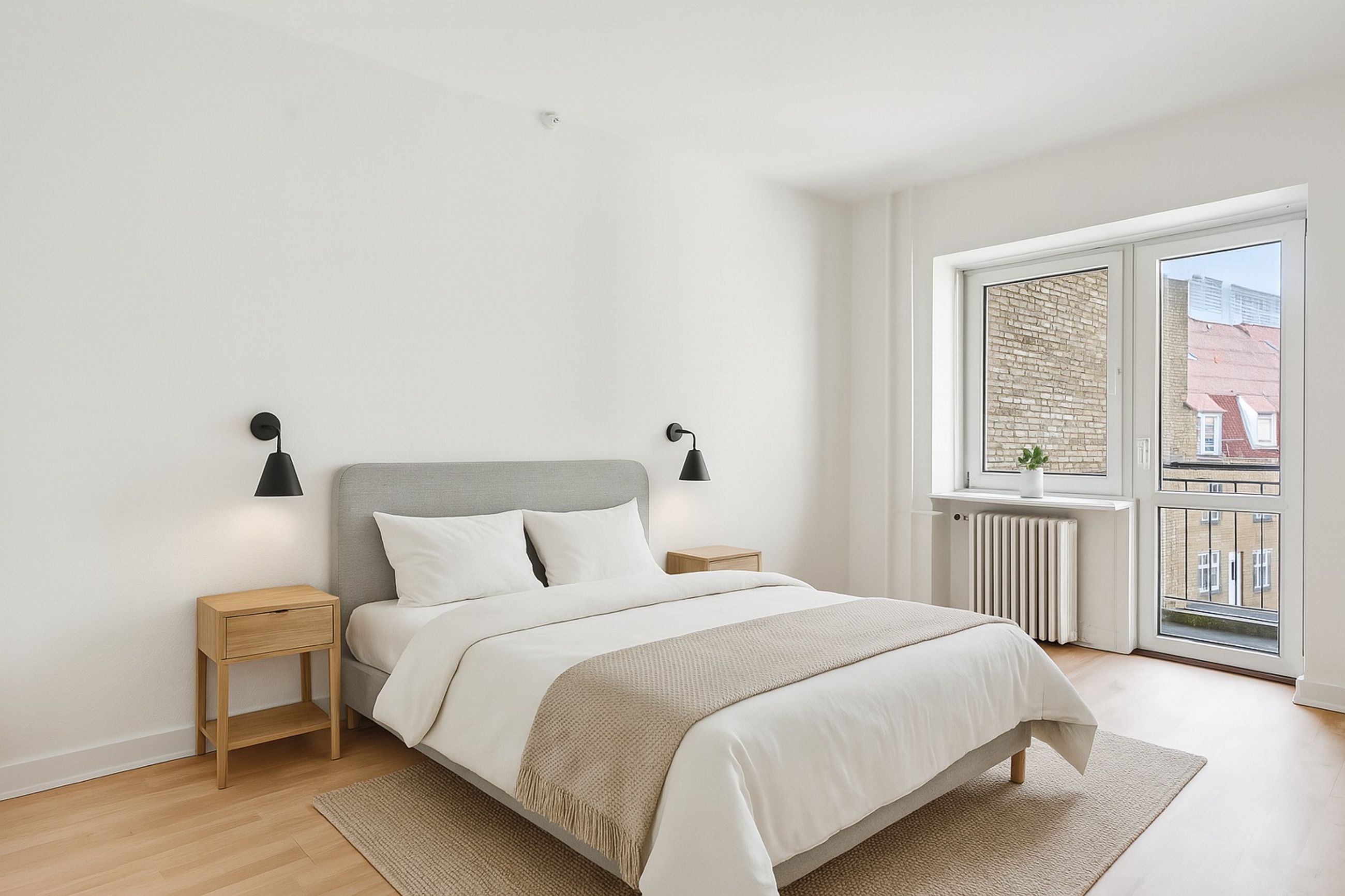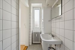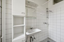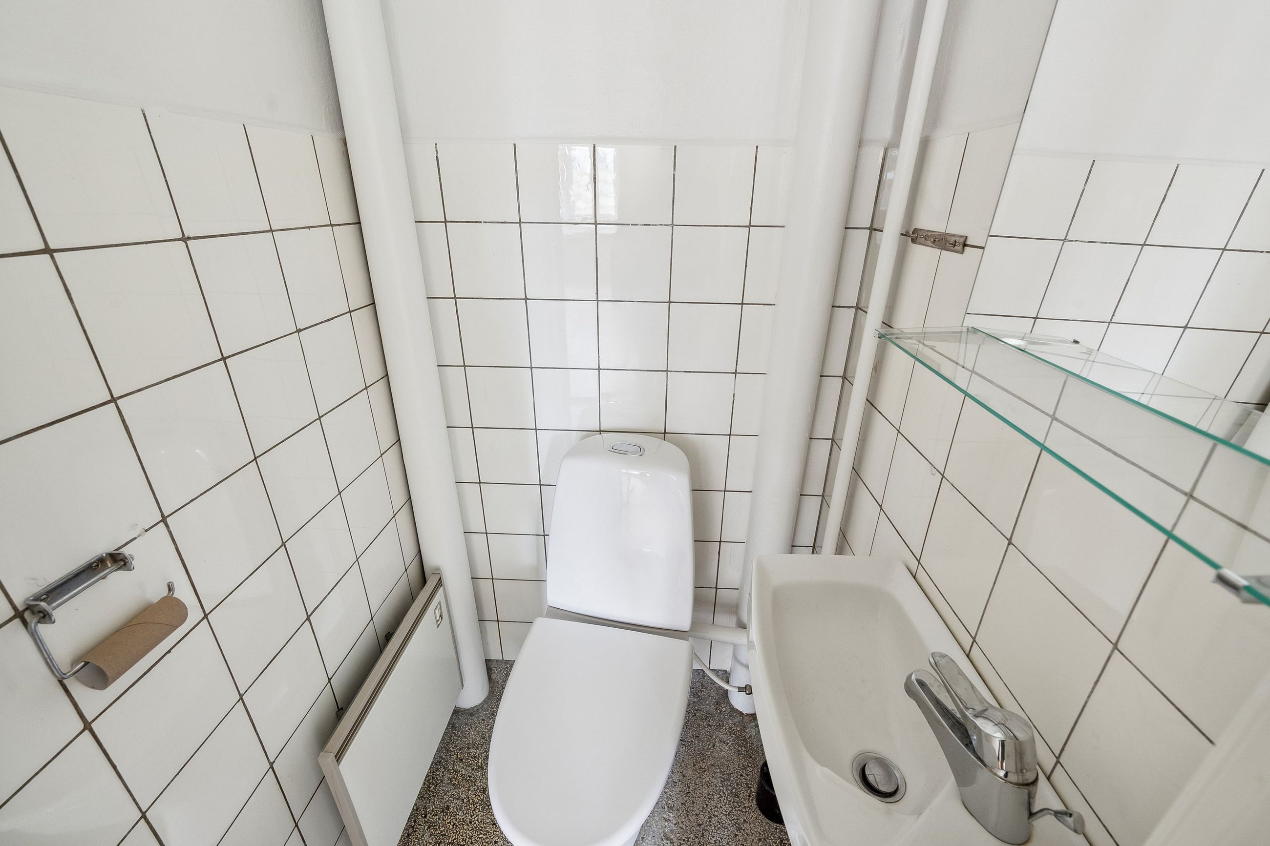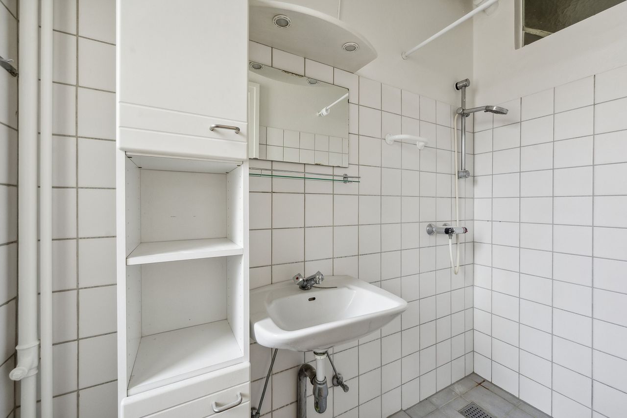 Toilettet tilgås fra fordelingsgangen, og herefter kommer vi til det store og lyse soveværelse, hvorfra badeværelset – med god bruseplads – kan tilgås. Ønskes bad og toilet sammenlagt, er dette muligt.