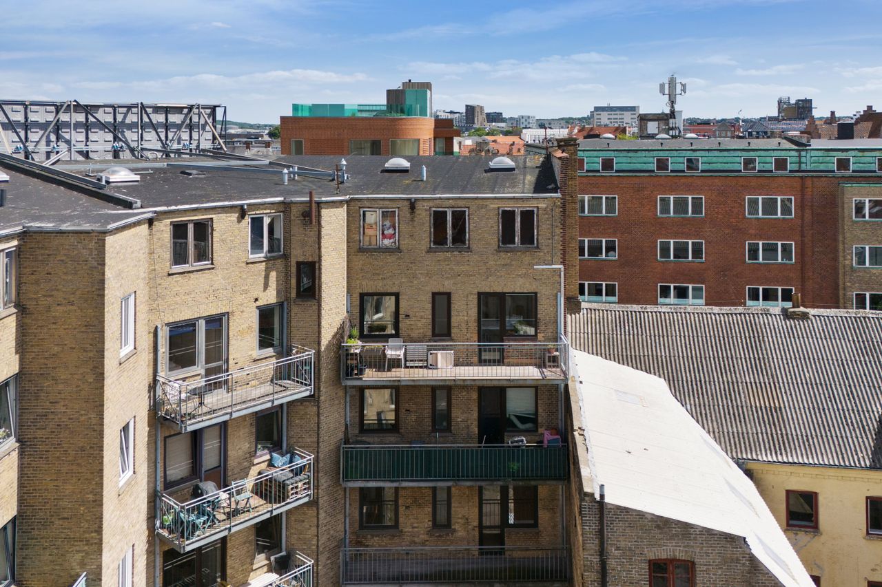 Jeres nye hjem befinder sig midt i byens pulserende liv, hvor I kan udforske Aalborgs mange delikate madoplevelser, specialforretninger og kulturelle tilbud. Det er nemt at ordne dagligdagens indkøb, og I kan spadsere langs havnepromenaden eller nyde de grønne omgivelser i eksempelvis Kildeparken og Skovdalen.