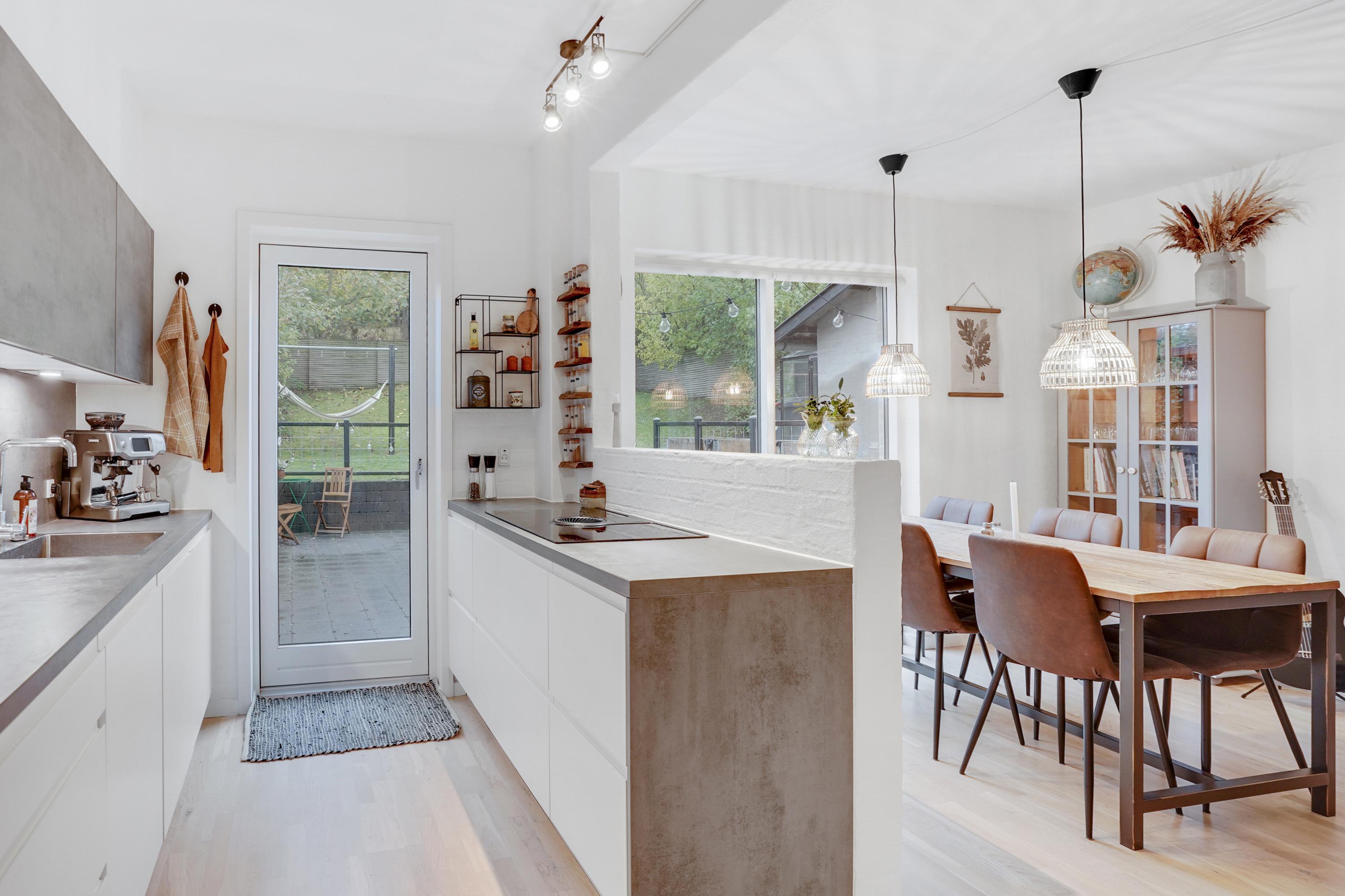 Rækkehuset byder på et boligareal på 100 veludnyttede kvadratmeter, og er lyst og indbydende. Både køkken, gulve og