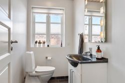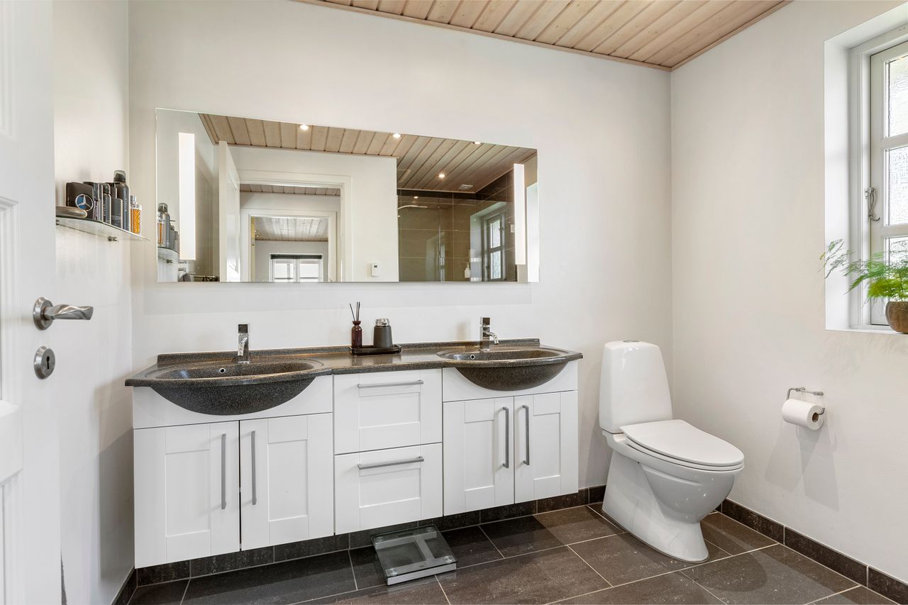På både badeværelse, toilet, bryggers, i fordelingsgangen, værelset op til stuen samt køkken-alrummet og stuen er der installeret gulvvarme, som sikrer en behagelig temperatur året rundt.