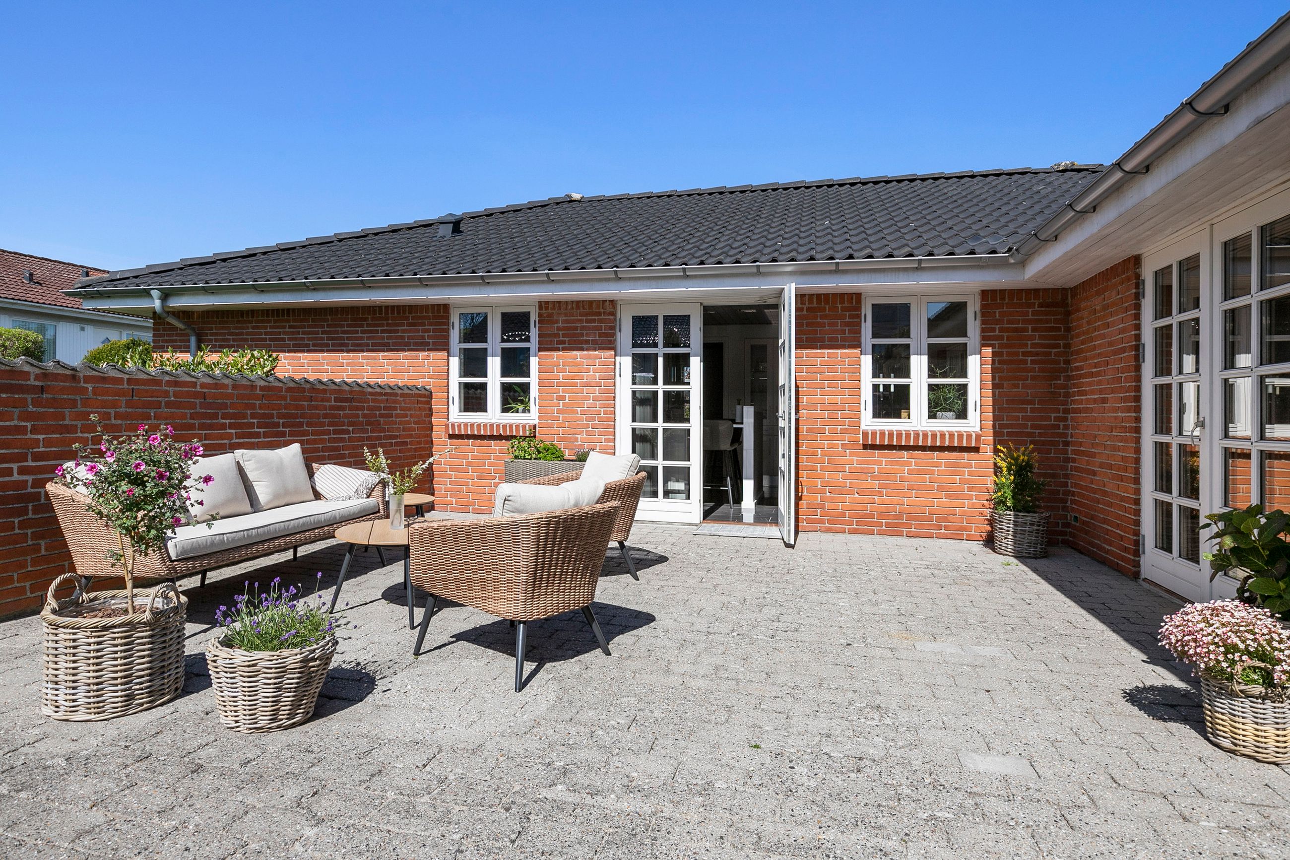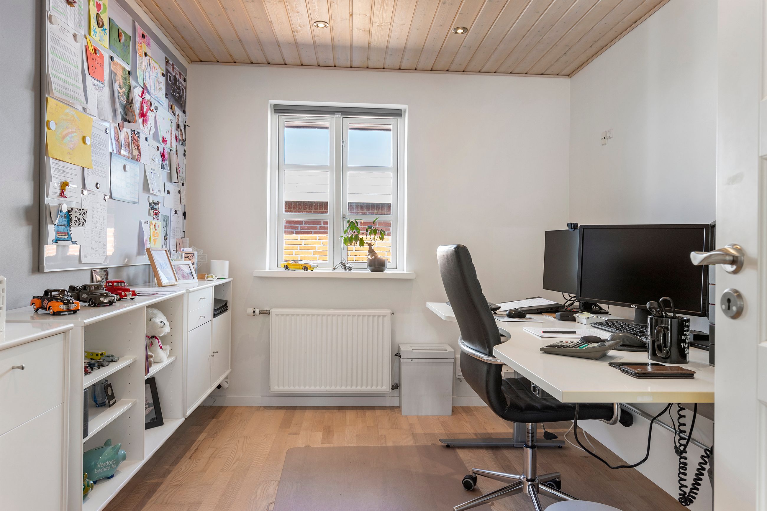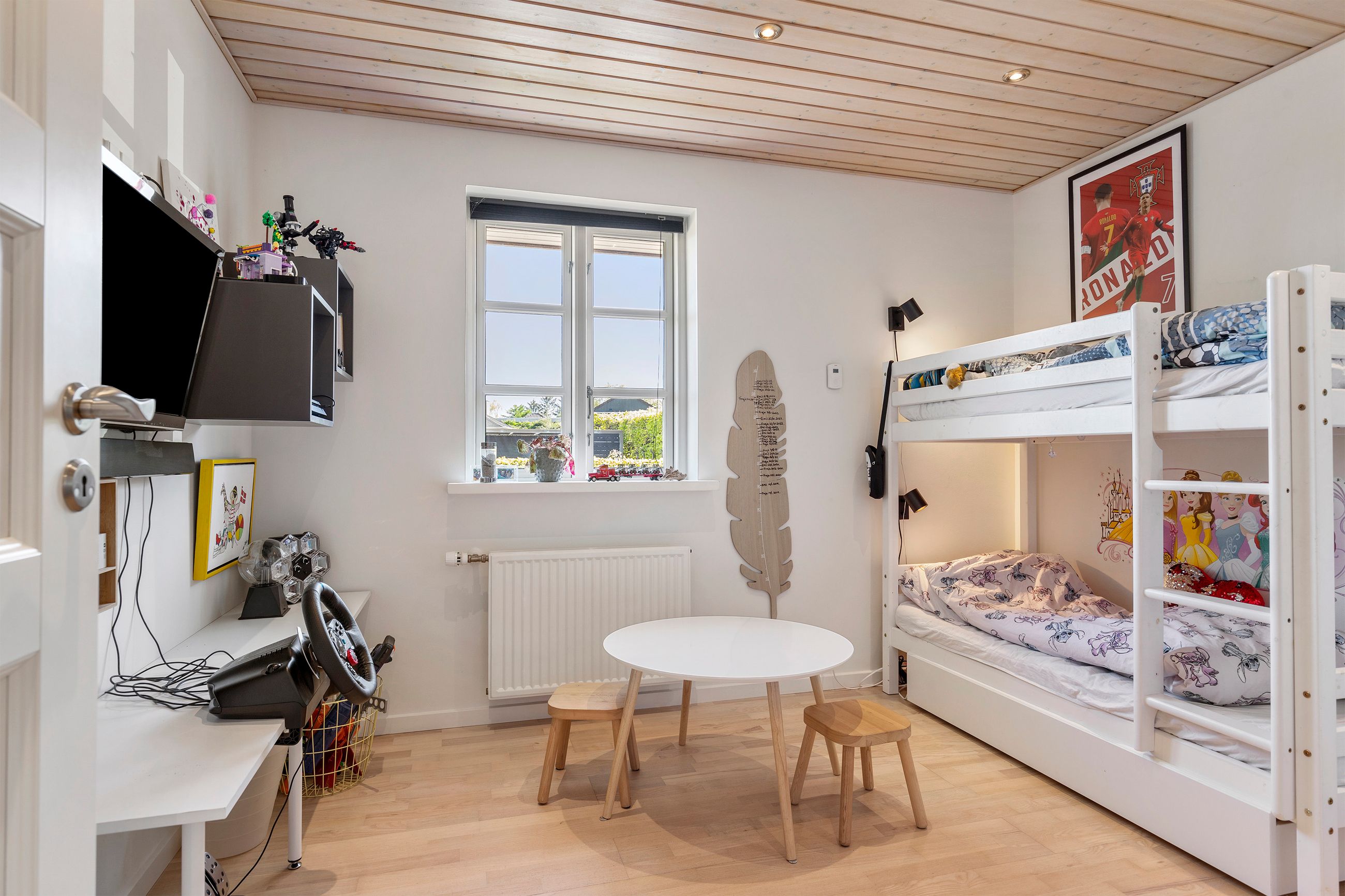 Boligen byder på fire gode værelser, som giver rigeligt med plads til både børn, kontor og gæster. Det store og åbne køkken-alrum er hjemmets hjerte, hvor det stilrene JKE-køkken kombineres med masser af lys og plads til fællesskab. Herfra er der åben forbindelse til en rummelig og lys stue, som har direkte udgang til den solrige terrasse og have.