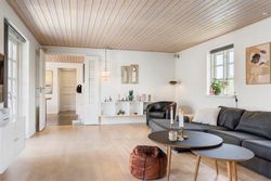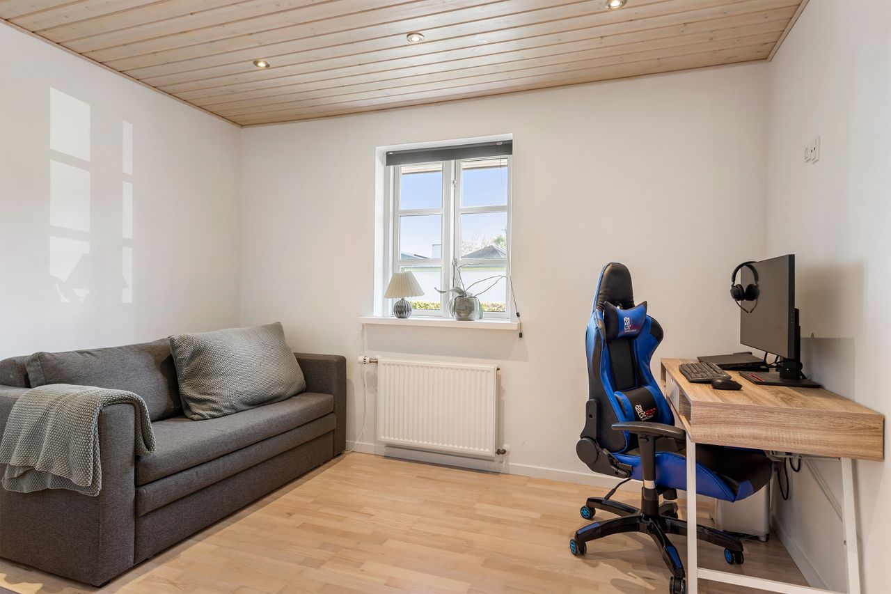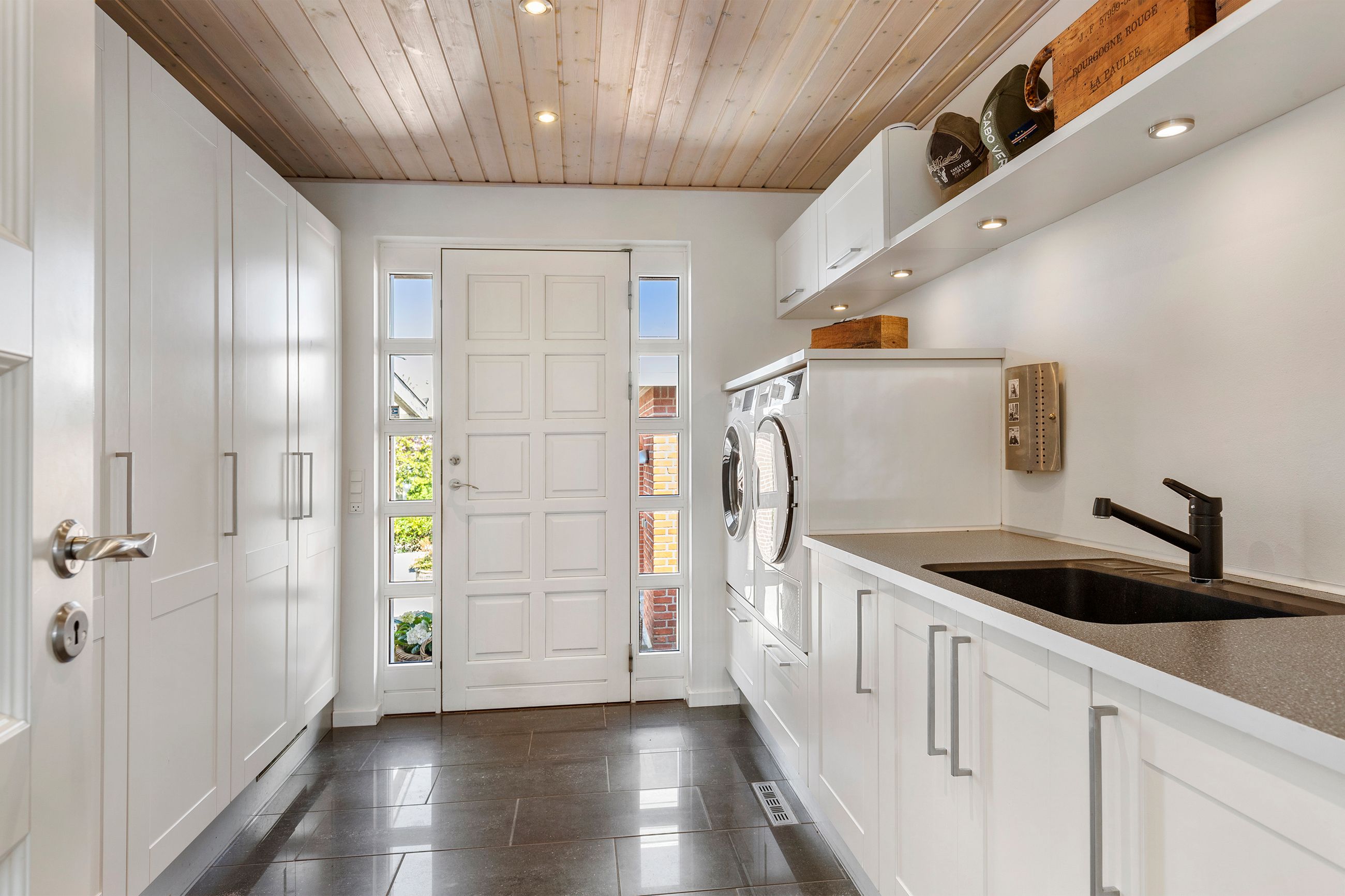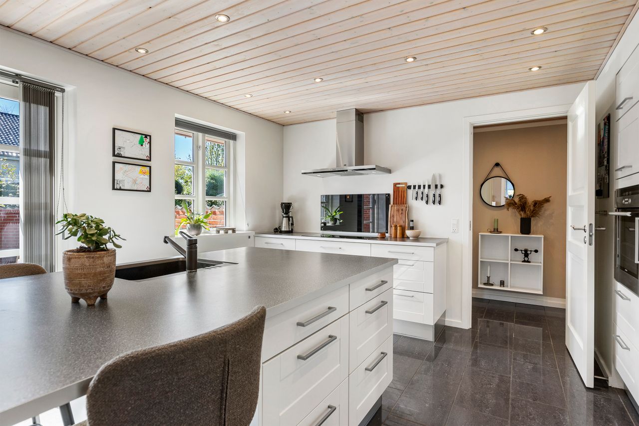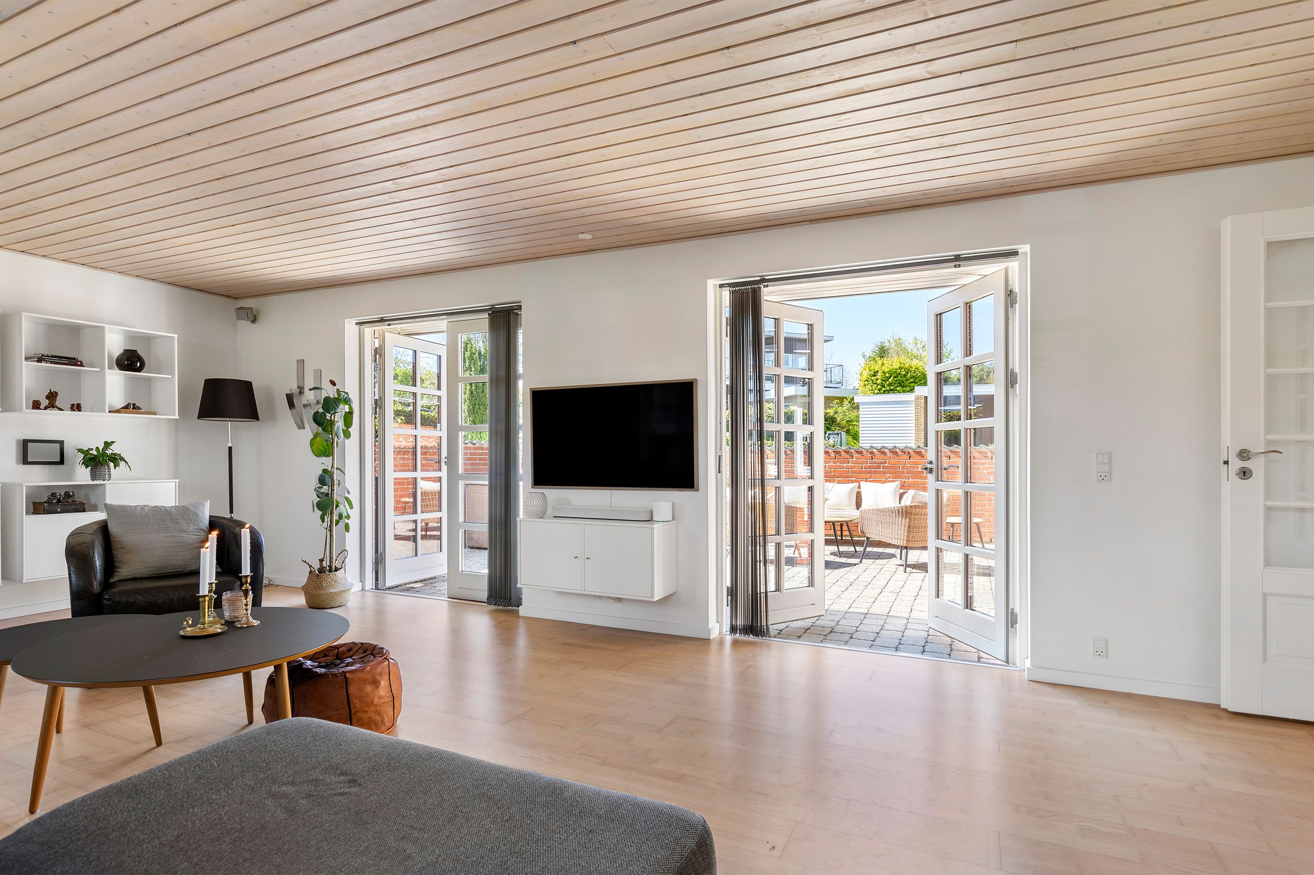 Boligen byder på fire gode værelser, som giver rigeligt med plads til både børn, kontor og gæster. Det store og åbne køkken-alrum er hjemmets hjerte, hvor det stilrene JKE-køkken kombineres med masser af lys og plads til fællesskab. Herfra er der åben forbindelse til en rummelig og lys stue, som har direkte udgang til den solrige terrasse og have.