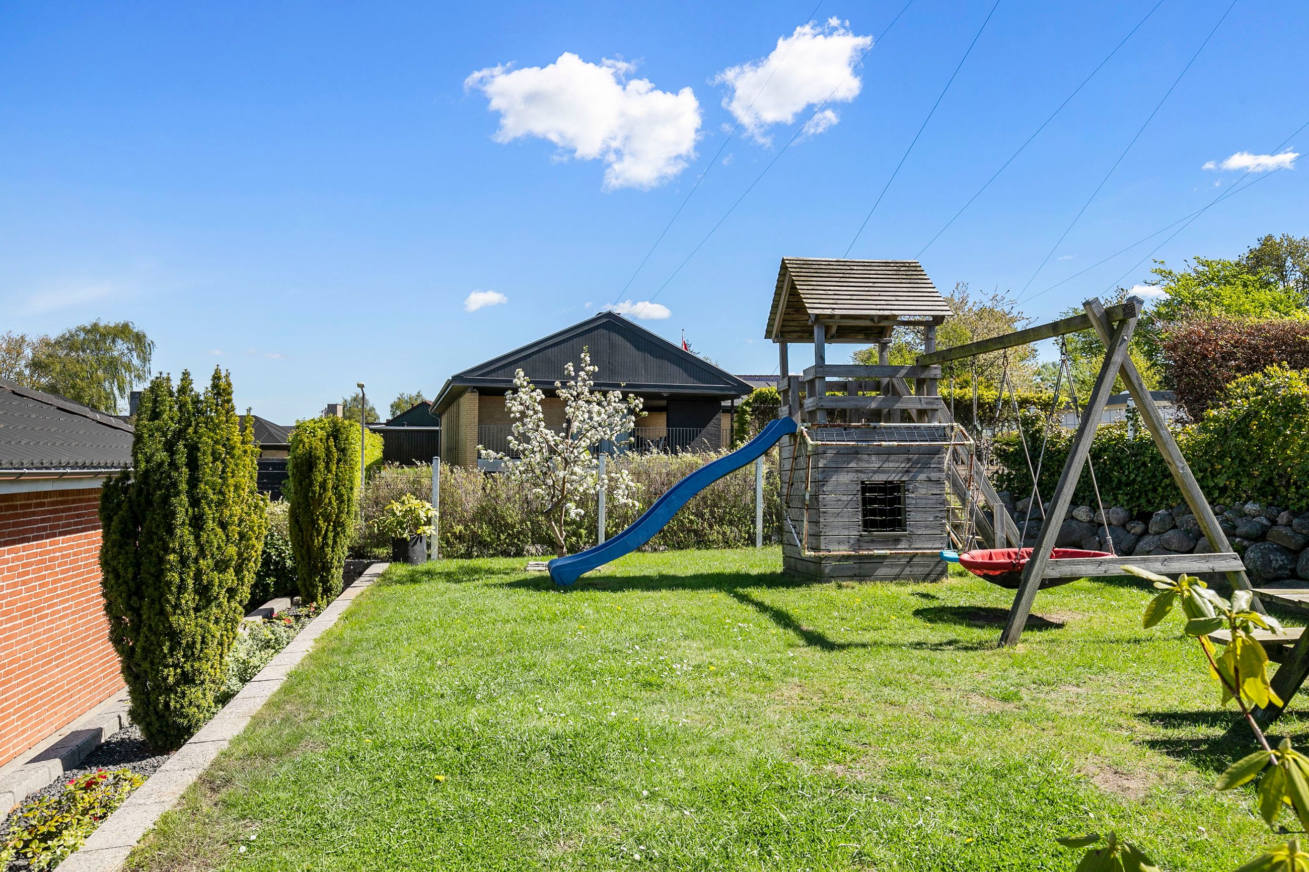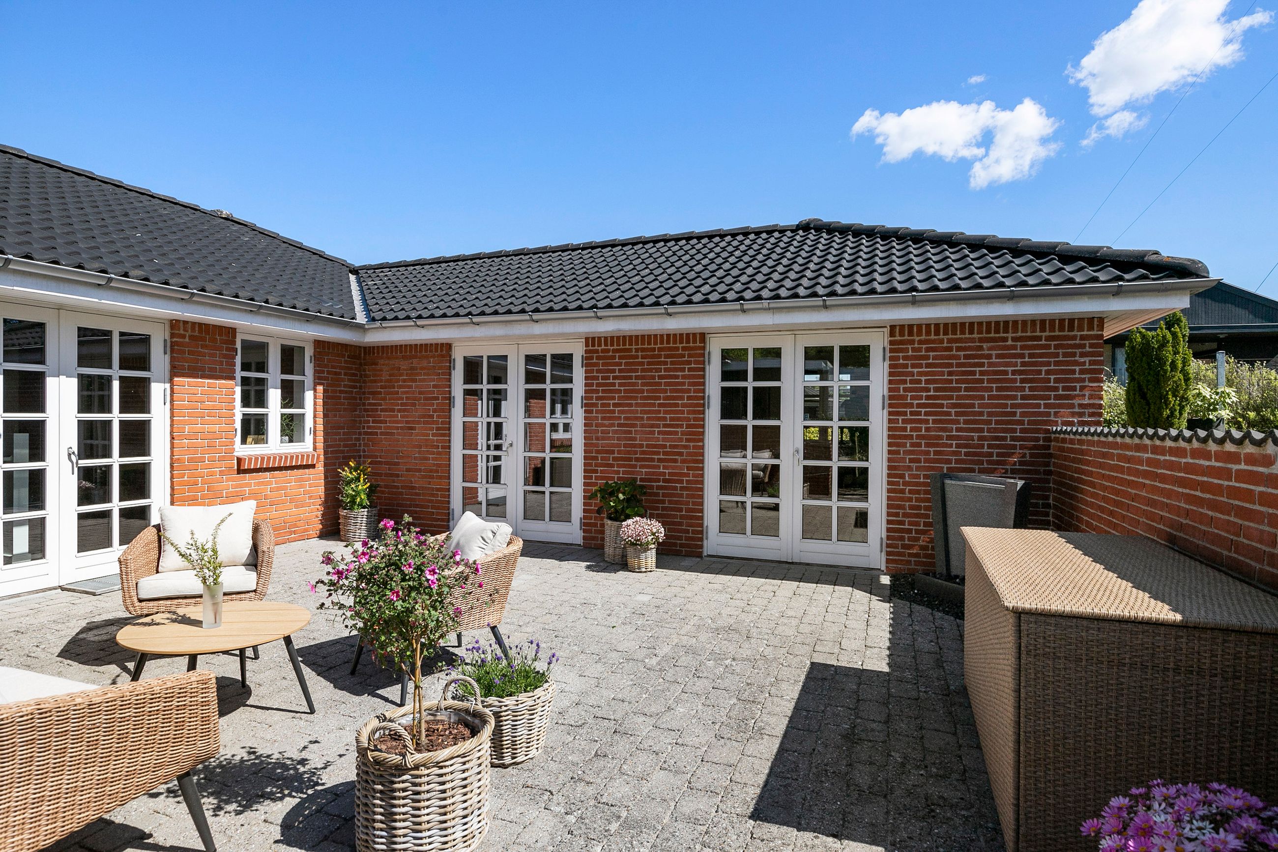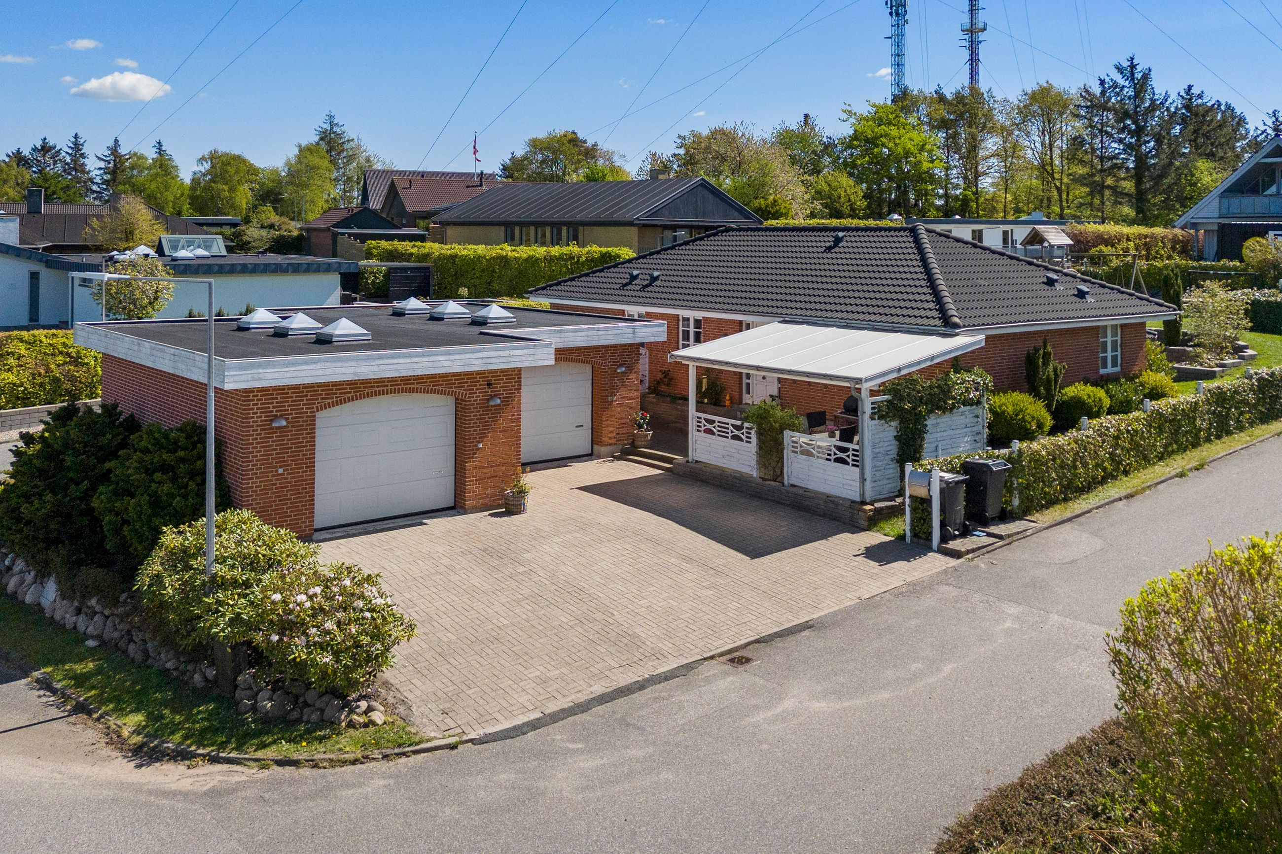 Udendørs venter en dejlig overdækket terrasse foran huset, hvor du kan nyde sommeraftenenerne, og bag huset er der en god og ugeneret terrasse samt have, hvor der er plads til leg og afslapning. Derudover medfølger en stor dobbelt garage på hele 80 kvadratmeter med monteret varmepumpe, som giver masser af plads til både biler, opbevaring og hobbyaktiviteter.