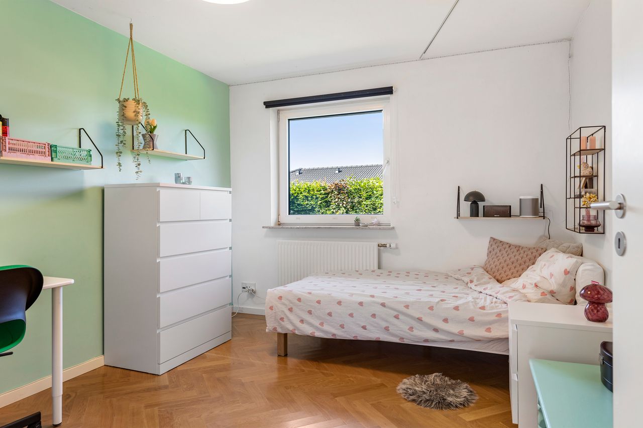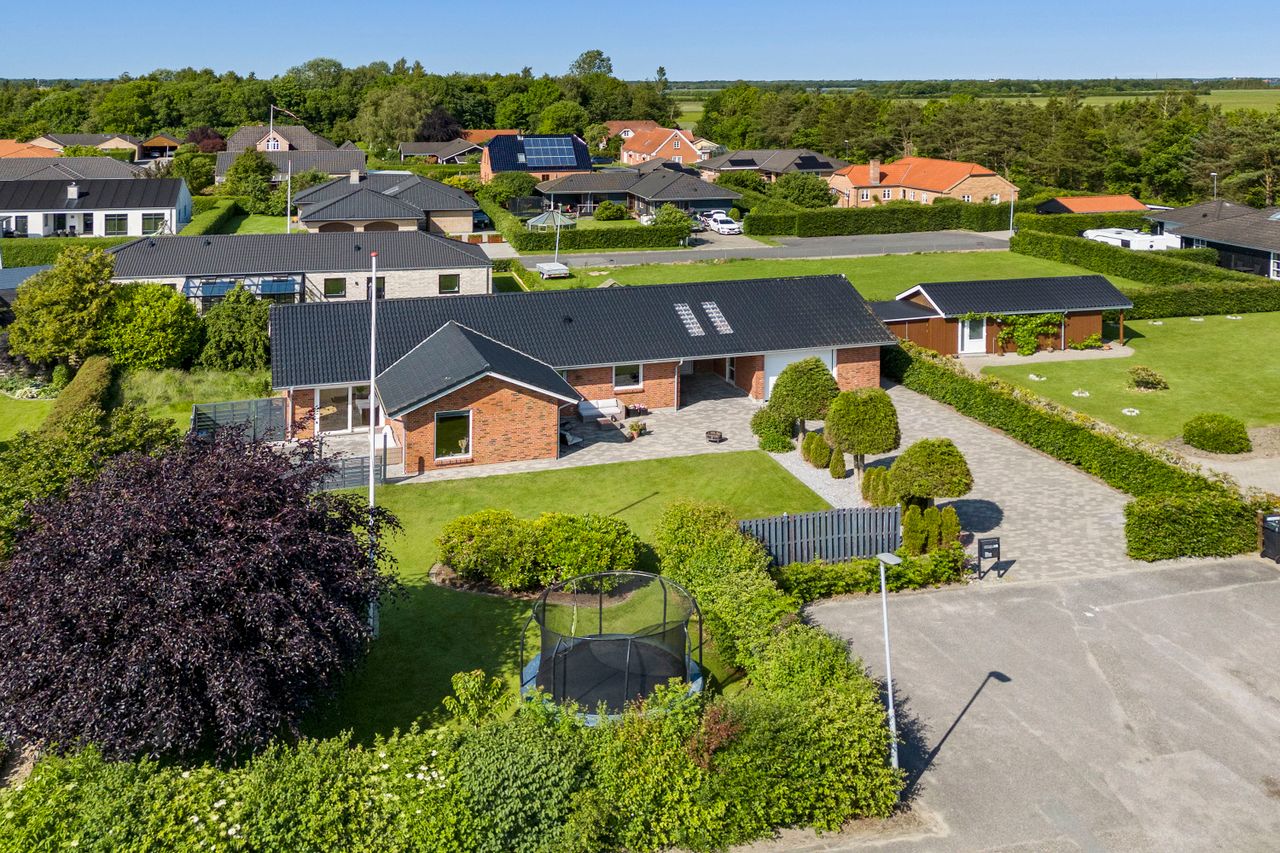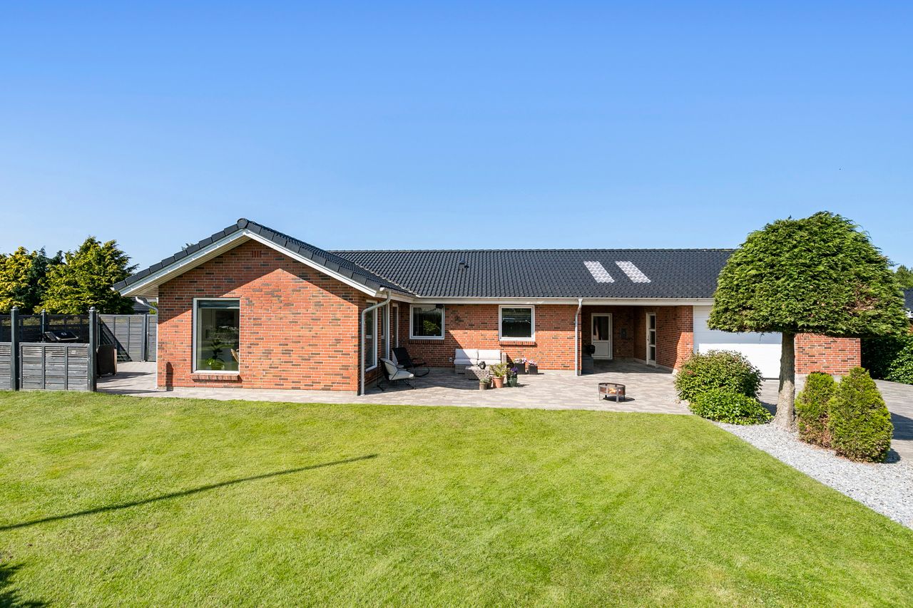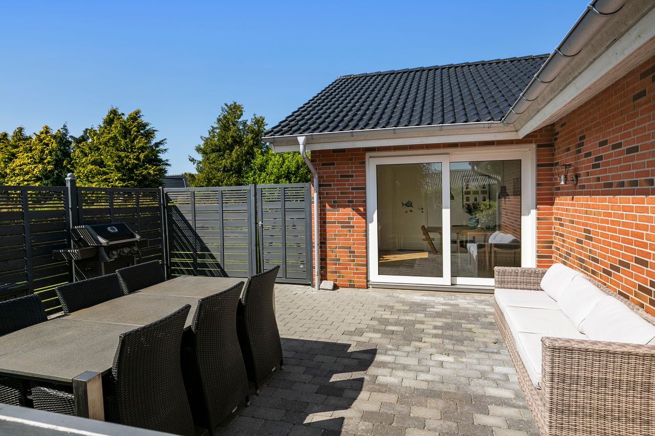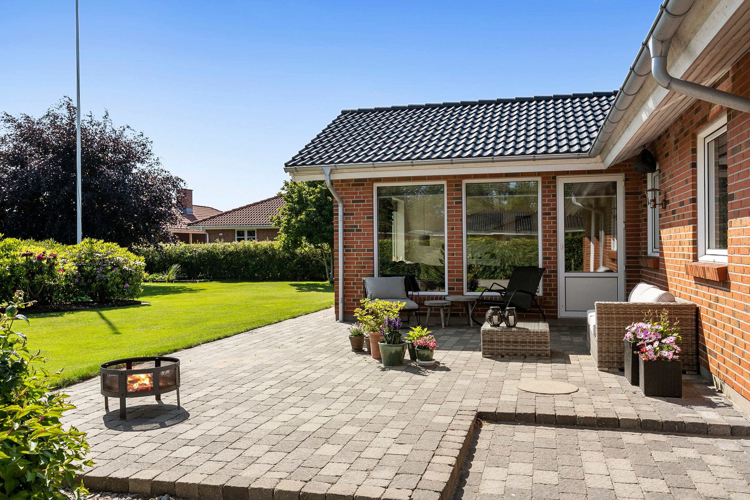 Udenfor breder den store have sig ud – grøn, indbydende og nem at holde. Her er plads til både trampolin, fodboldmål og blomsterbede, og på terrassen kan I følge årstidernes skiften med solen i ansigtet og fuglesang i baggrunden.