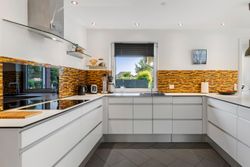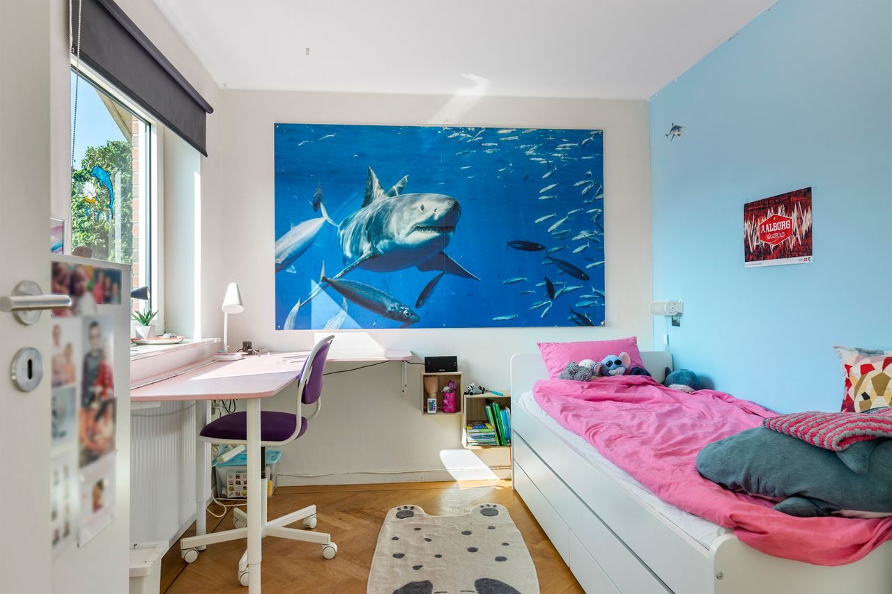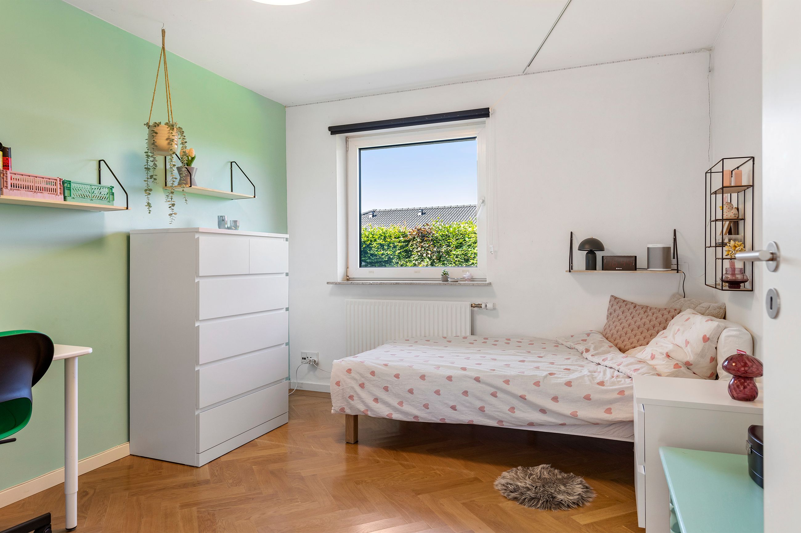 Den smukke villa fra 1986 præsenterer sig med 140 velindrettede kvadratmeter i ét plan. Her får I hele fem værelser og en planløsning, der giver både plads til samvær og mulighed for at trække sig tilbage. Hjemmets hjerte er det åbne køkken-alrum med kig til haven – et naturligt samlingspunkt, hvor samtaler flyder frit, og madlavning bliver en del af fællesskabet. Derudover er der et stort badeværelse med både bruseniche og badekar samt gulvvarme, der giver en behagelig temperatur året rundt - der er desuden mulighed for at etablere et ekstra gæstetoilet.