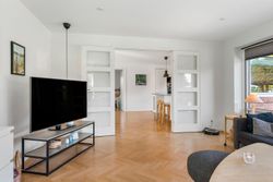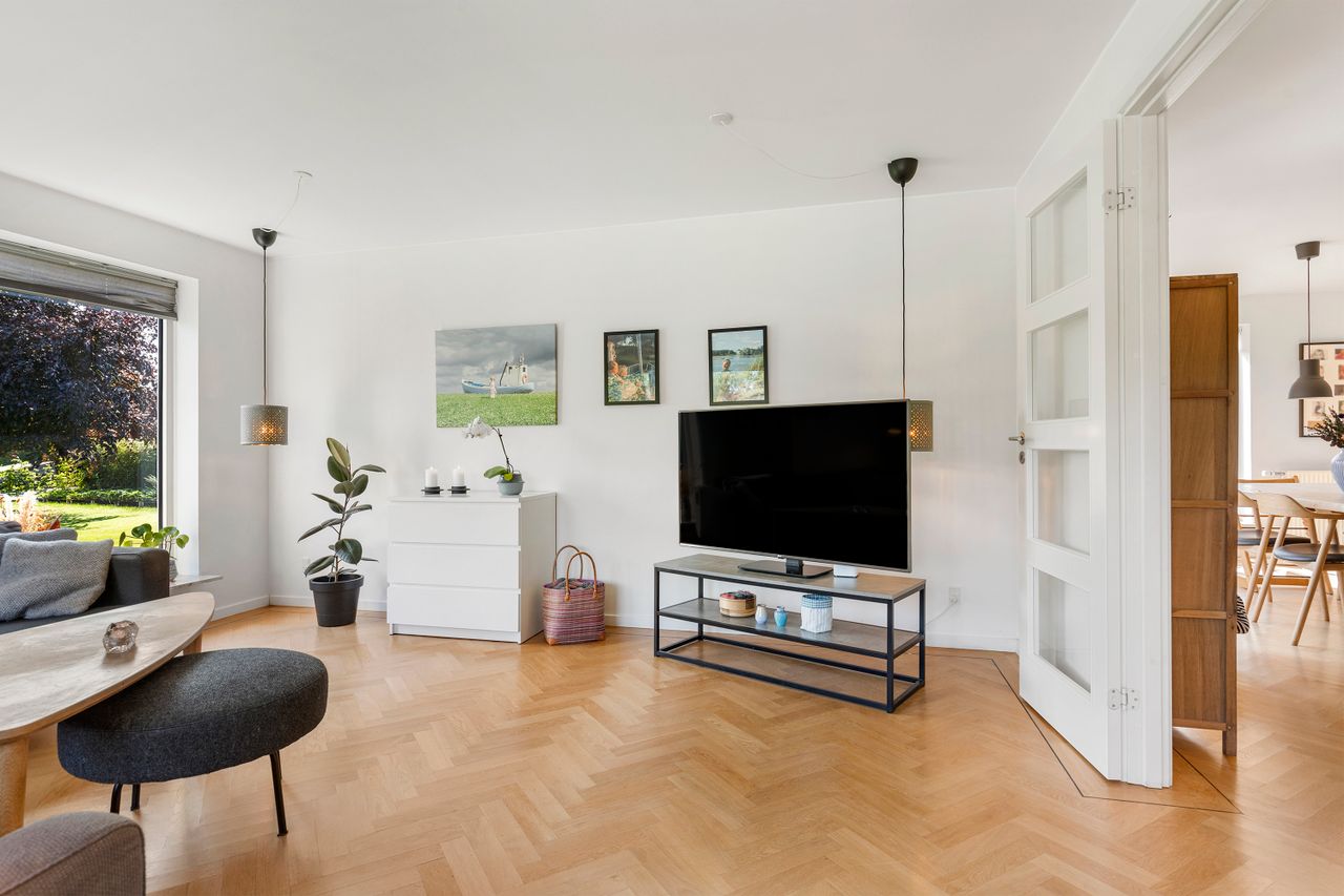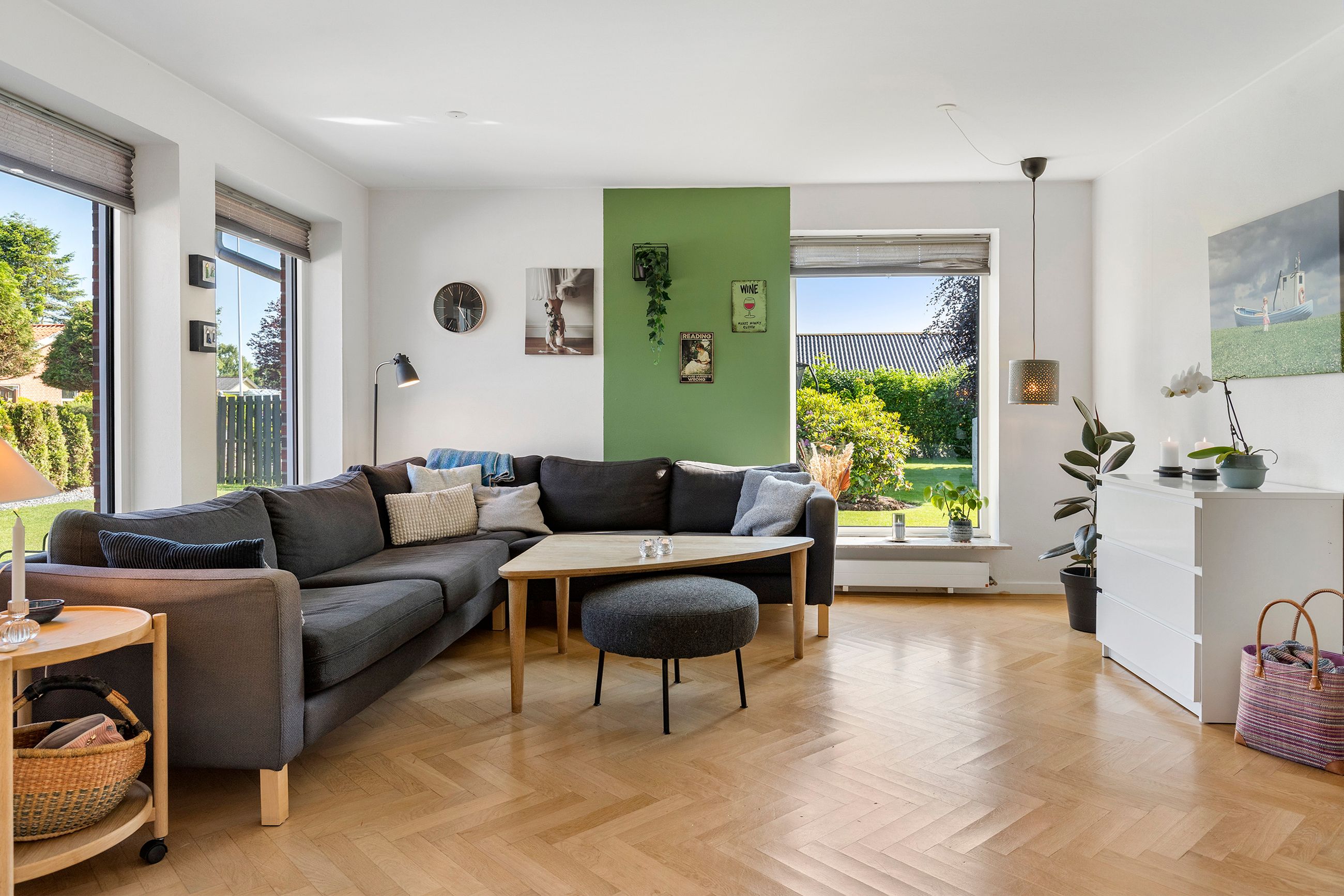 Stuen ligger i forlængelse heraf og indbyder med lys og luft til både hyggelige aftener og større sammenkomster. Overalt mærker man en rar og rolig atmosfære – et hjem, der er passet på og klar til at danne ramme om nye minder.