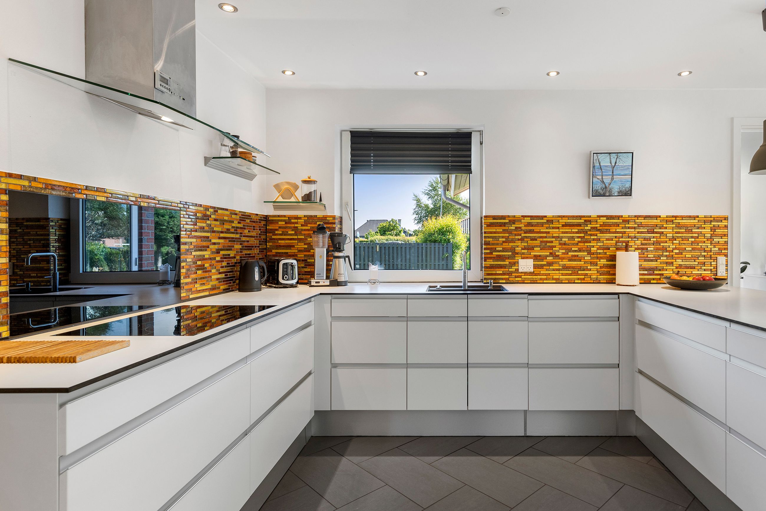 Forestil jer en hverdag, hvor solen filtrerer blidt gennem store vinduespartier og fylder jeres hjem med varme og liv. Hvor børnene leger trygt i haven, mens du nyder stilheden med en kop kaffe under åben himmel. Granly 5 i Mou er mere end en bolig – det er et sted, hvor hverdagen føles lidt lettere, og hvor rammerne er skabt til familieliv, nærvær og ro.