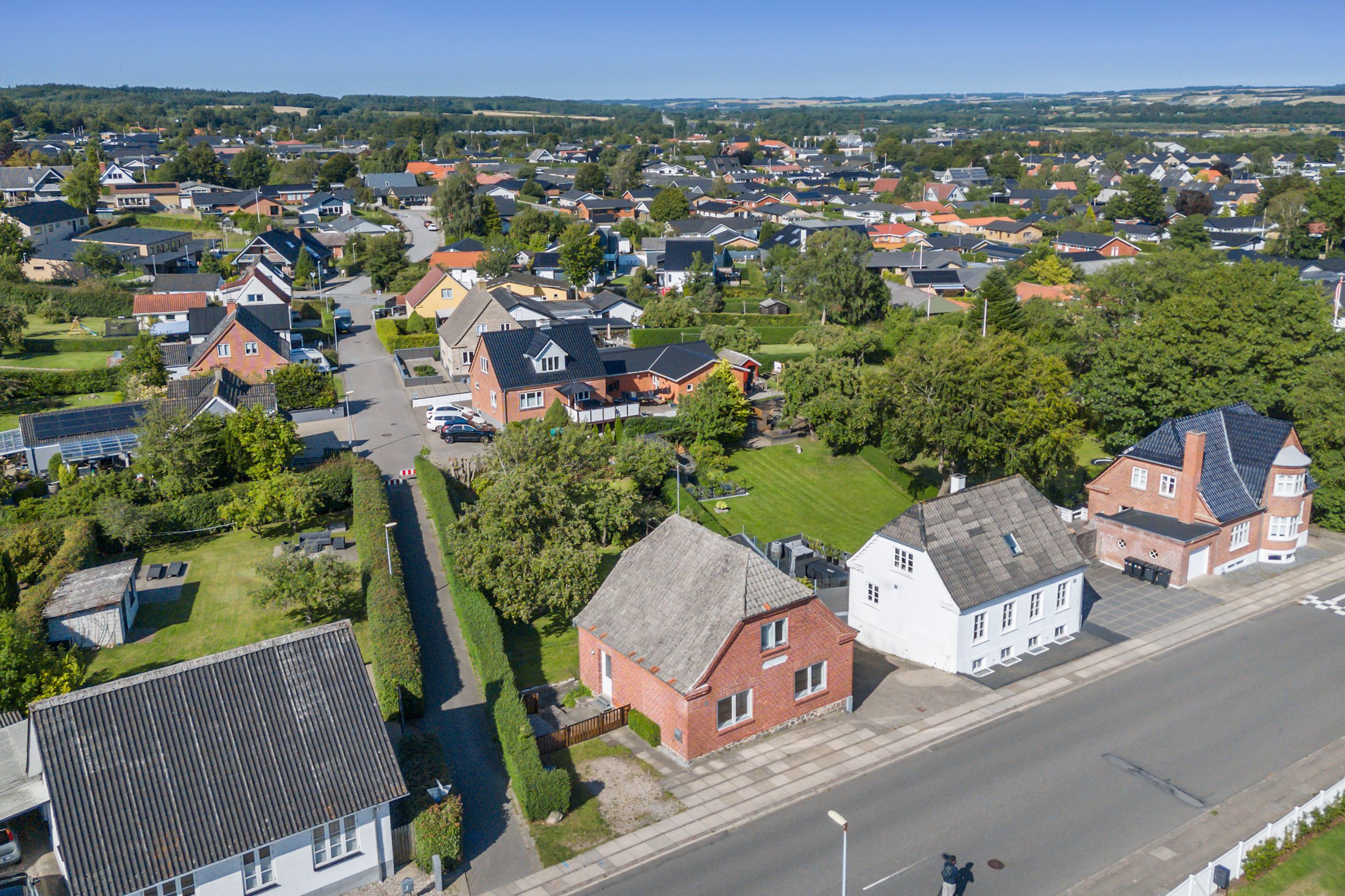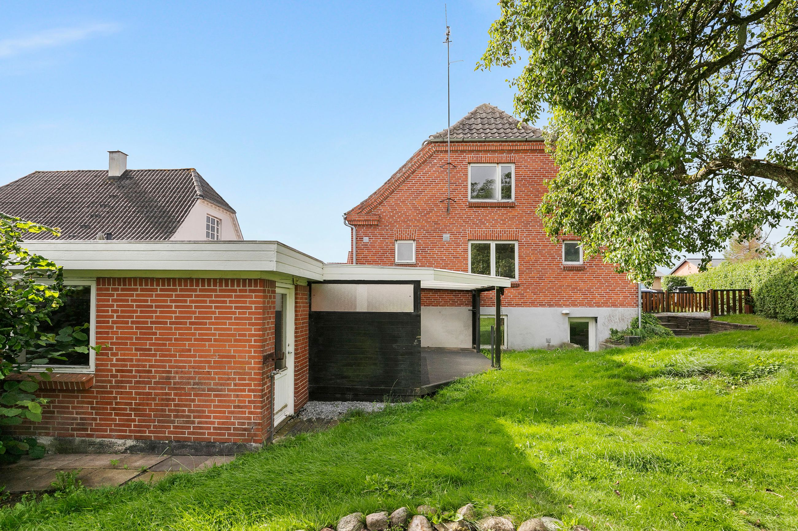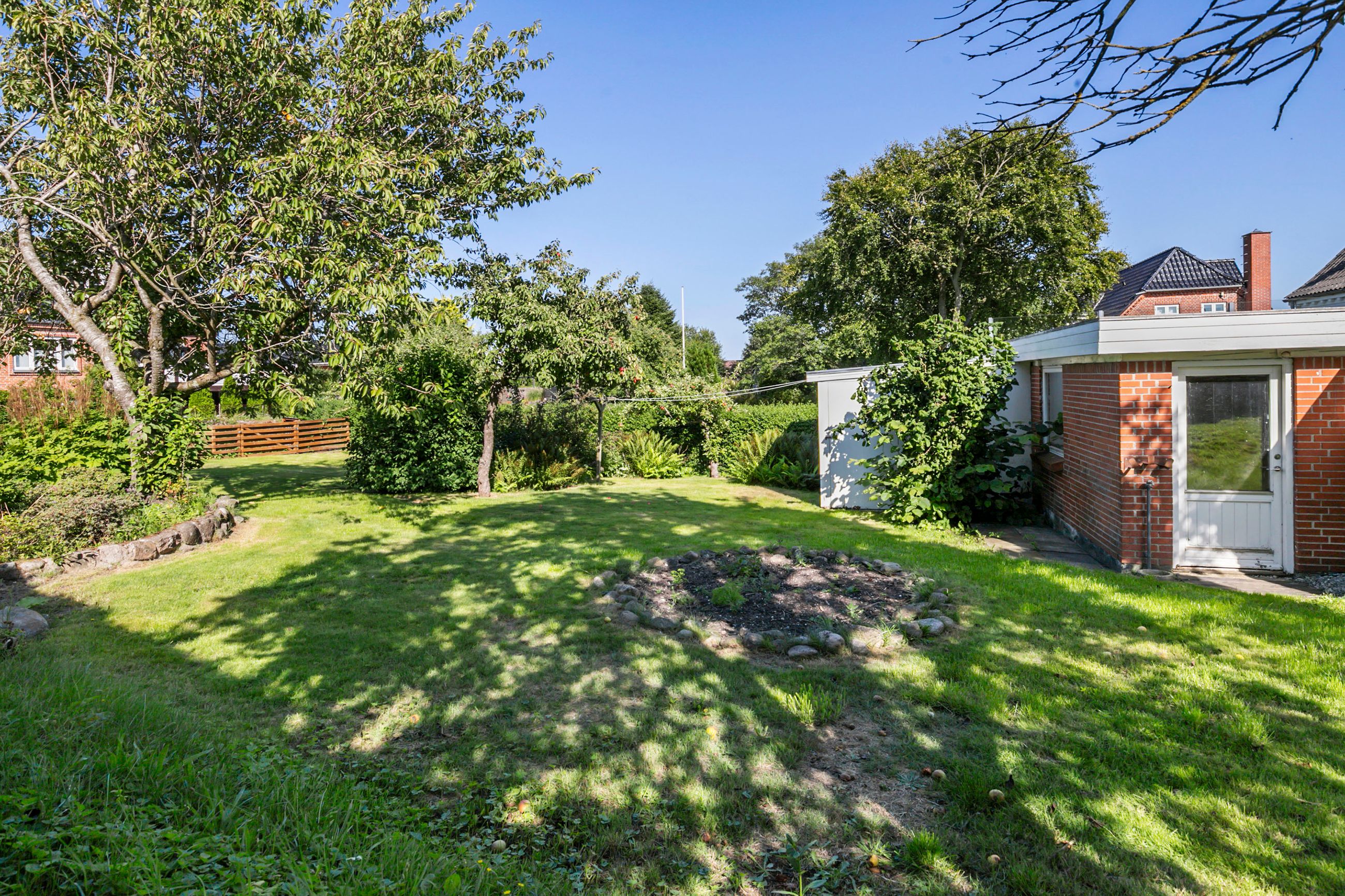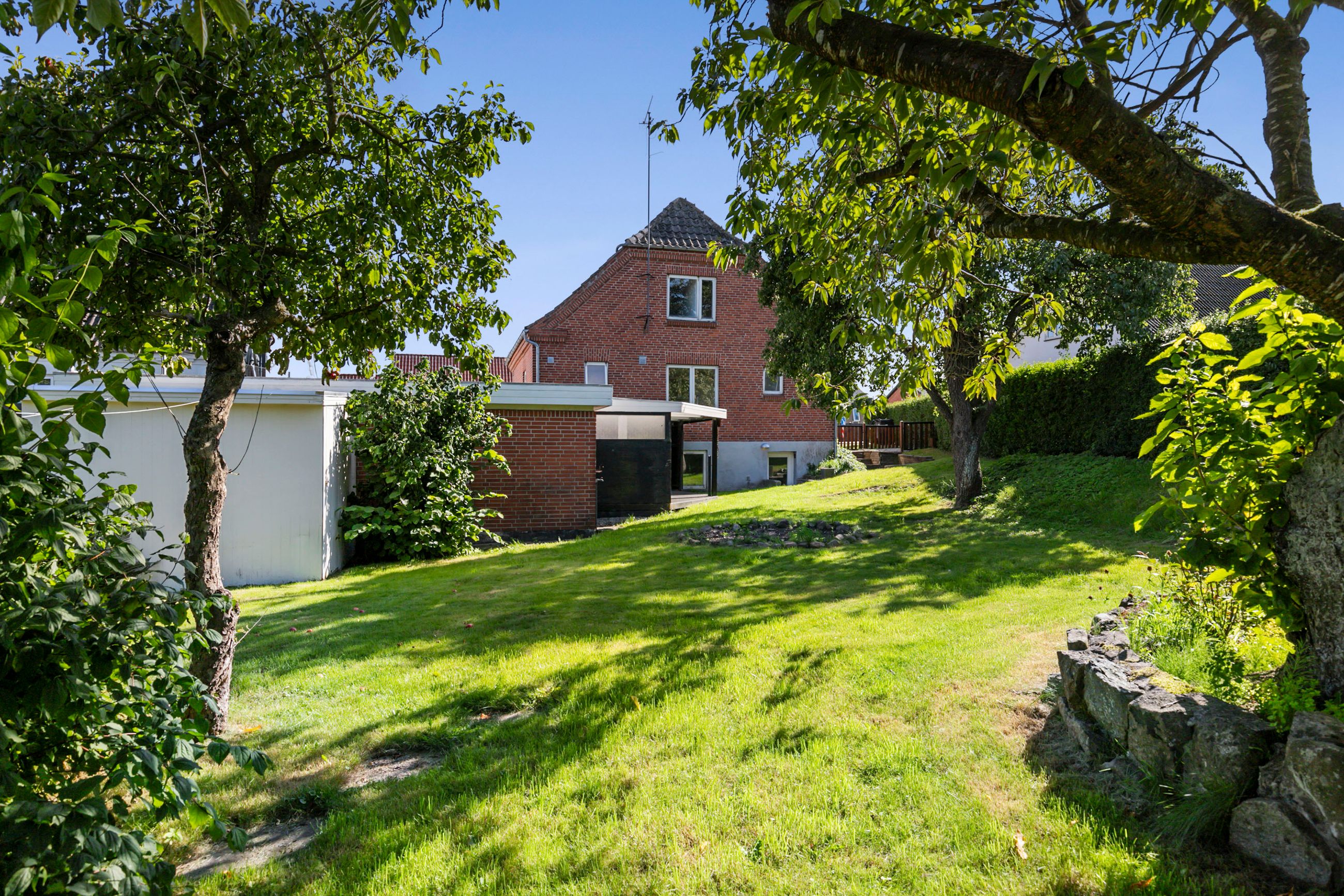 Udendørs får du en dejlig have med store frugttræer, der skaber en hyggelig og privat atmosfære. Her er også en overdækket terrasse, hvor du kan nyde sommeraftenerne – uanset vejret. Til ejendommen hører en stor garage på hele 51 m2, som giver rigelig plads til både bil, cykler og opbevaring.