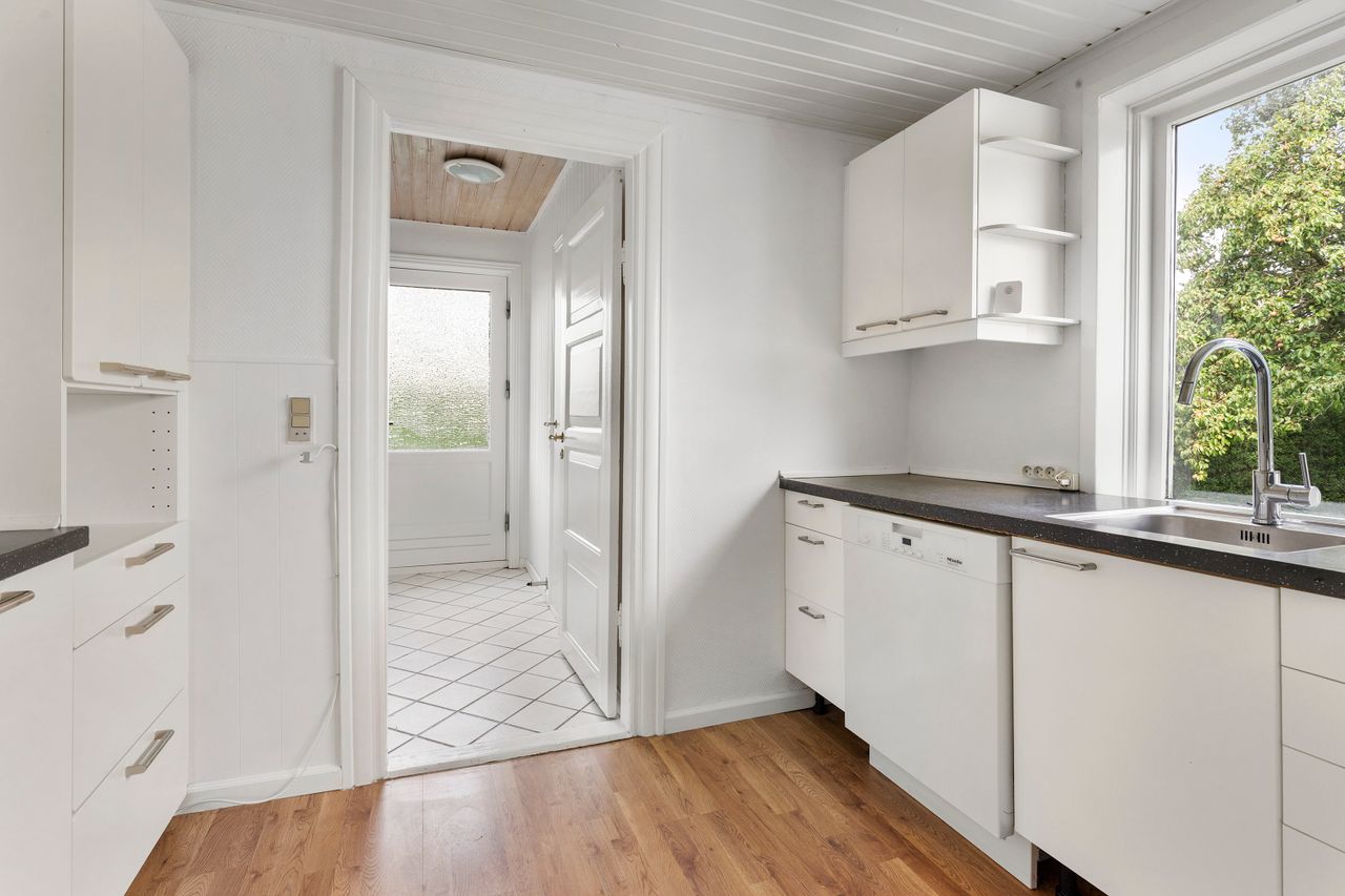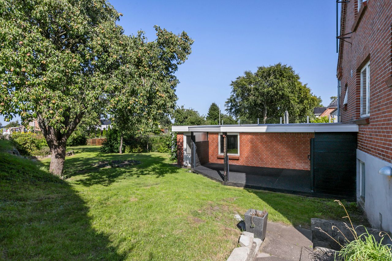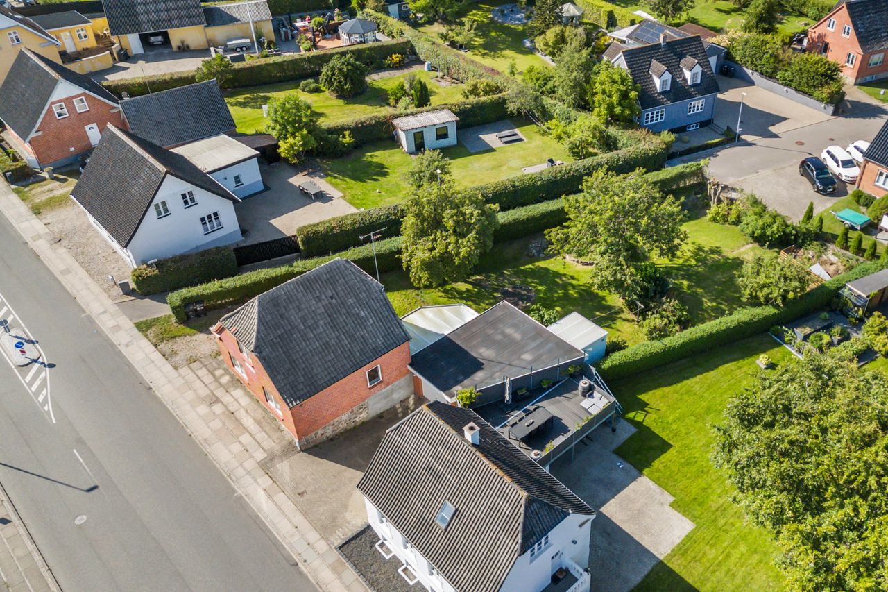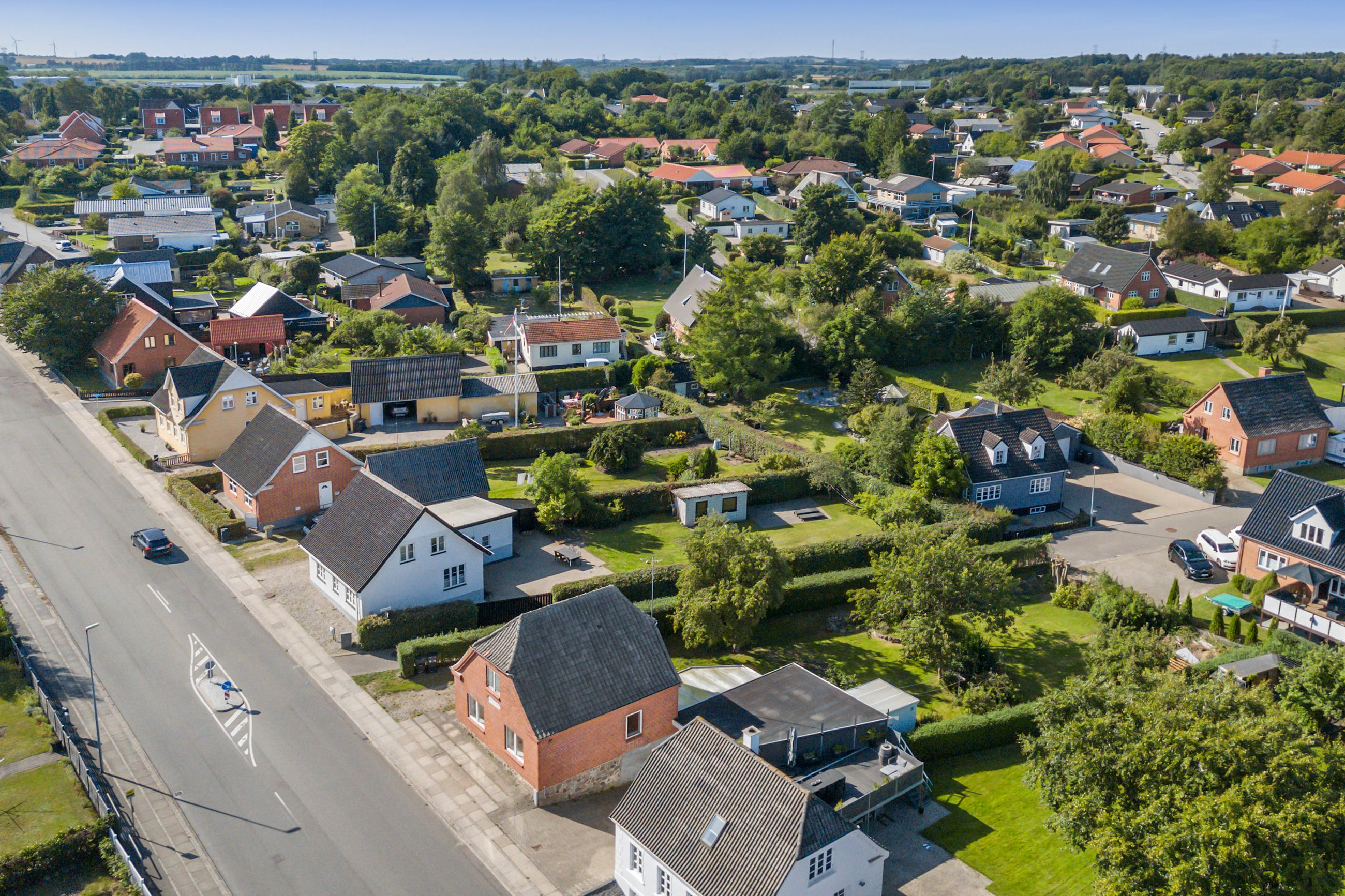 Udendørs får du en dejlig have med store frugttræer, der skaber en hyggelig og privat atmosfære. Her er også en overdækket terrasse, hvor du kan nyde sommeraftenerne – uanset vejret. Til ejendommen hører en stor garage på hele 51 m2, som giver rigelig plads til både bil, cykler og opbevaring.