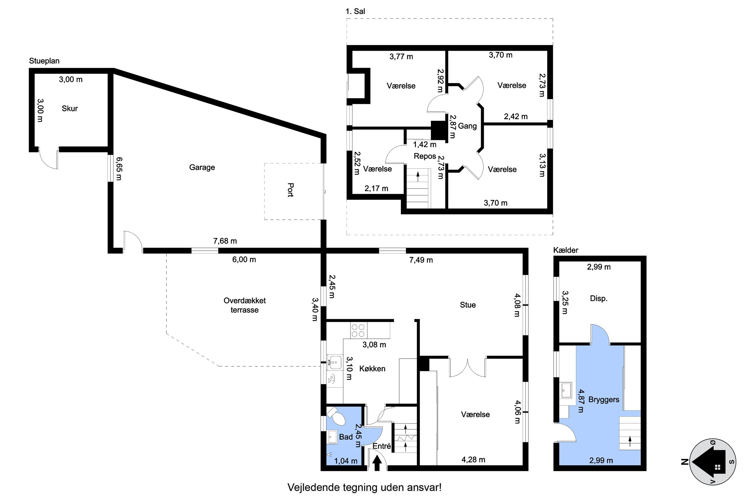 Kælderen på 40 m2 rummer et funktionelt bryggers og et disponibelt rum, som kan bruges til opbevaring, værksted eller fritidsaktiviteter.