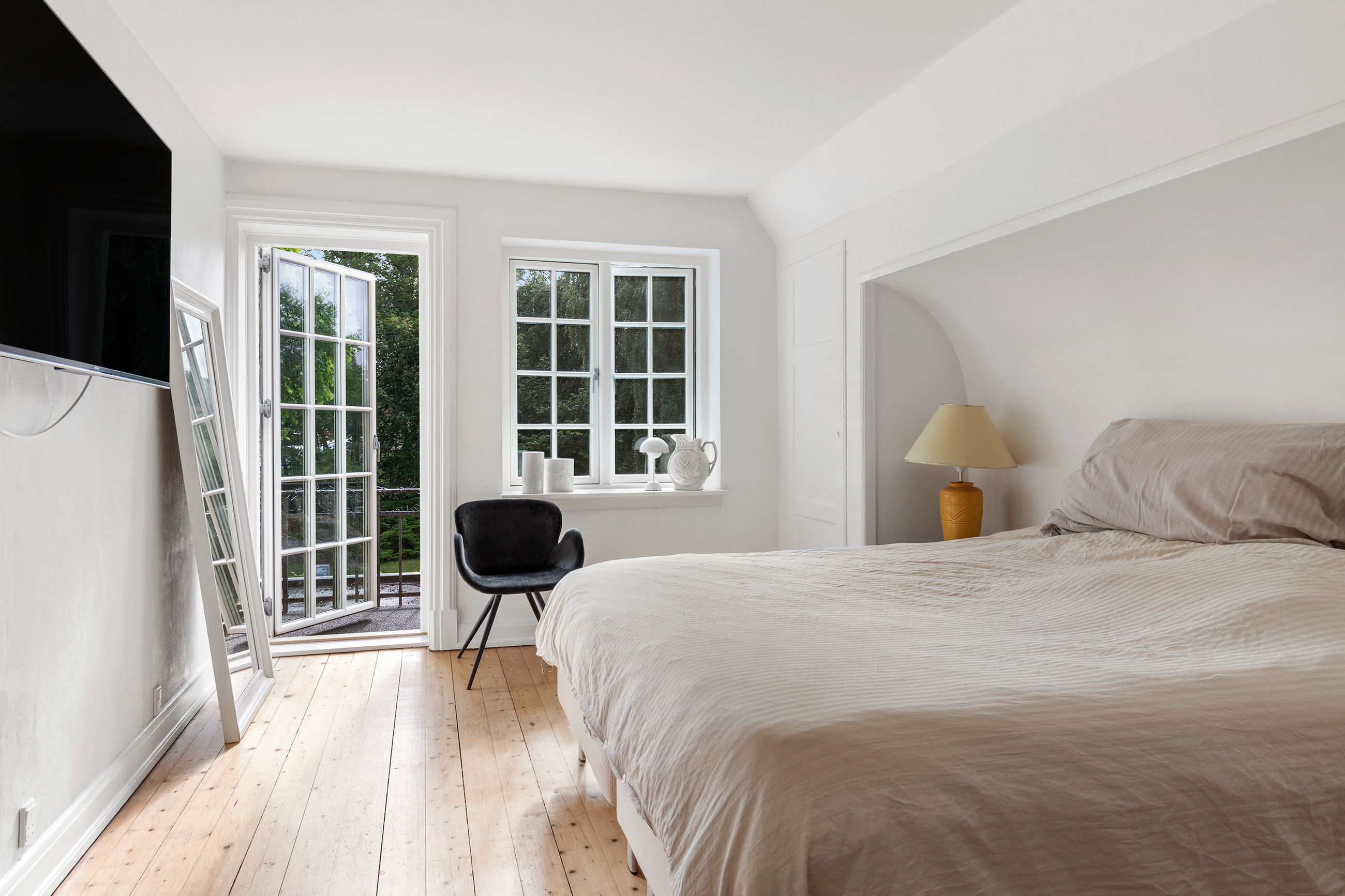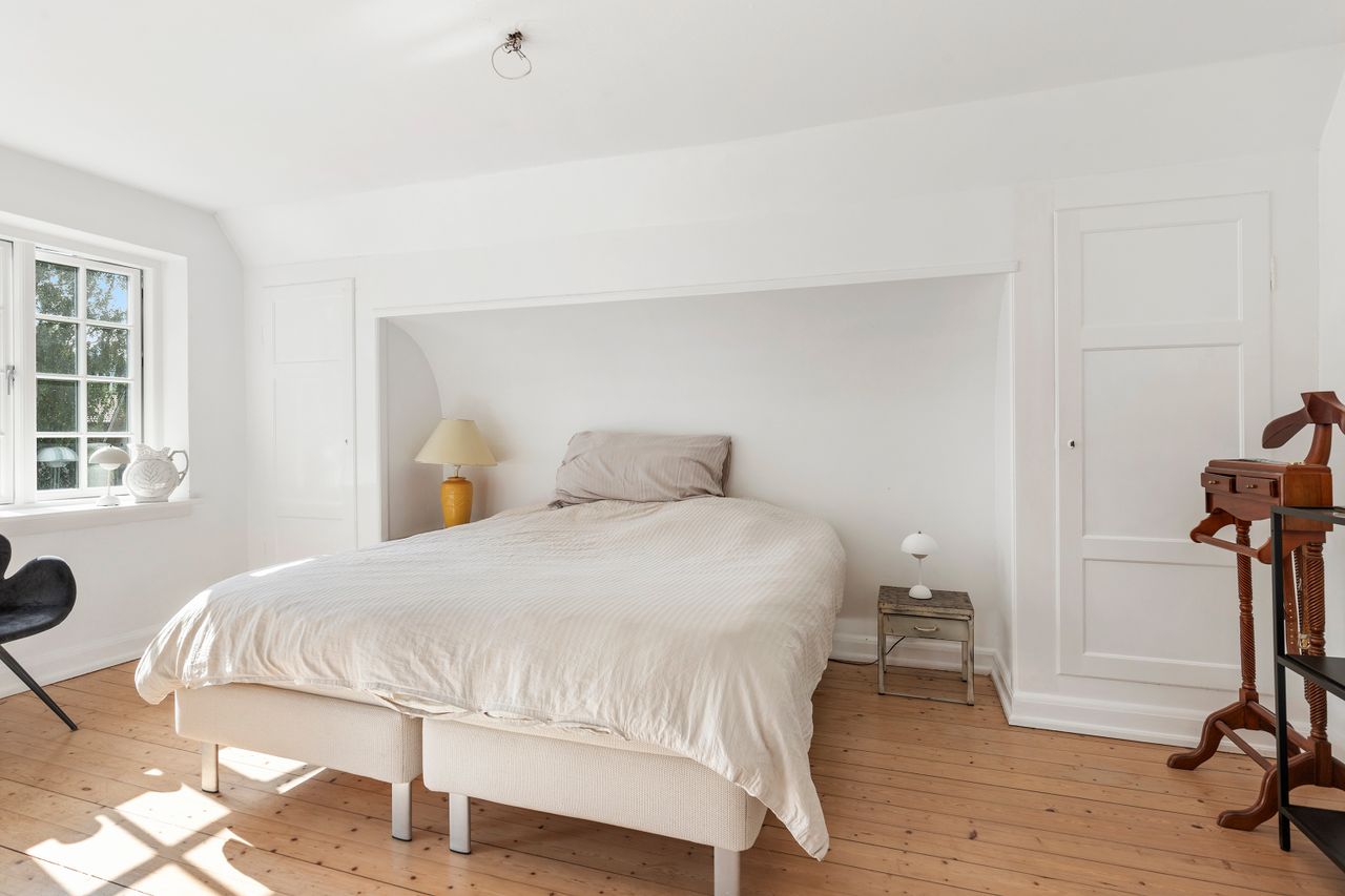 På førstesalen finder du tre værelser, heraf et soveværelse med egen lille altan – perfekt til morgenkaffen samt et lyst og rummeligt badeværelse. I kælderen er der endnu et badeværelse, et praktisk bryggers og et disponibelt rum, der kan bruges til hobby, opbevaring eller hjemmekontor.
