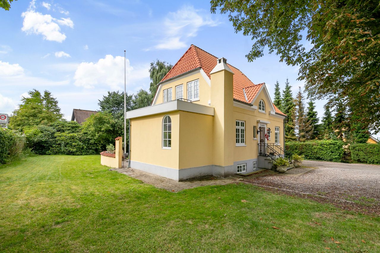 På Nørre Tranders Vej 34 finder du denne smukke og velholdte herskabsvilla "Granlien", der emmer af historie, charme og sjæl. Huset har været i familiens eje siden 1960 og er løbende vedligeholdt, så det i dag fremstår som en harmonisk kombination af klassiske detaljer og moderne komfort. Beliggenheden i det eftertragtede Vejgaard-område giver både grønne omgivelser og kort afstand til byens mange faciliteter, indkøb, skoler og offentlig transport.
