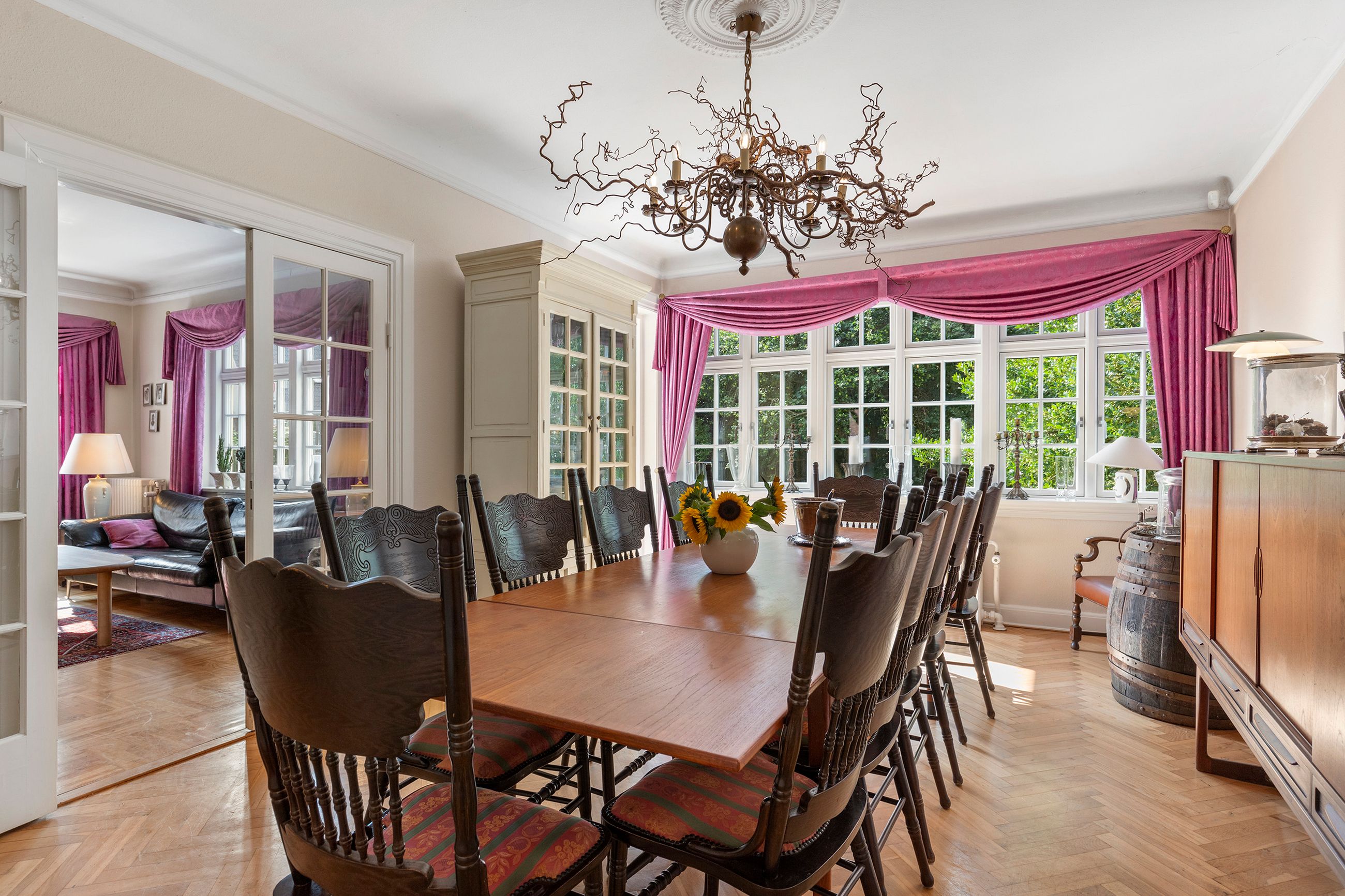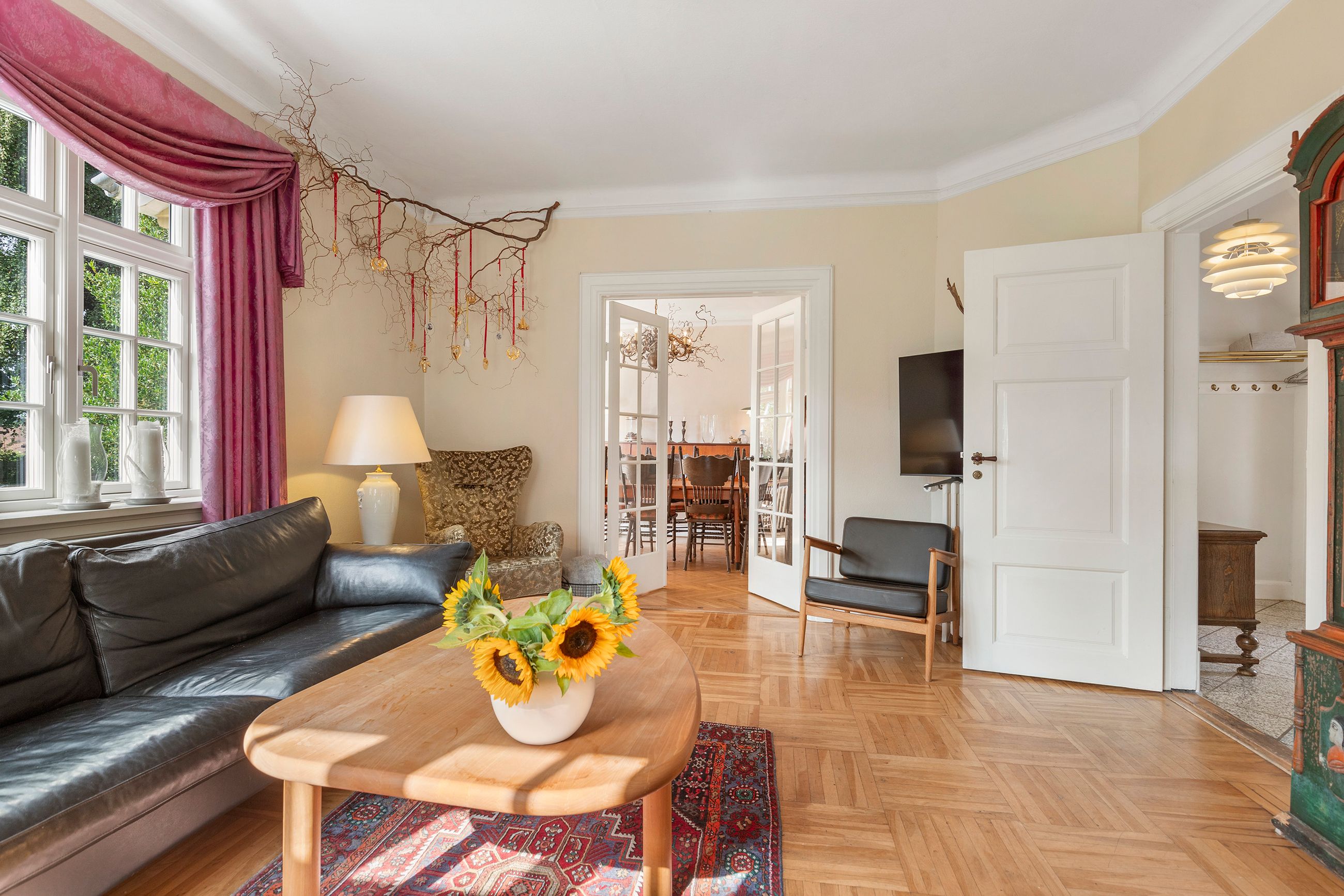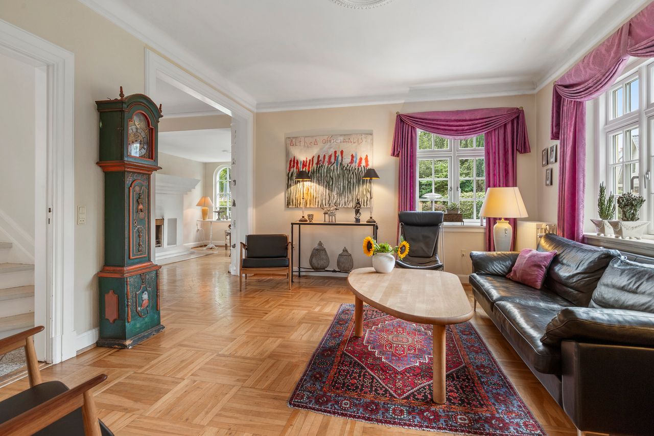 Villaen byder på i alt 149 m2 bolig fordelt på to etager samt en 72 m2 kælder. Stueplanen rummer to store, lyse stuer med flot parketgulv, højt til loftet og store vinduespartier, der sikrer et skønt lysindfald. Vinduerne er udskiftet for blot to år siden, hvilket både giver bedre komfort og lavere energiforbrug. Køkkenet er lyst og funktionelt med god bordplads, og herfra er der direkte adgang til spisestuen, hvor familie og gæster kan samles.