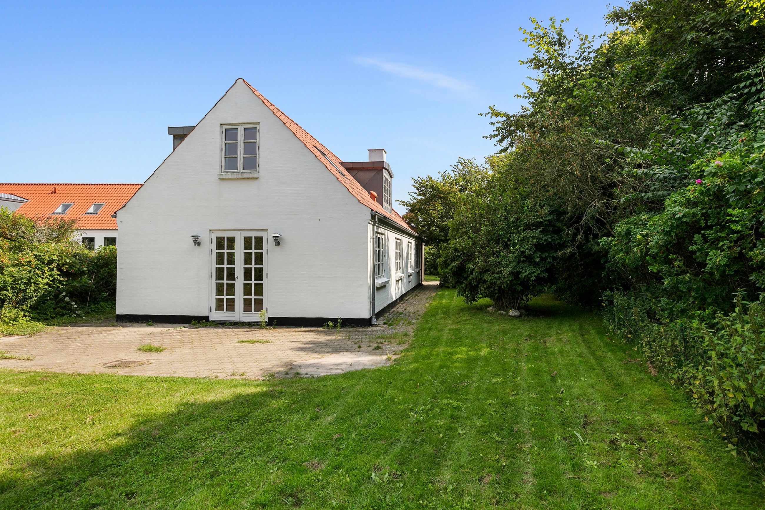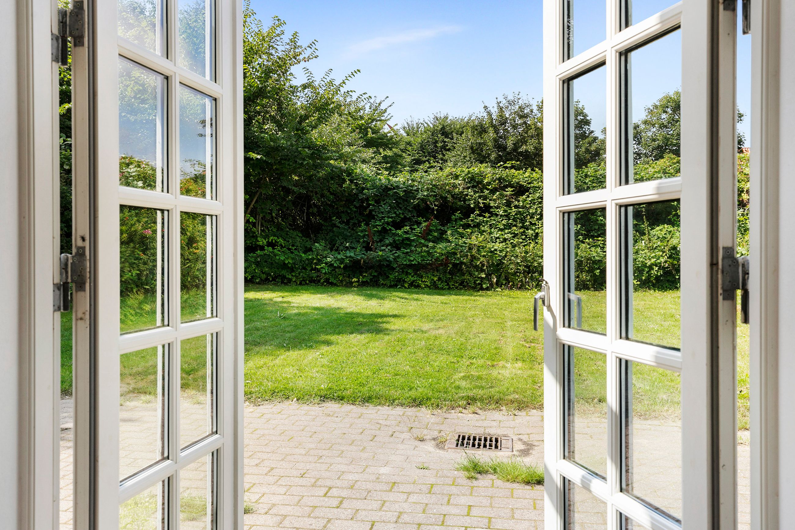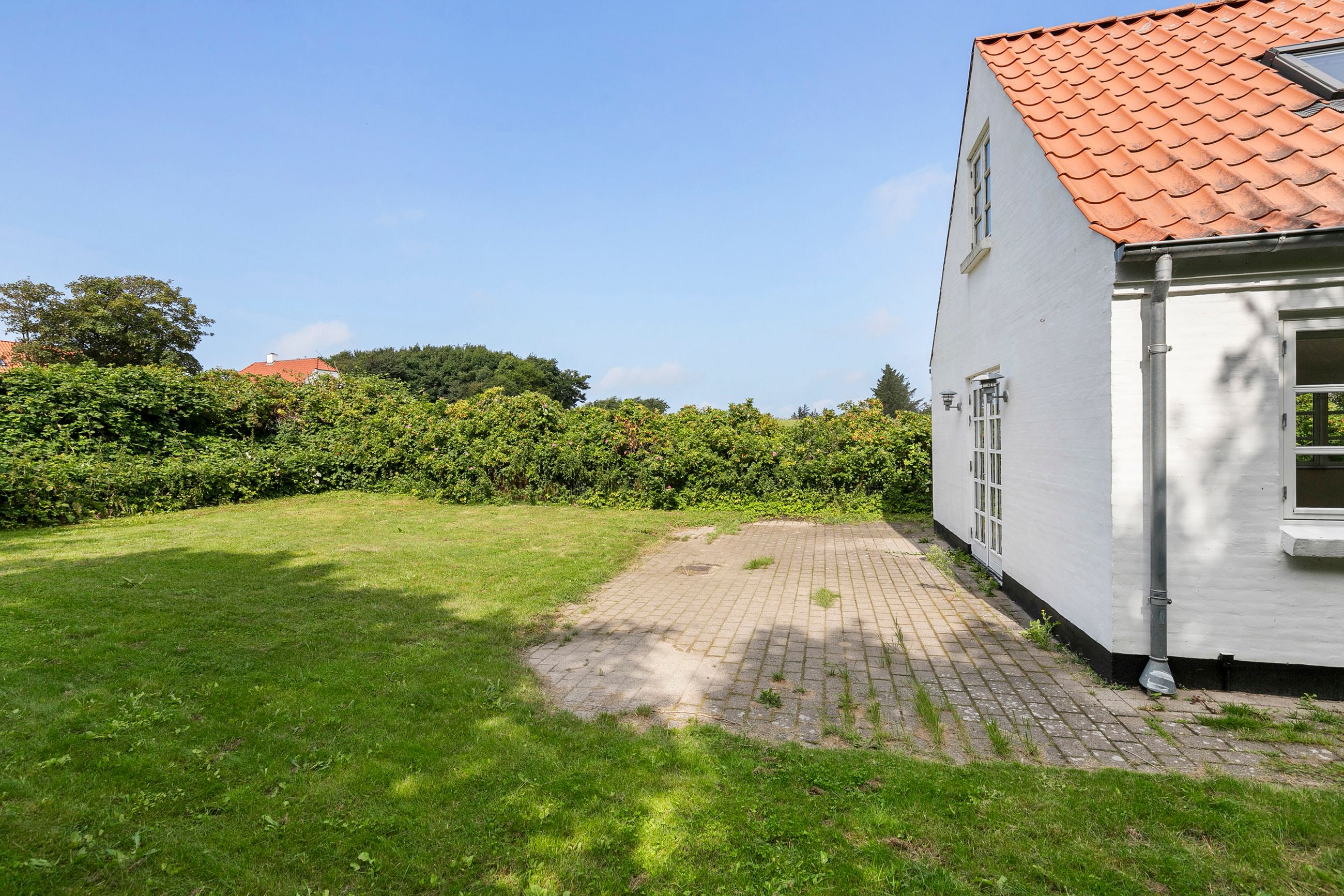 Udenfor venter en dejlig have omgivet af natur, hvor du kan nyde roen, fuglesangen og de lange sommeraftener. Her er plads til leg, haveprojekter og stille stunder.