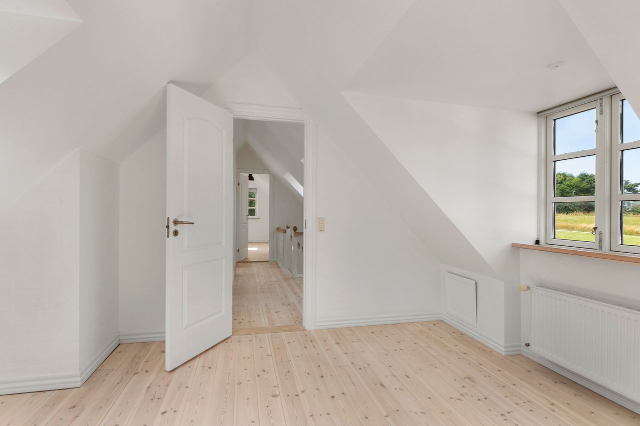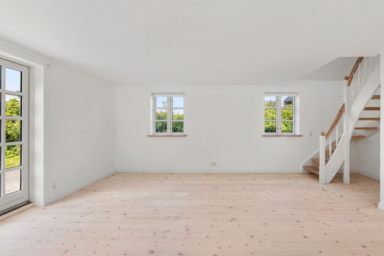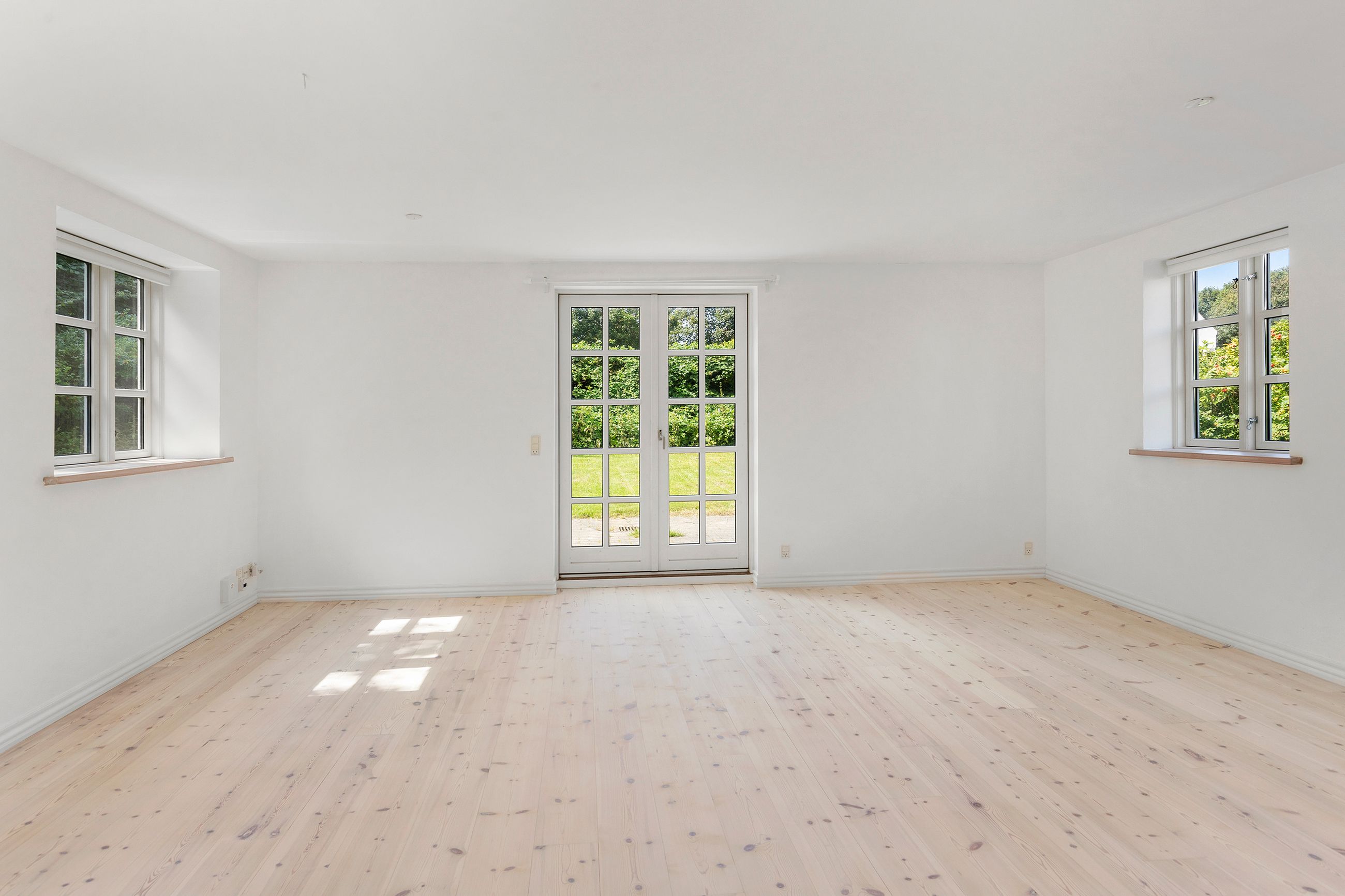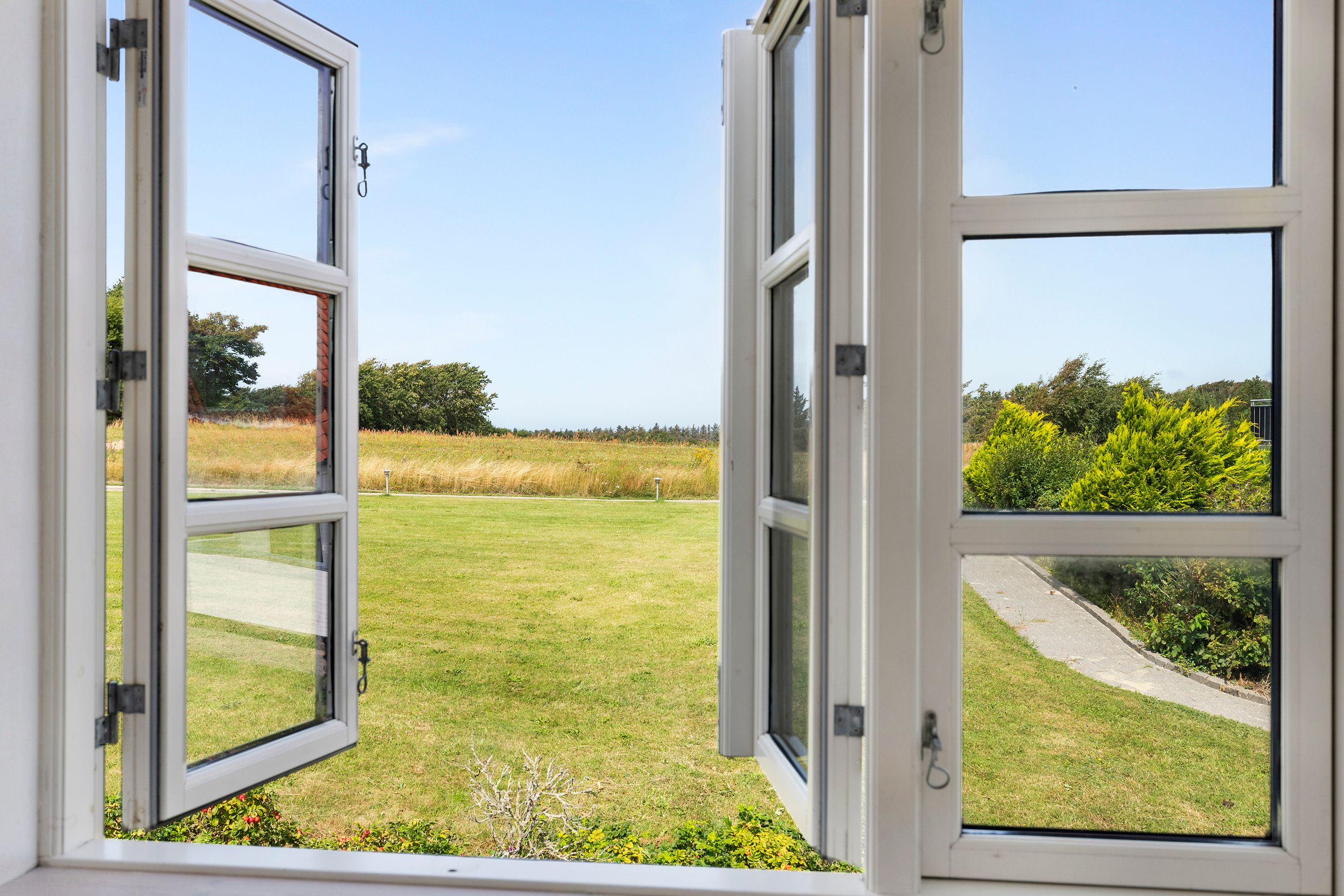 Udenfor venter en dejlig have omgivet af natur, hvor du kan nyde roen, fuglesangen og de lange sommeraftener. Her er plads til leg, haveprojekter og stille stunder.