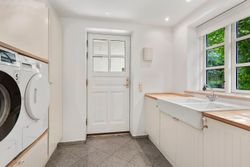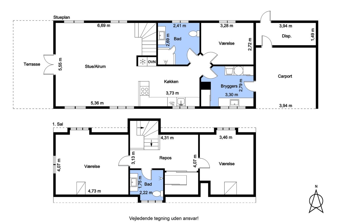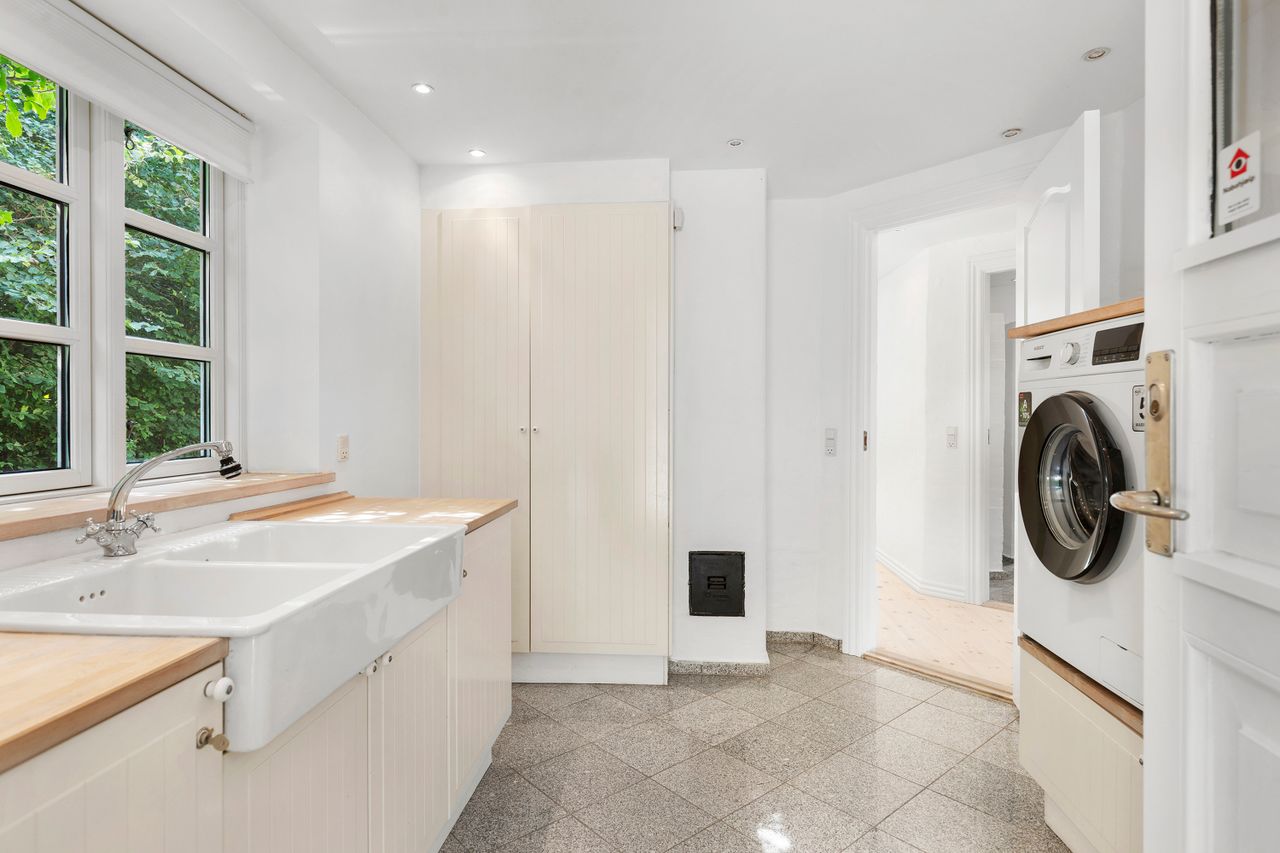 Et praktisk bryggers giver plads til både vaskefaciliteter og opbevaring, mens den tilhørende carport på 27 m2 beskytter bilen og giver ekstra plads til redskaber.