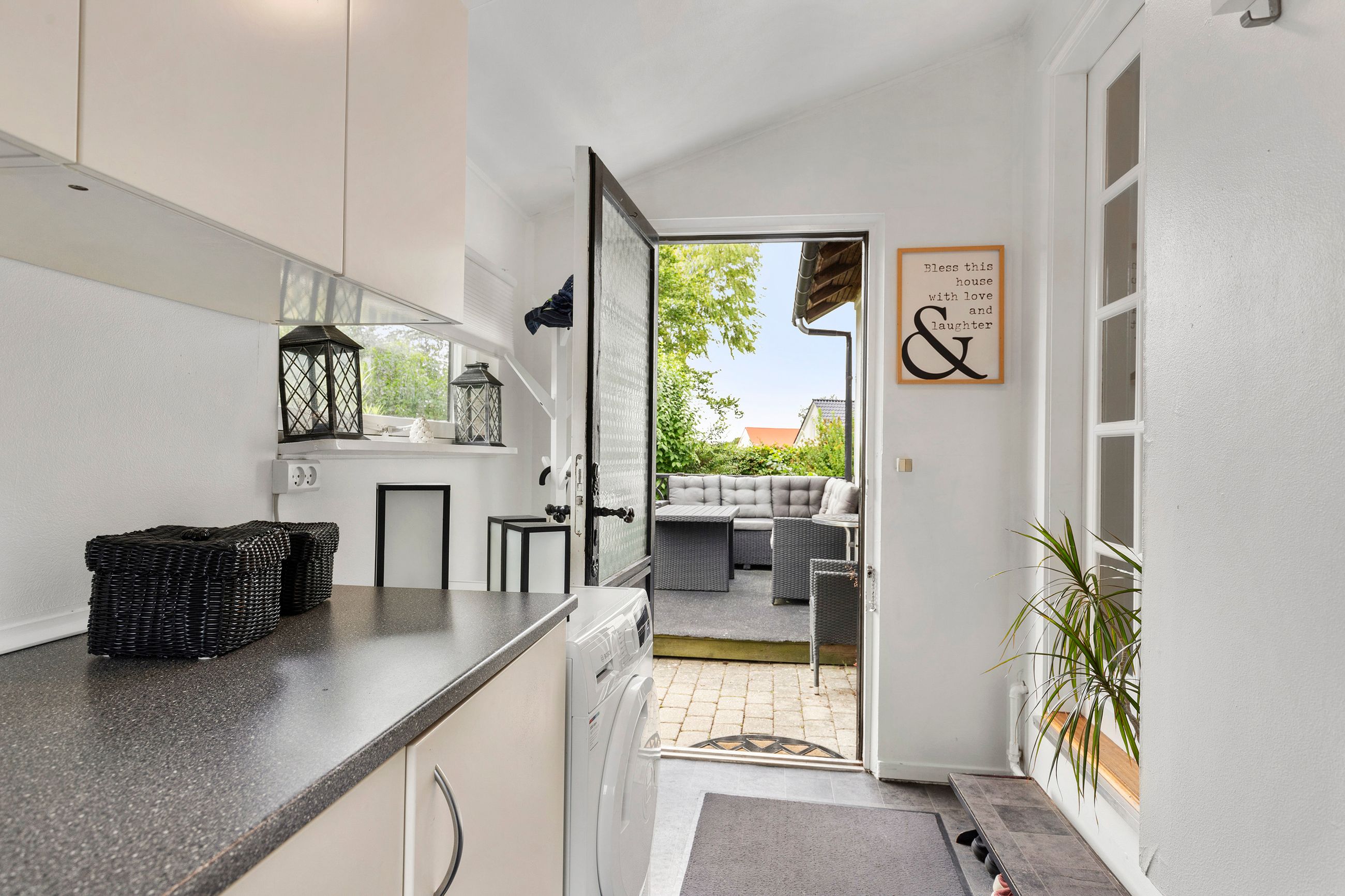 Udendørs venter en dejlig og overskuelig have, der er nem at holde, men stadig rummer masser af muligheder. Her kan børnene lege frit, og de voksne kan nyde solen på den hyggelige terrasse – perfekt til sommerens grillmiddage og afslapning i frisk luft. Til ejendommen hører desuden et udhus på 17 m2, der kan bruges som værksted eller til opbevaring af cykler og haveredskaber, samt en garage på 20 m2, hvor der både er plads til bilen og ekstra opbevaring.