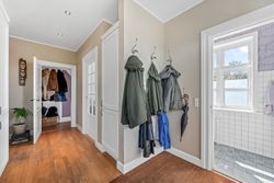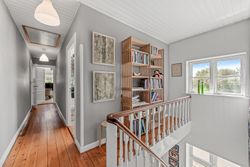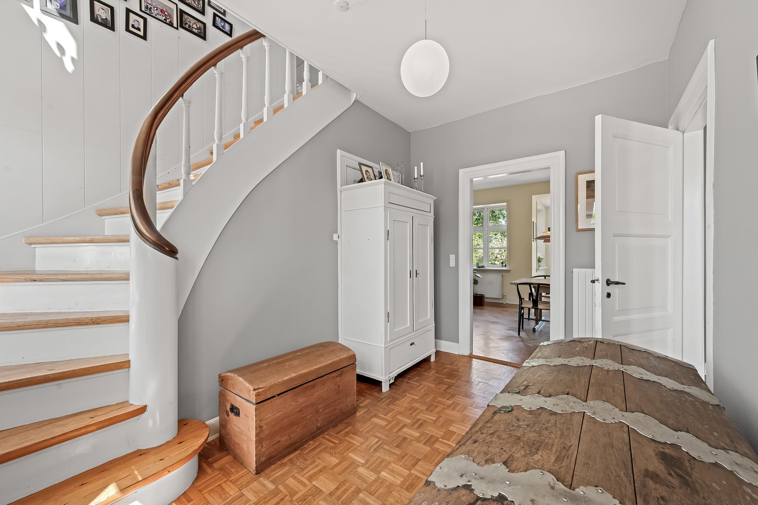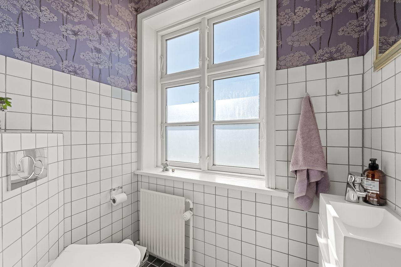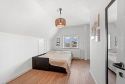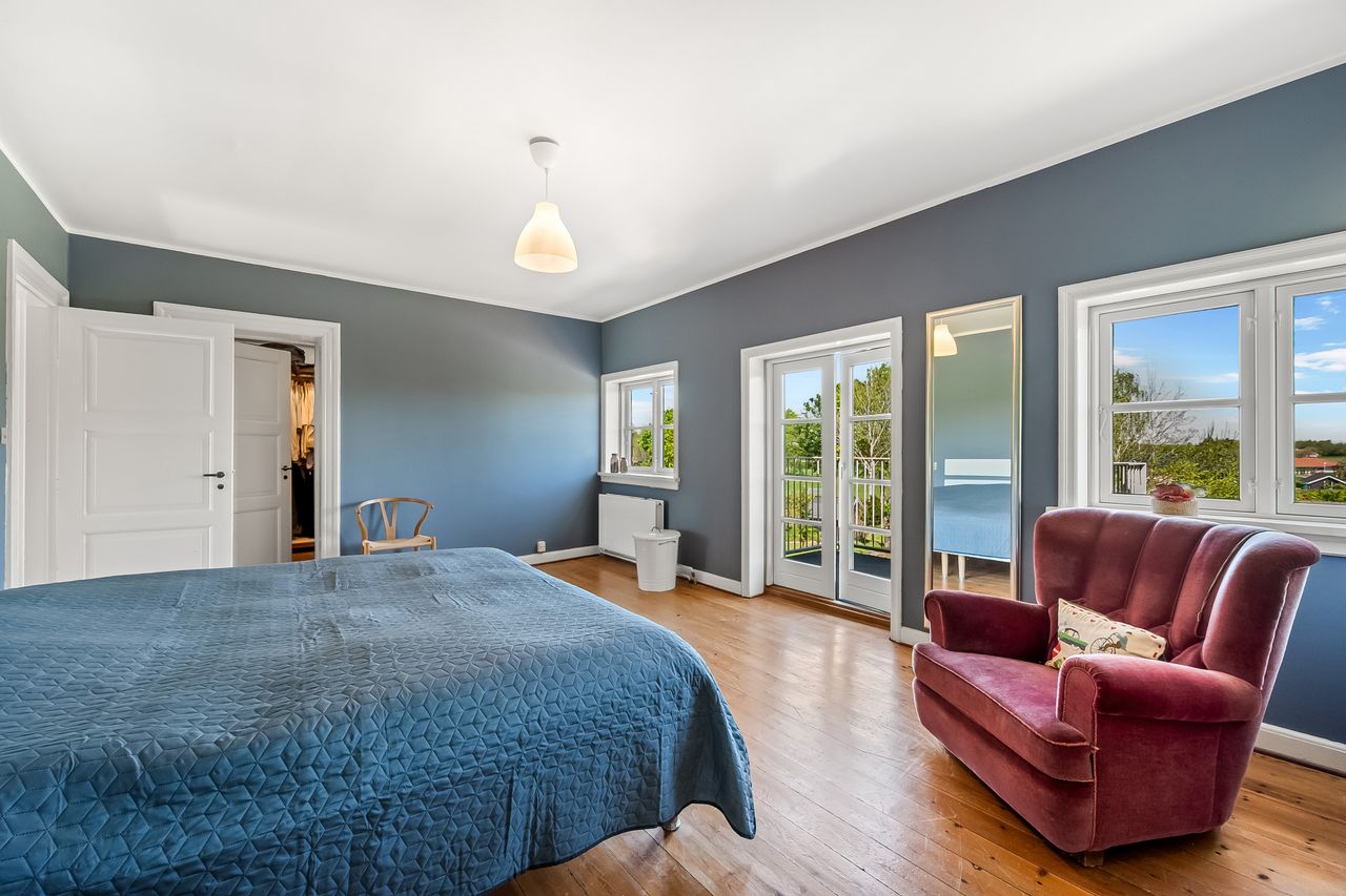 En smuk trappe fører til husets tagetage, der byder på en repos, der giver adgang til husets tre børneværelse samt det store og meget smukke soveværelse med walk-in closet samt adgang til et skønt badeværelse med sindrigt konstrueret bruseniche med hele to brusere.