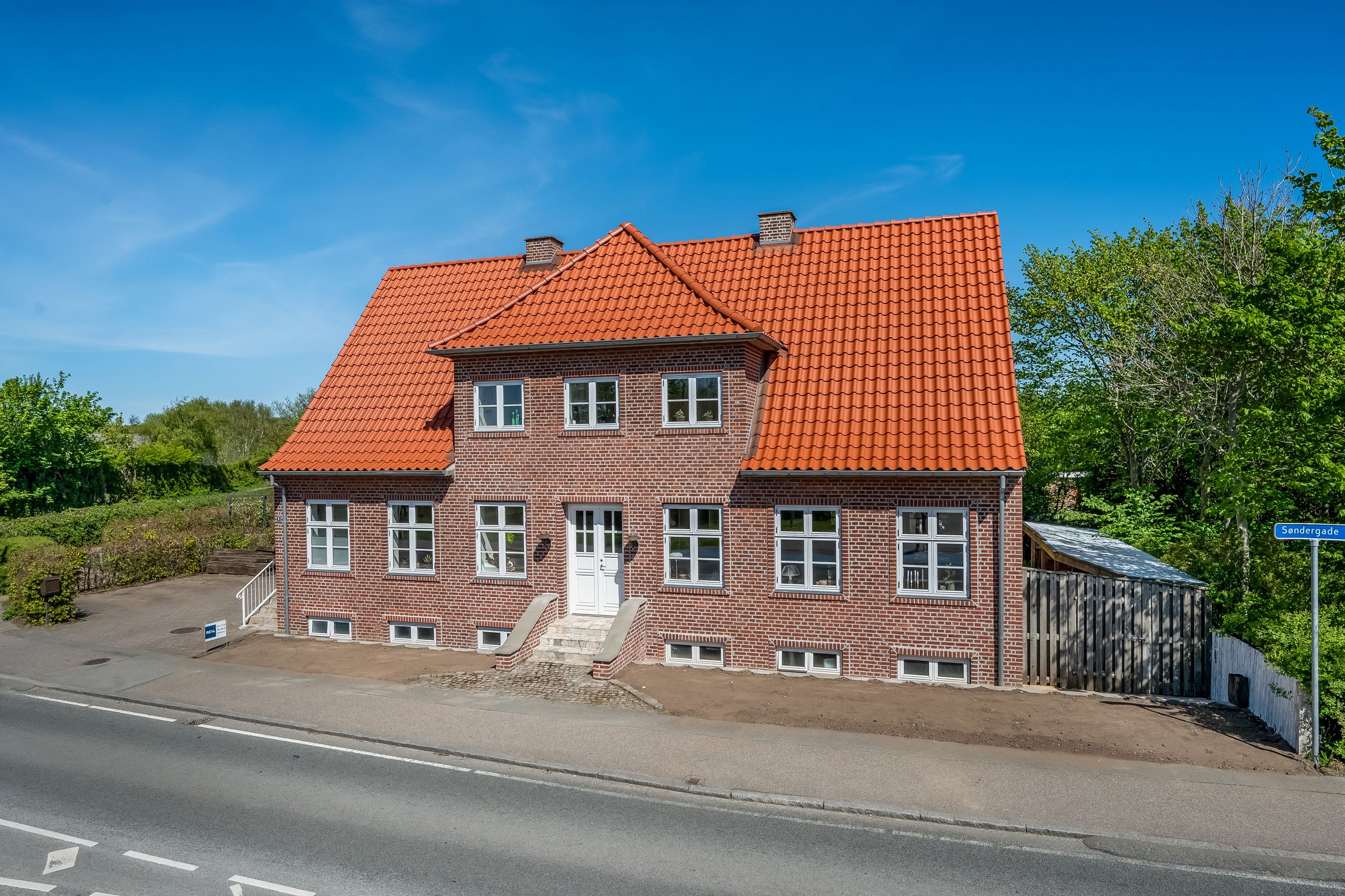 Smuk og harmonisk herskabsvilla opført i røde teglsten og med rødt tegltag. Hele ejendommen er for nylig blevet omfuget og fremtræder såvel udvendigt som indvendigt i rigtig god og velvedligeholdt stand. Ejendommen er i årevis af de mange lokale - og i øvrigt fuldt berettiget - kaldt byens smukkeste hus.