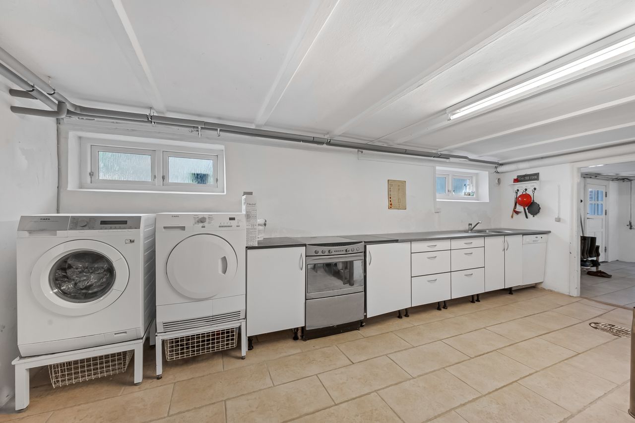 Der er fuld kælder under huset med masser af gode og særdeles funktionelle rum samt et toilet.