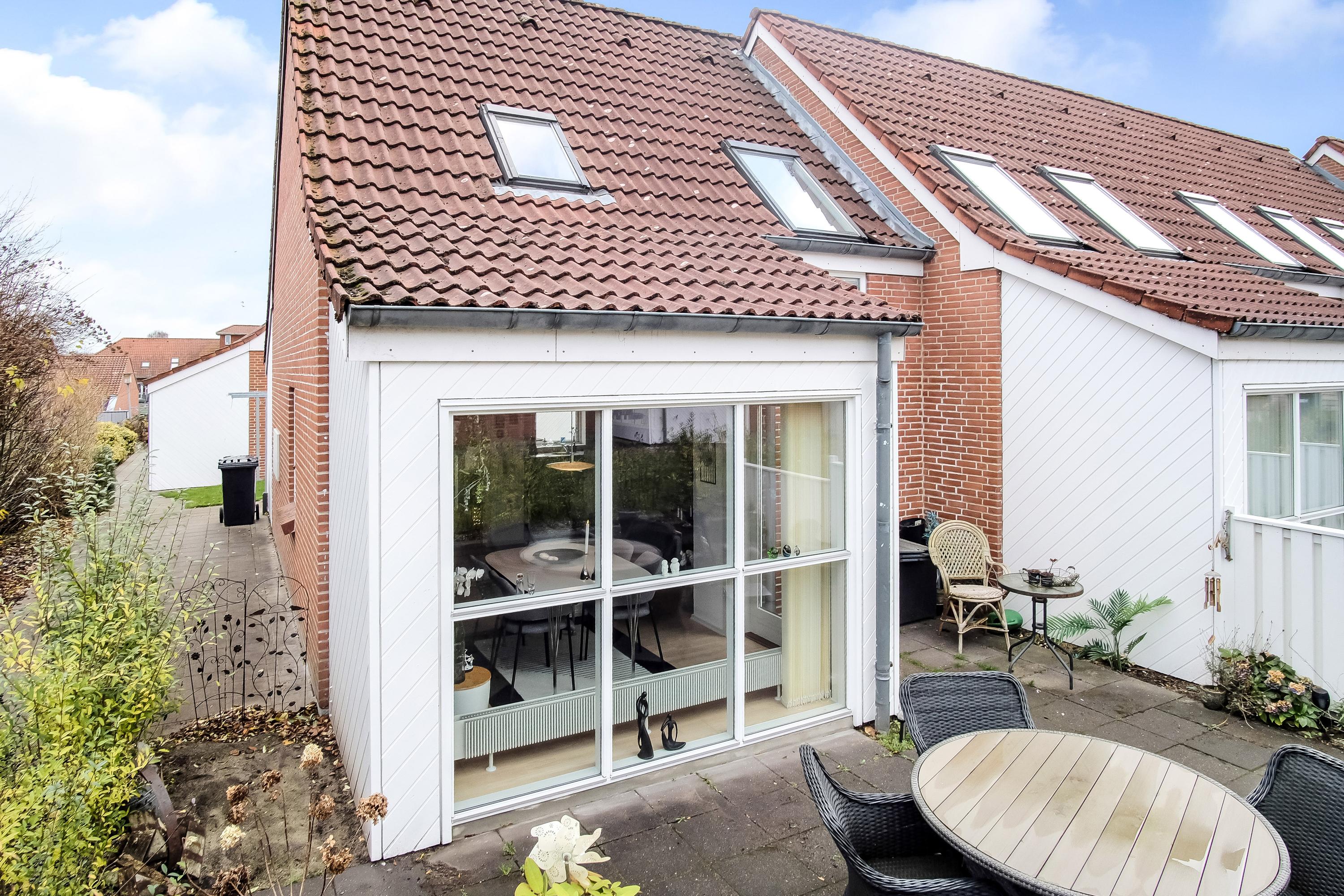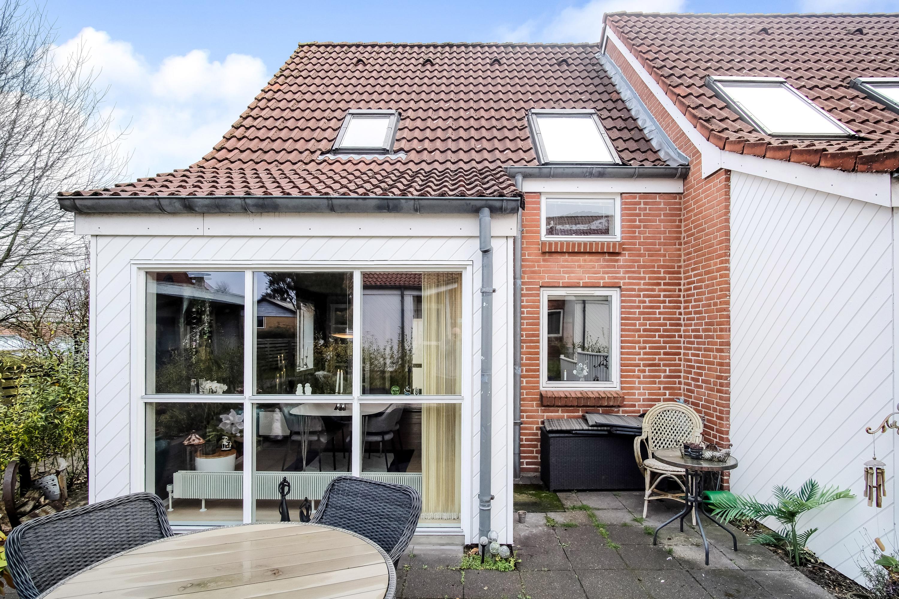 Boligen ligger for enden, længst væk fra vejen, så en attraktiv og ugeneret placering med et skønt terrassemiljø.