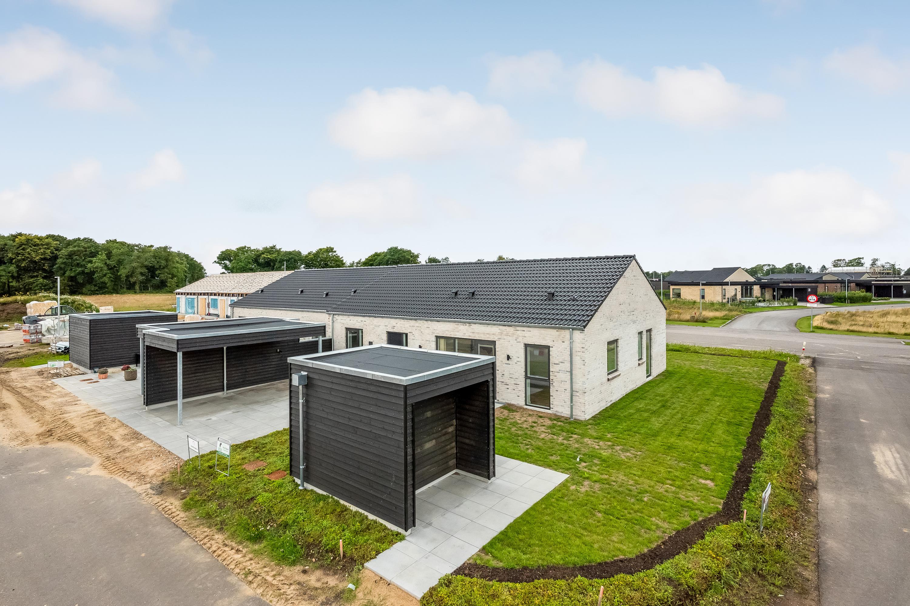 Nyopført hus med have, fliseanlæg, gardiner og hvidevarer - flyt ind juni 2025