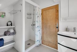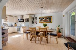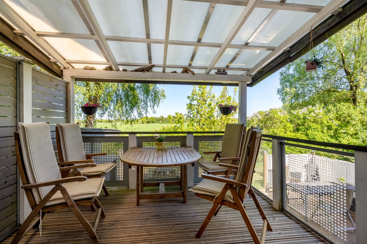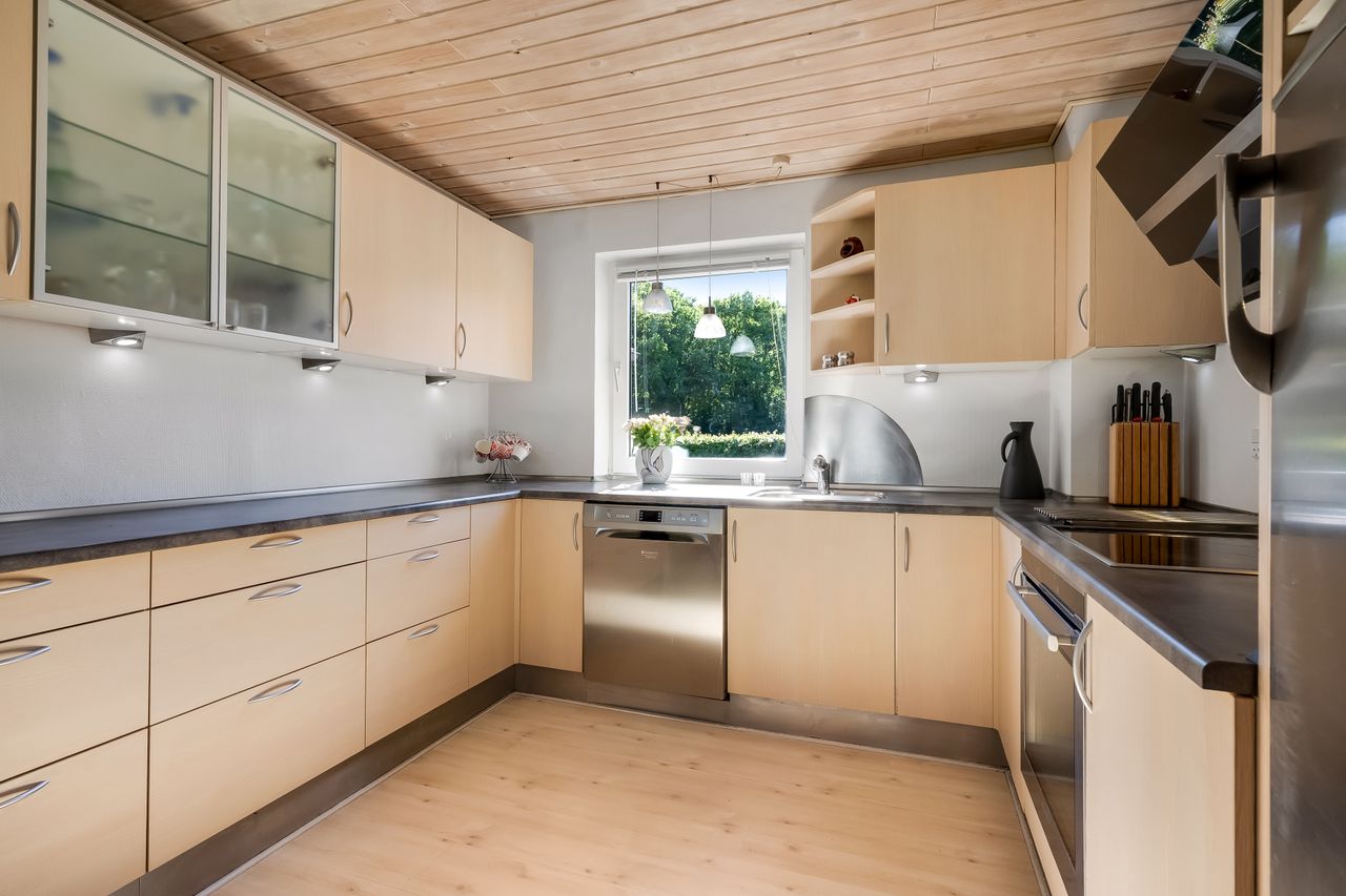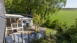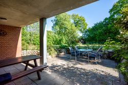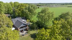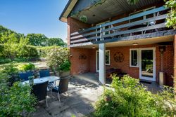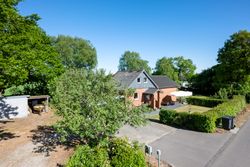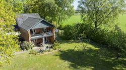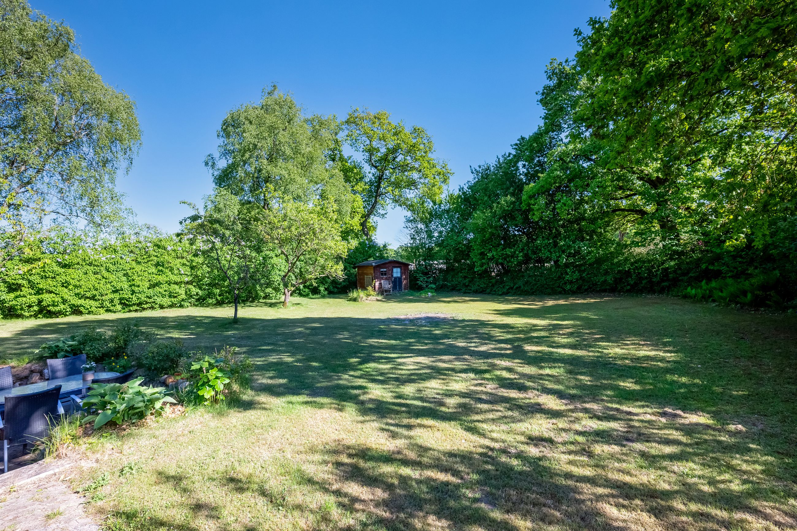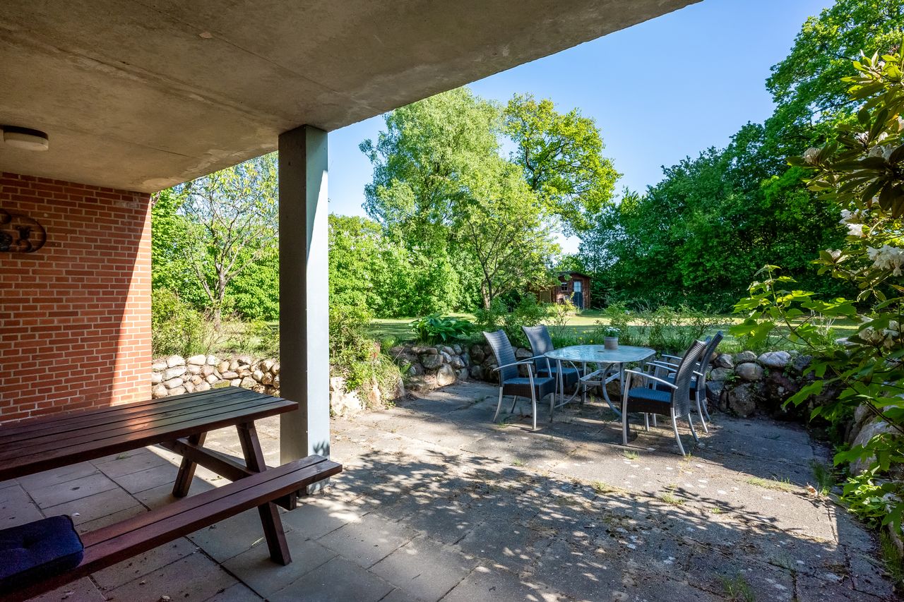 Villaen er omkranset af en stor hyggelig have, hvor du kan nyde de naturskønne omgivelser fra flere gode terrasser og hyggekroge. Her er plads til både afslapning og leg for hele familien. Ejendommen har også en stor garage og et godt værksted, perfekt til hobbyprojekter eller opbevaring.