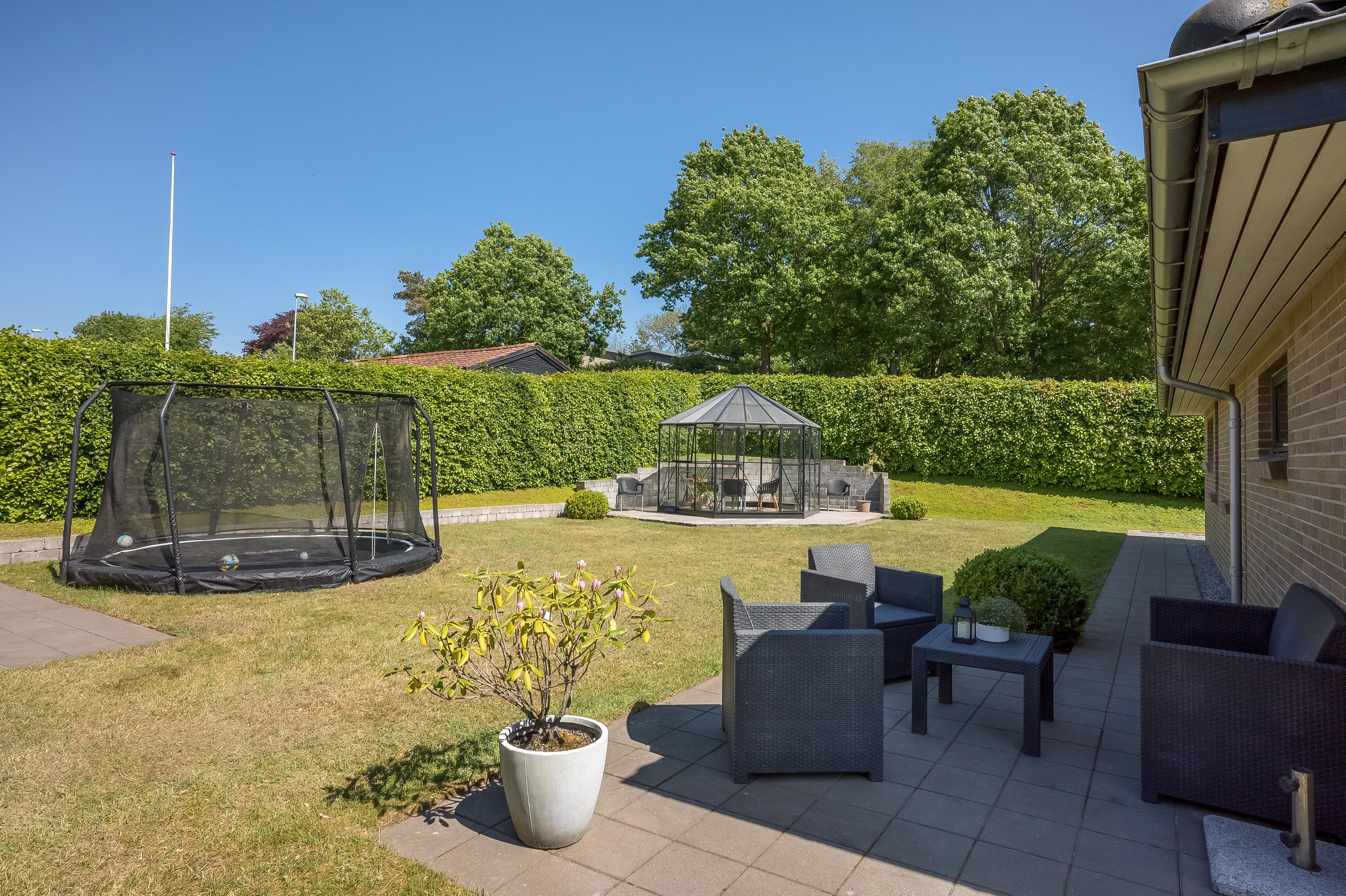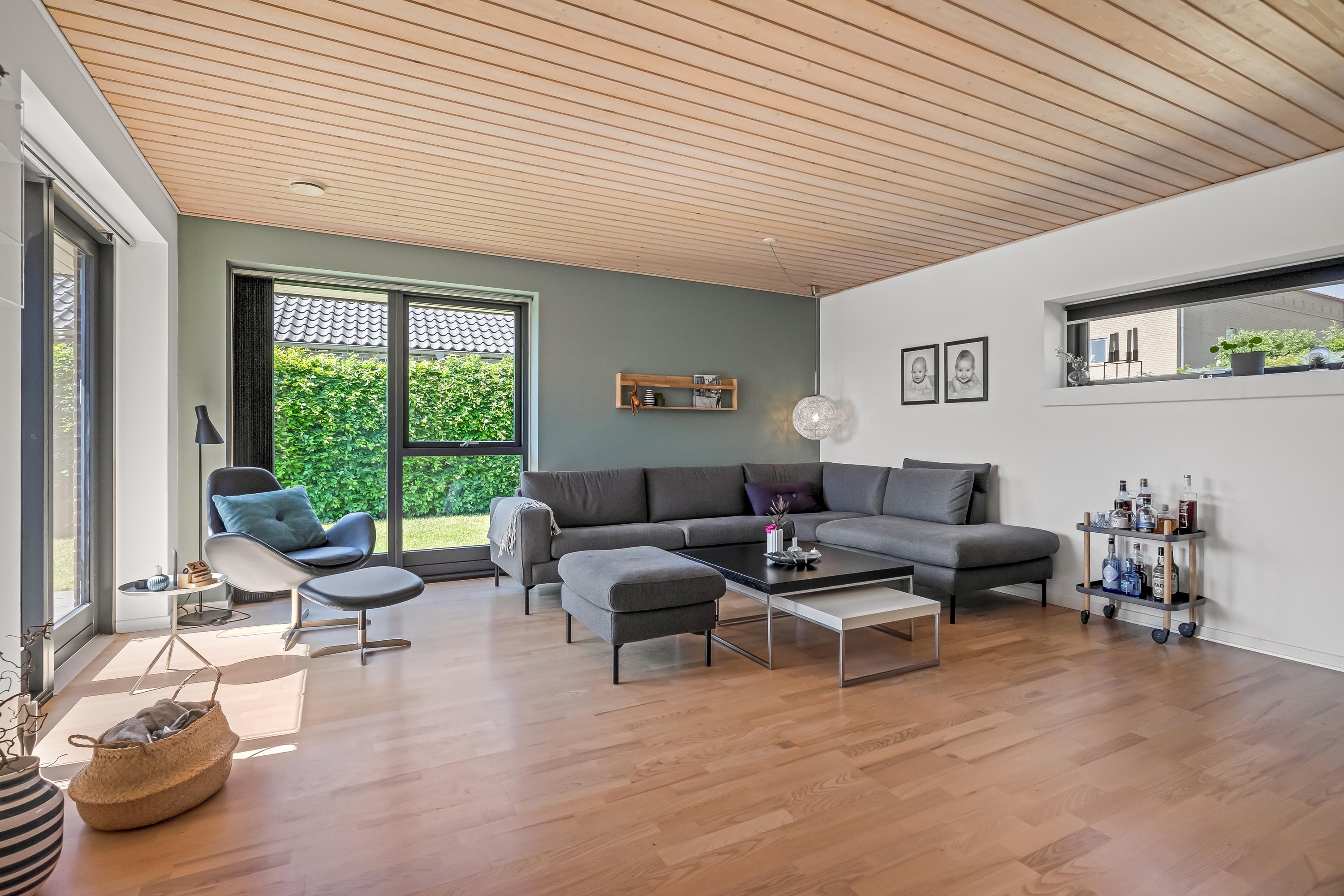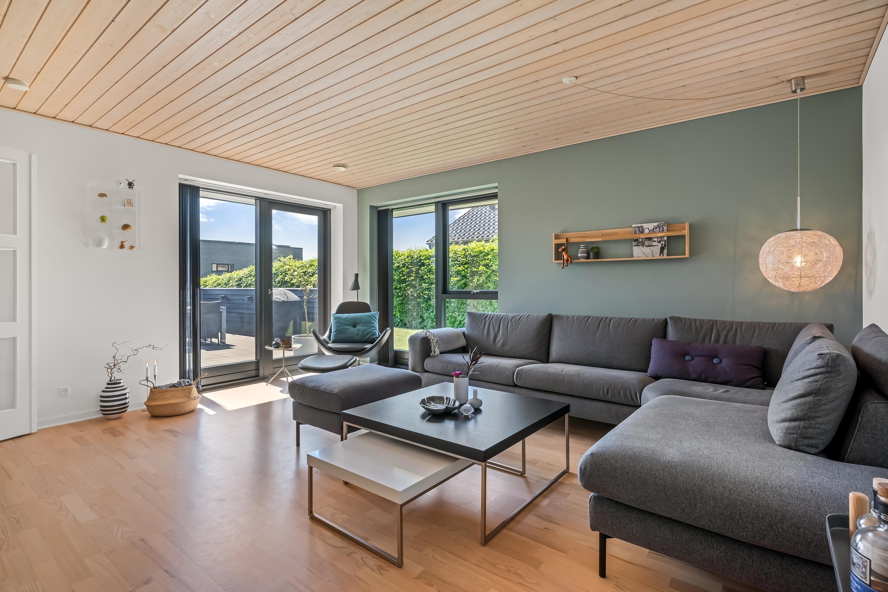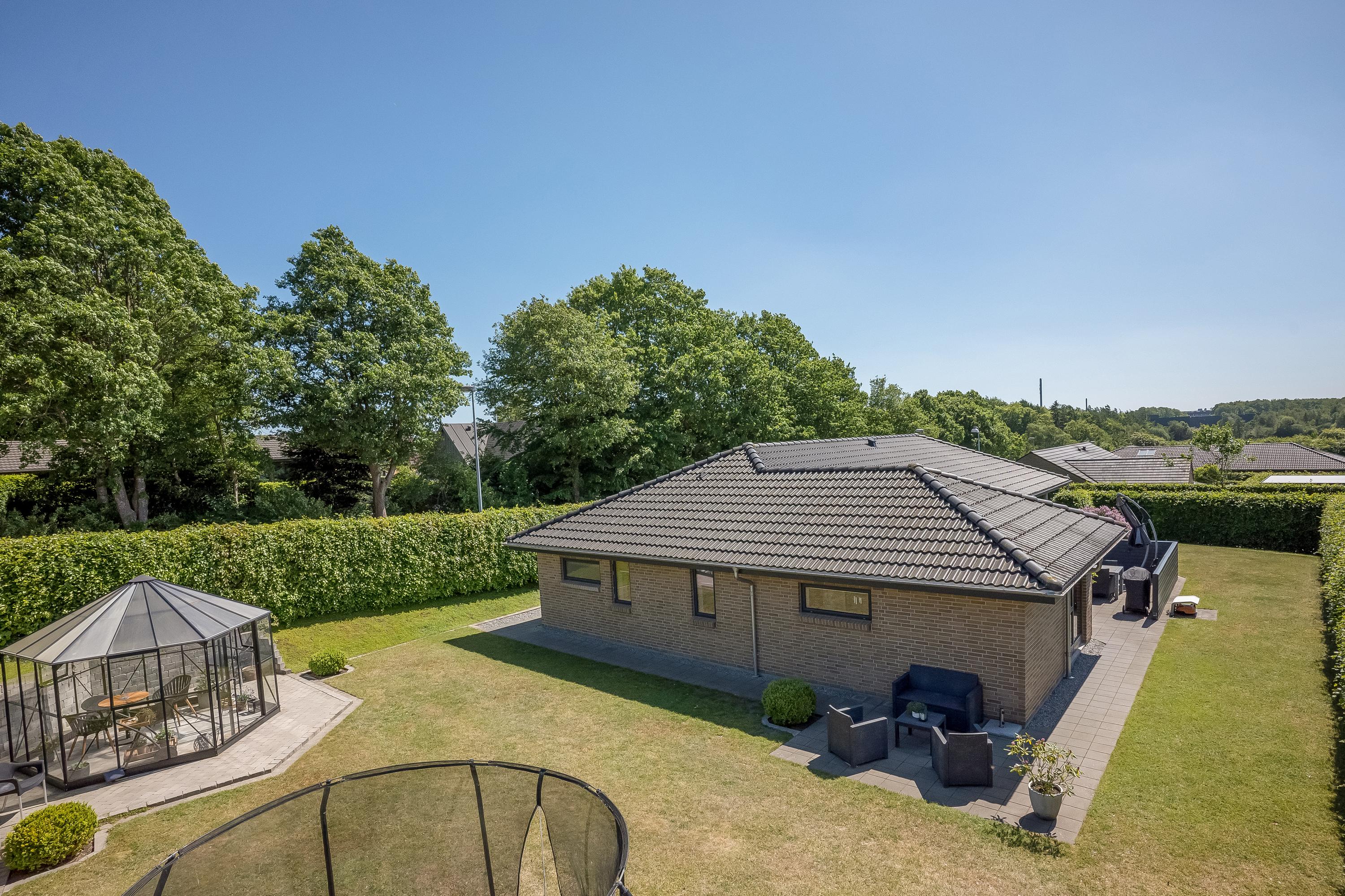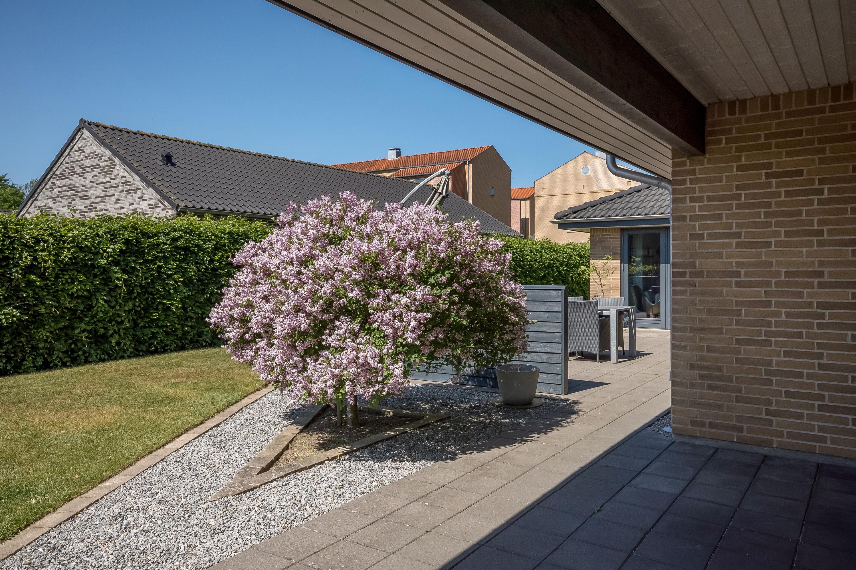 Moderne vinkelbygget villa i attraktivt kvarter - solrig terrasse og flot orangeri