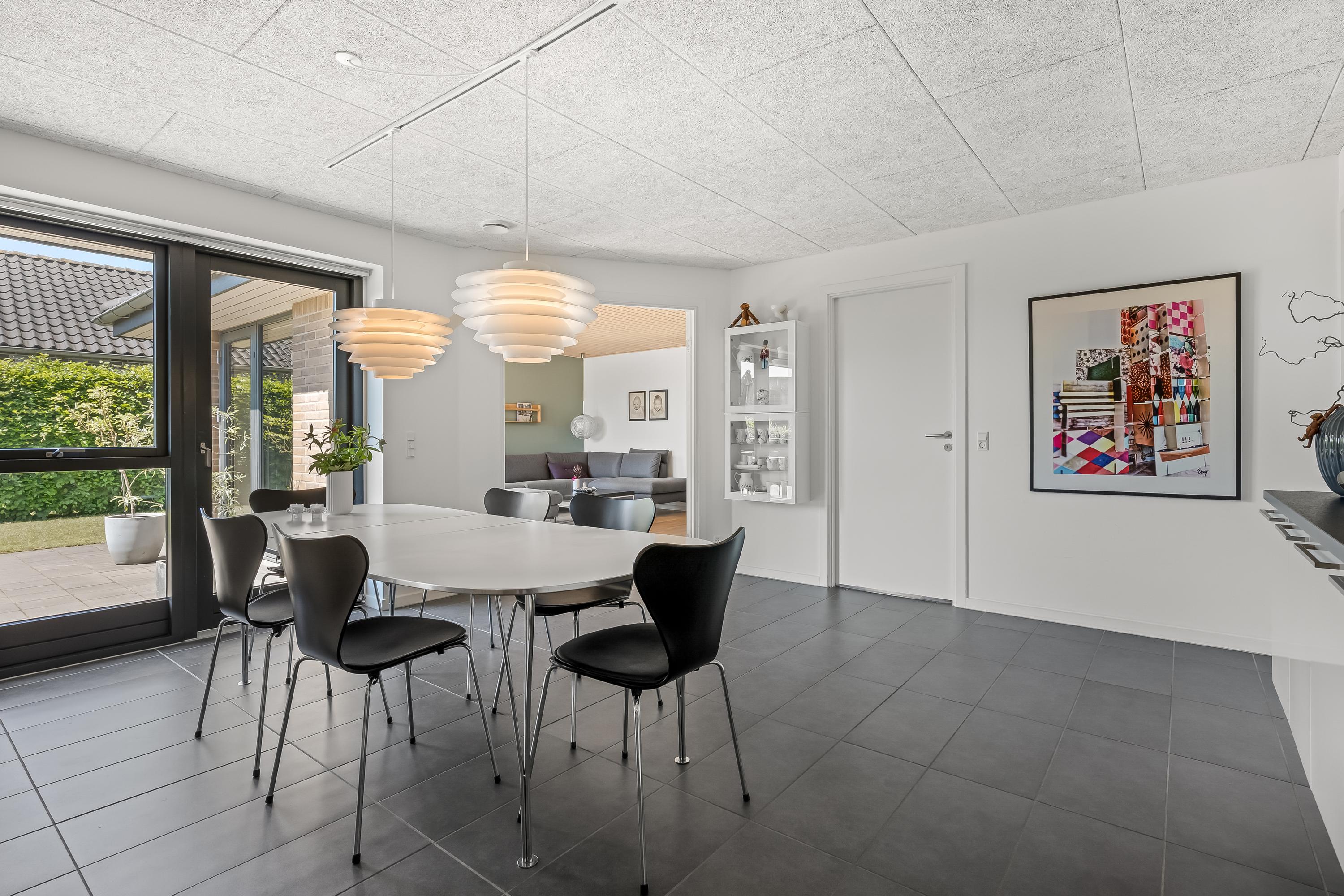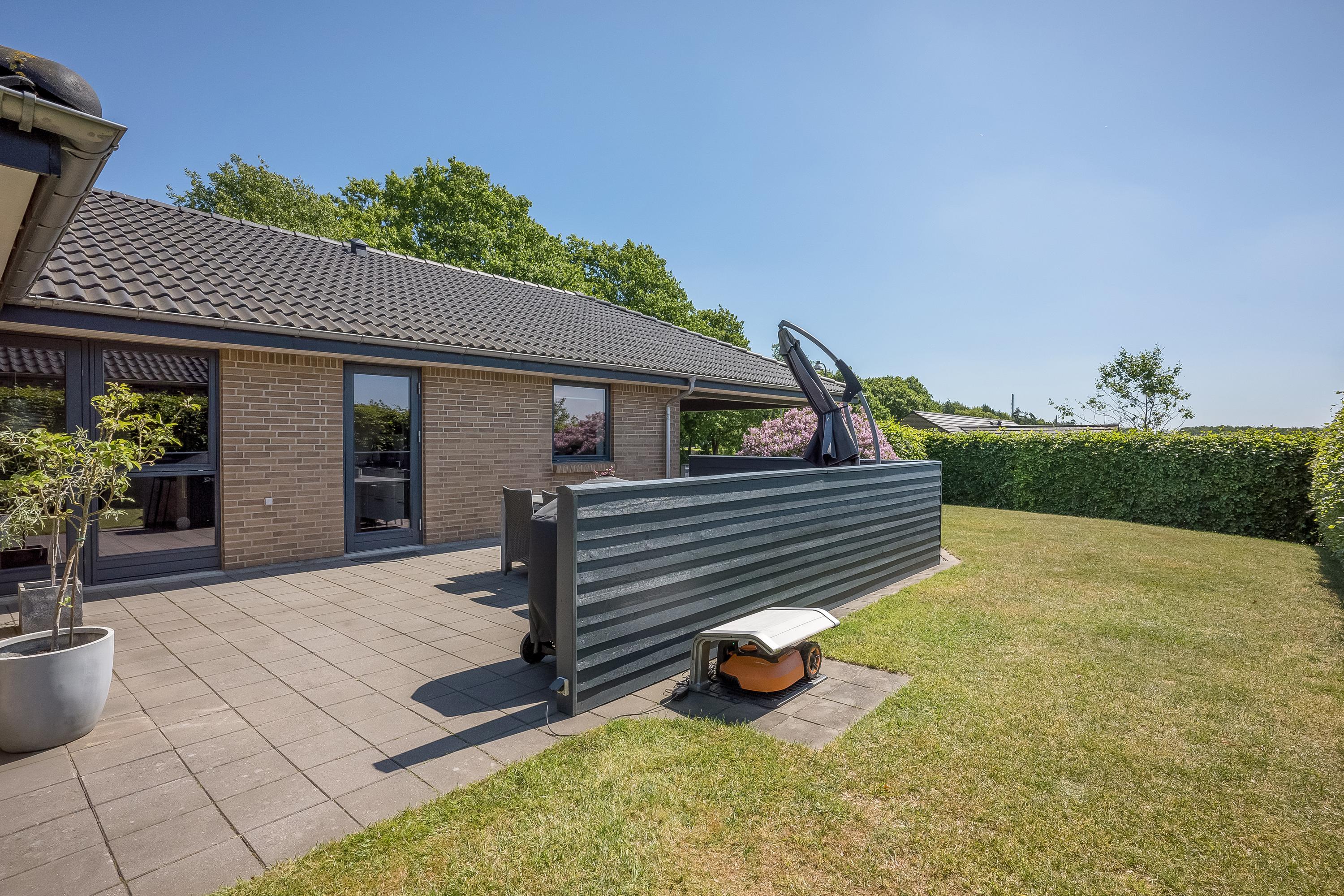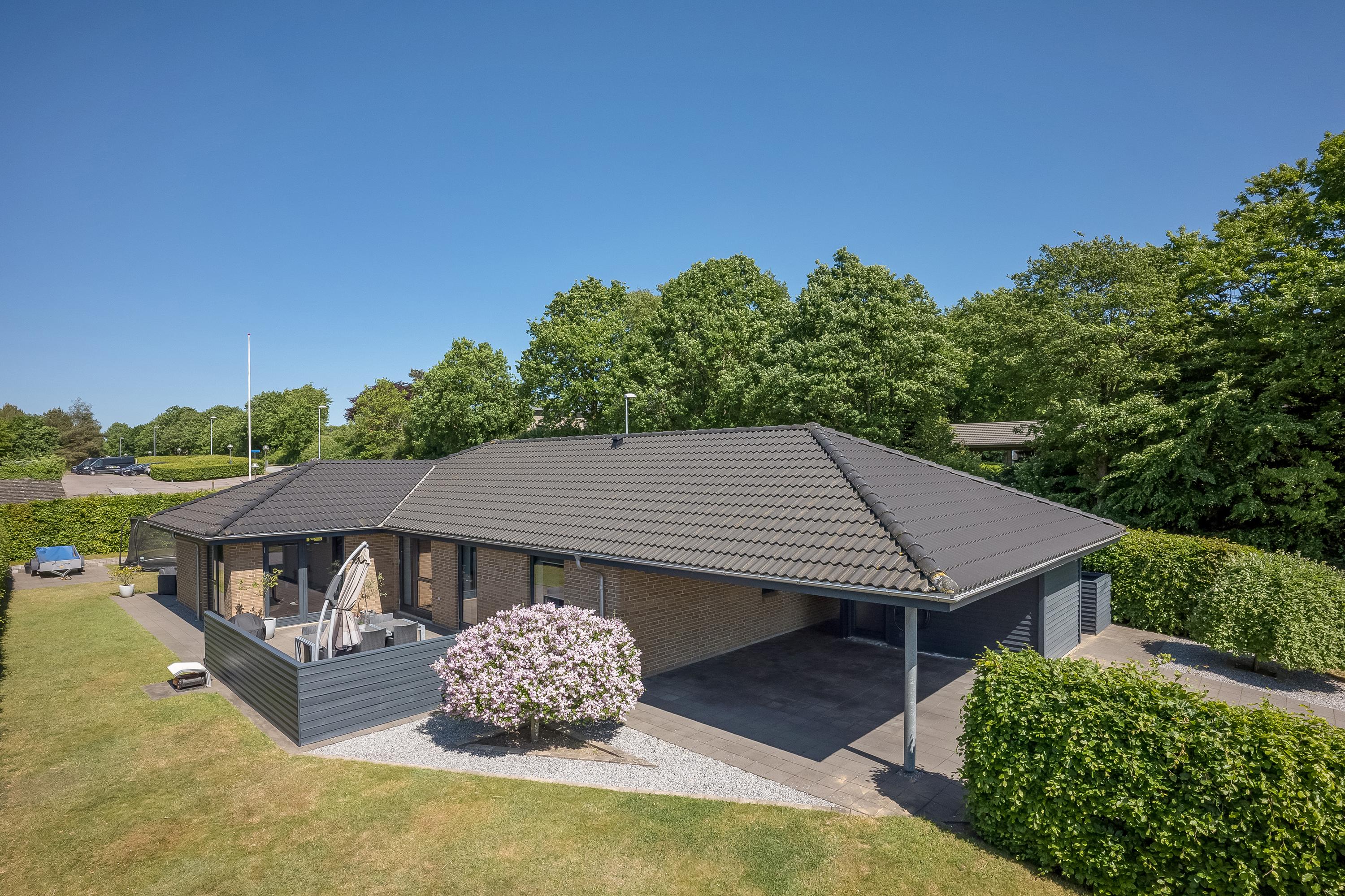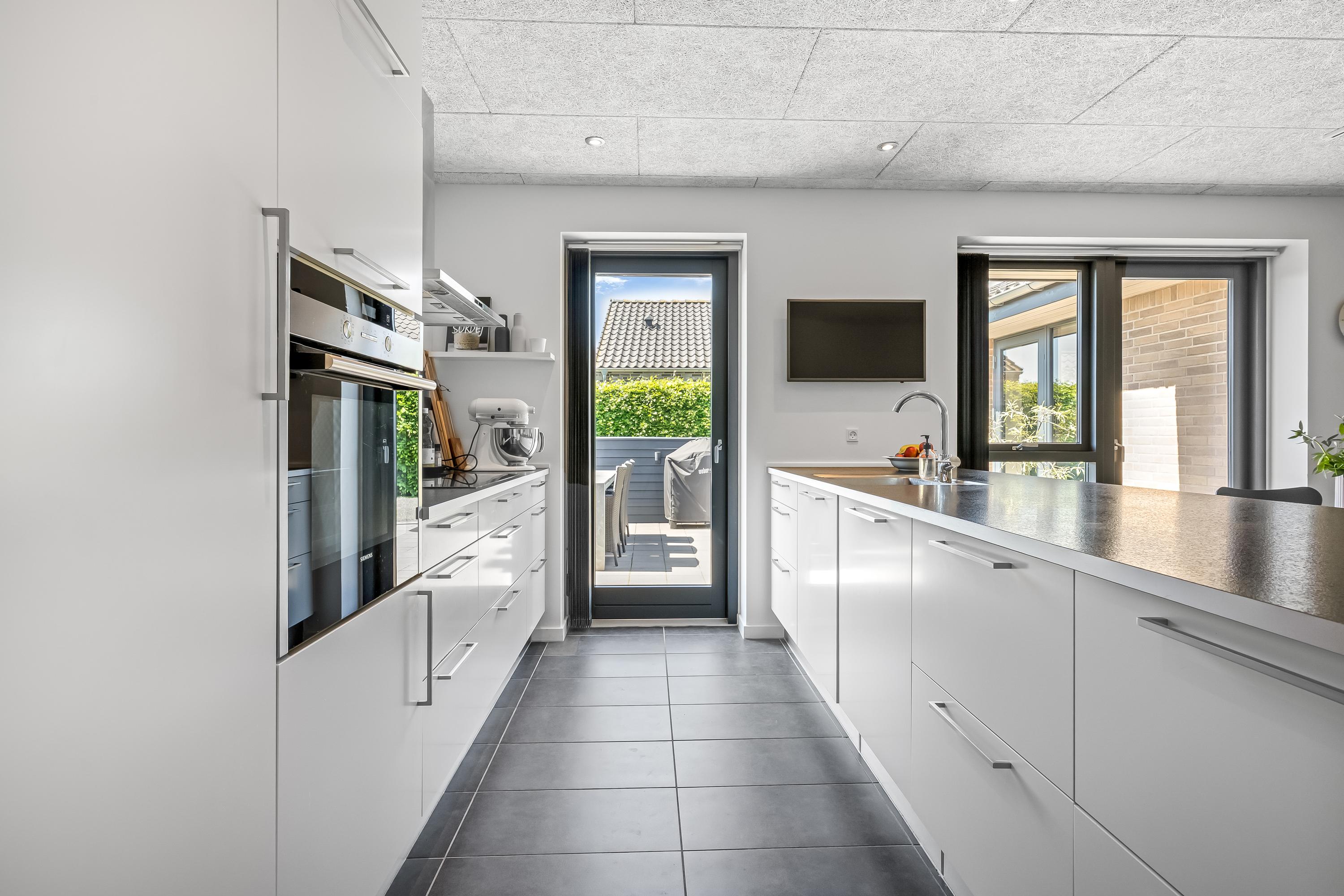 Moderne vinkelbygget villa i attraktivt kvarter - solrig terrasse og flot orangeri