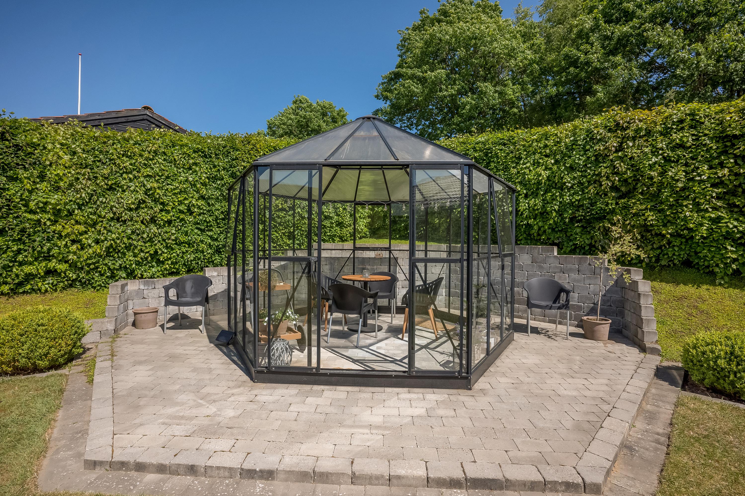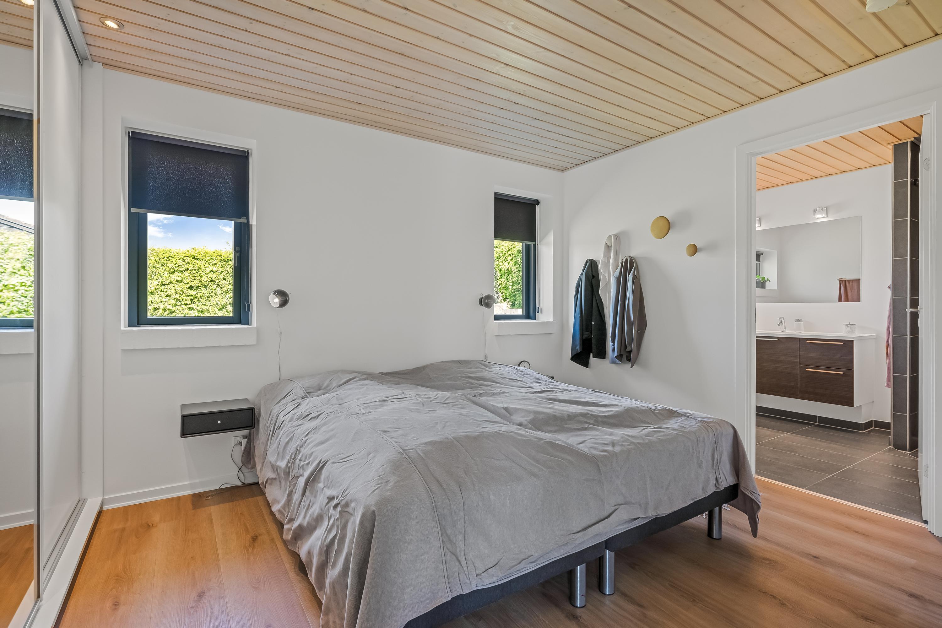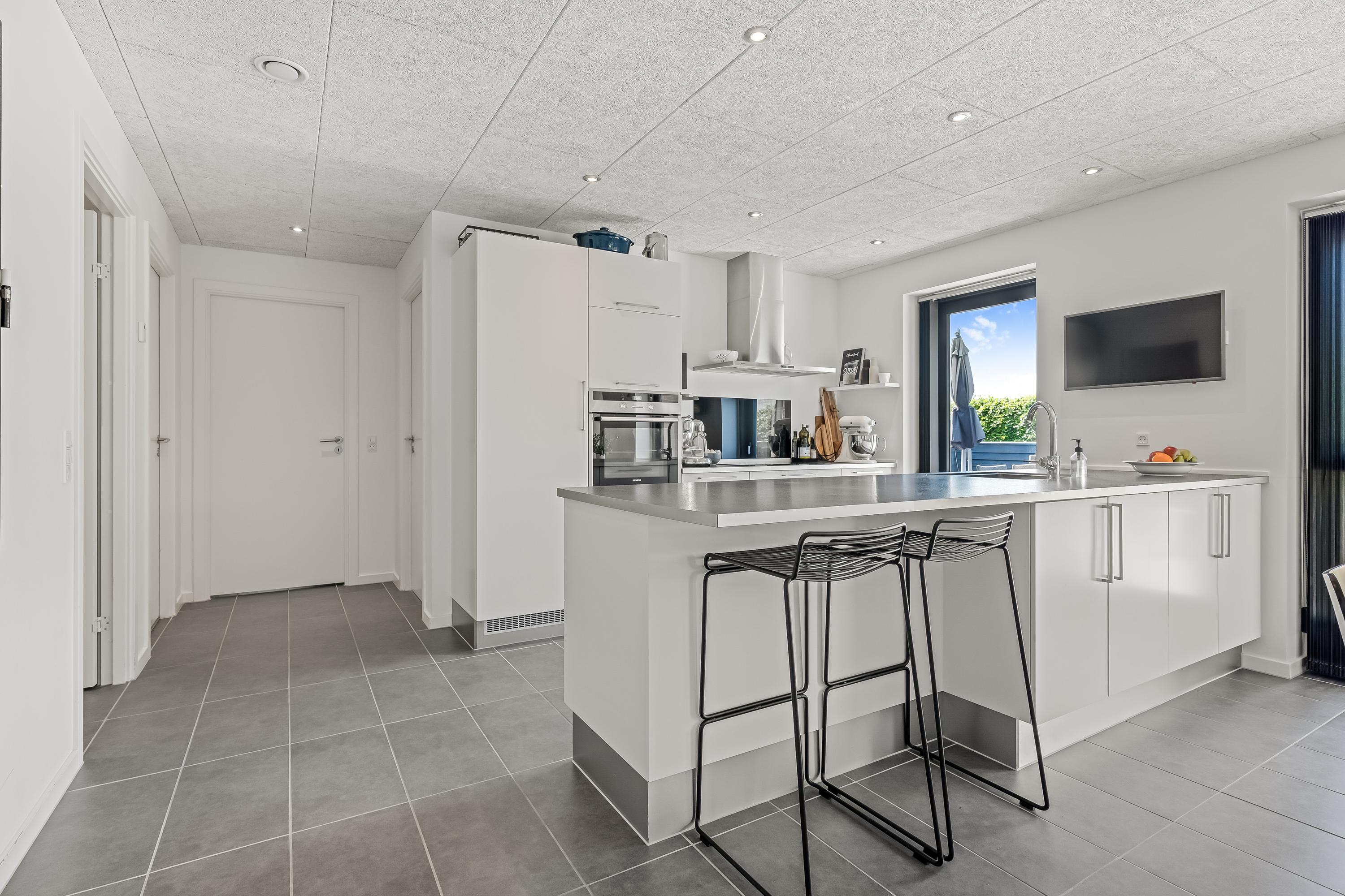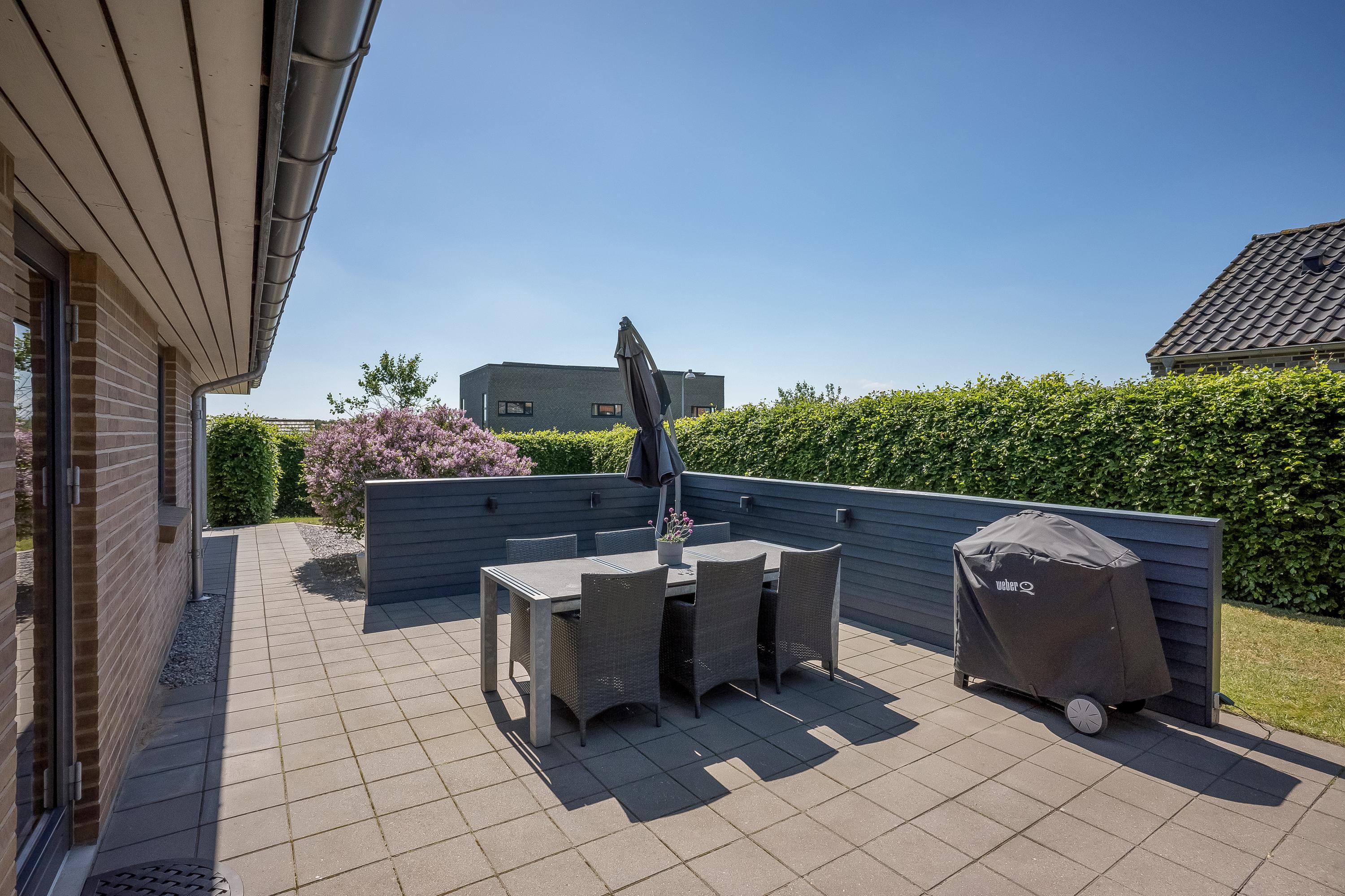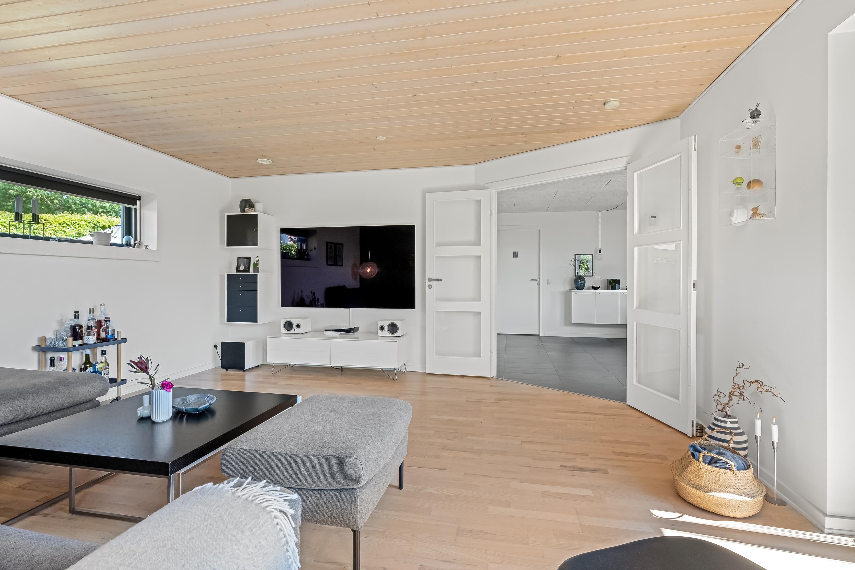 Moderne vinkelbygget villa i attraktivt kvarter - solrig terrasse og flot orangeri