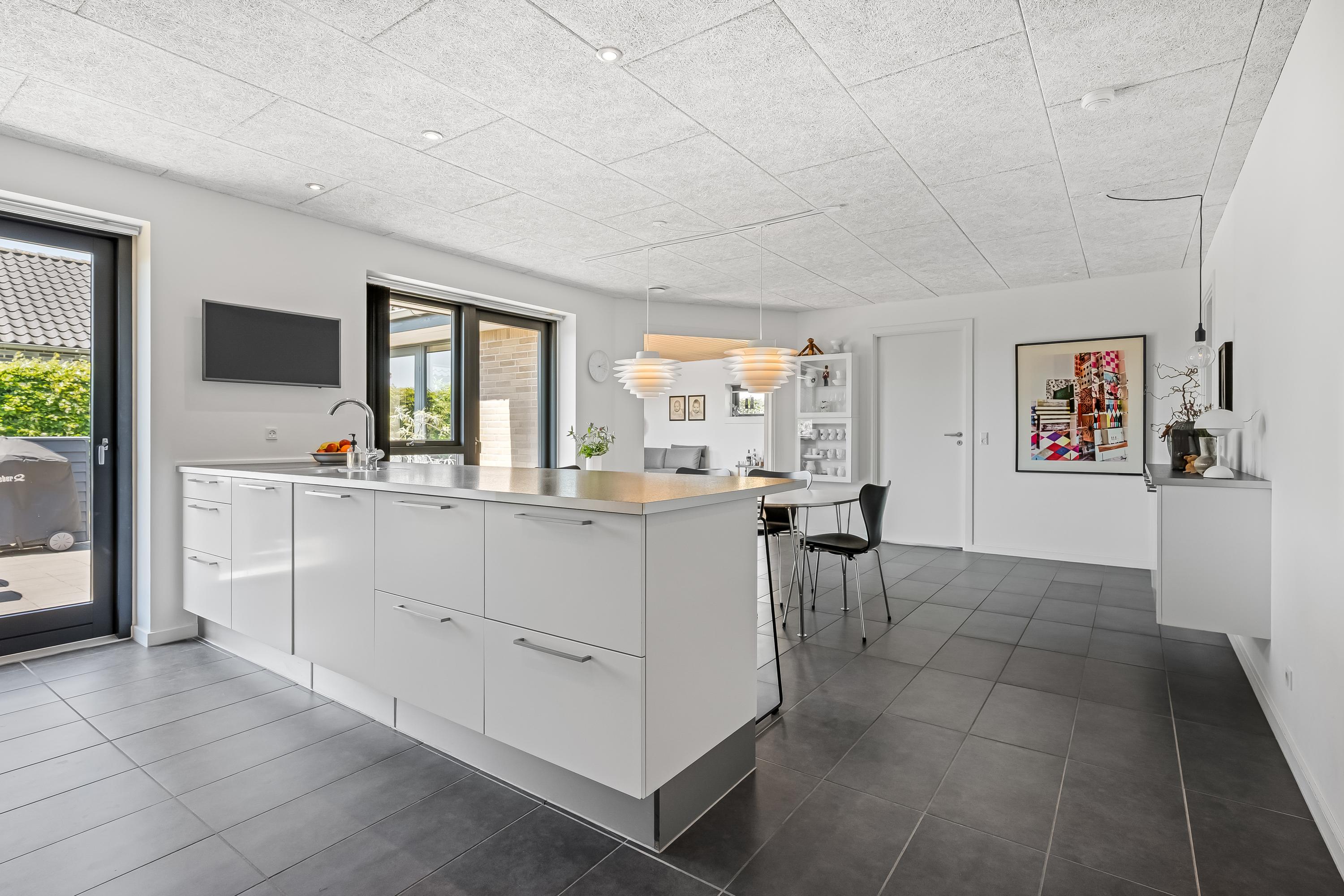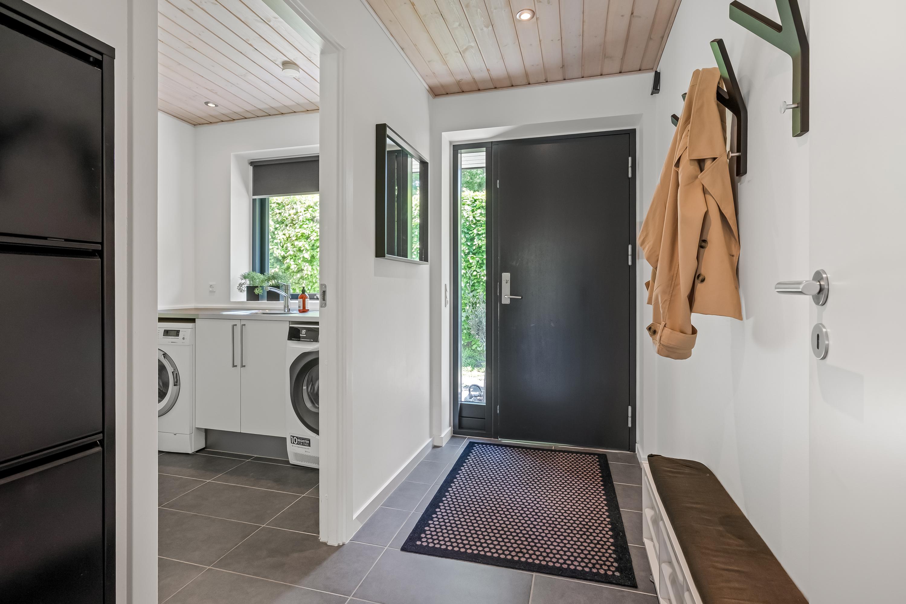 Velkommen til denne moderne etplansvilla, der er perfekt beliggende i et roligt villakvarter. Her får du en bolig, der kombinerer stilfuld arkitektur med funktionelle løsninger, ideel for både børnefamilier og par. Bebygget areal på 186 kvm, hvoraf boligen udgør 142 kvm med en god planløsning uden