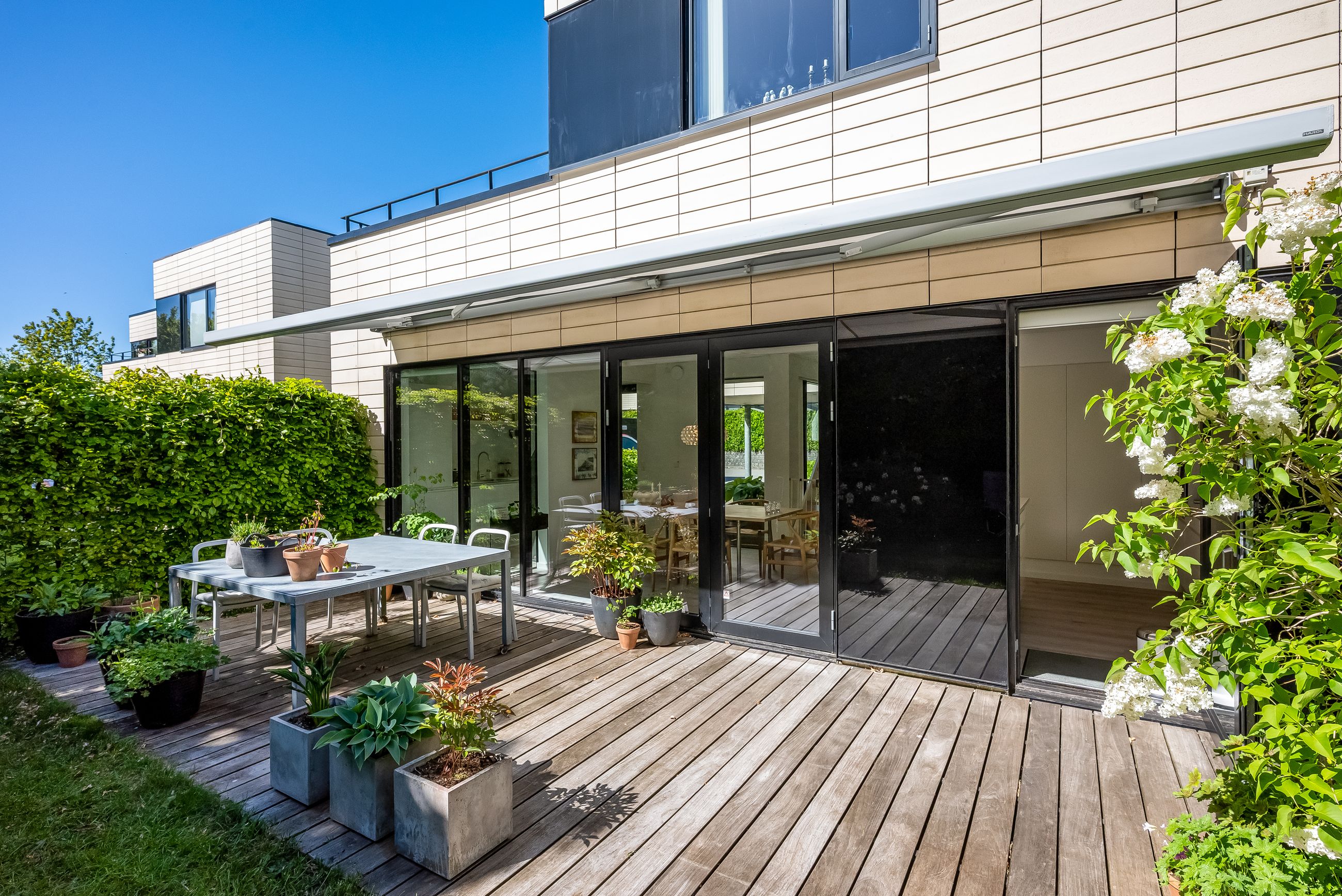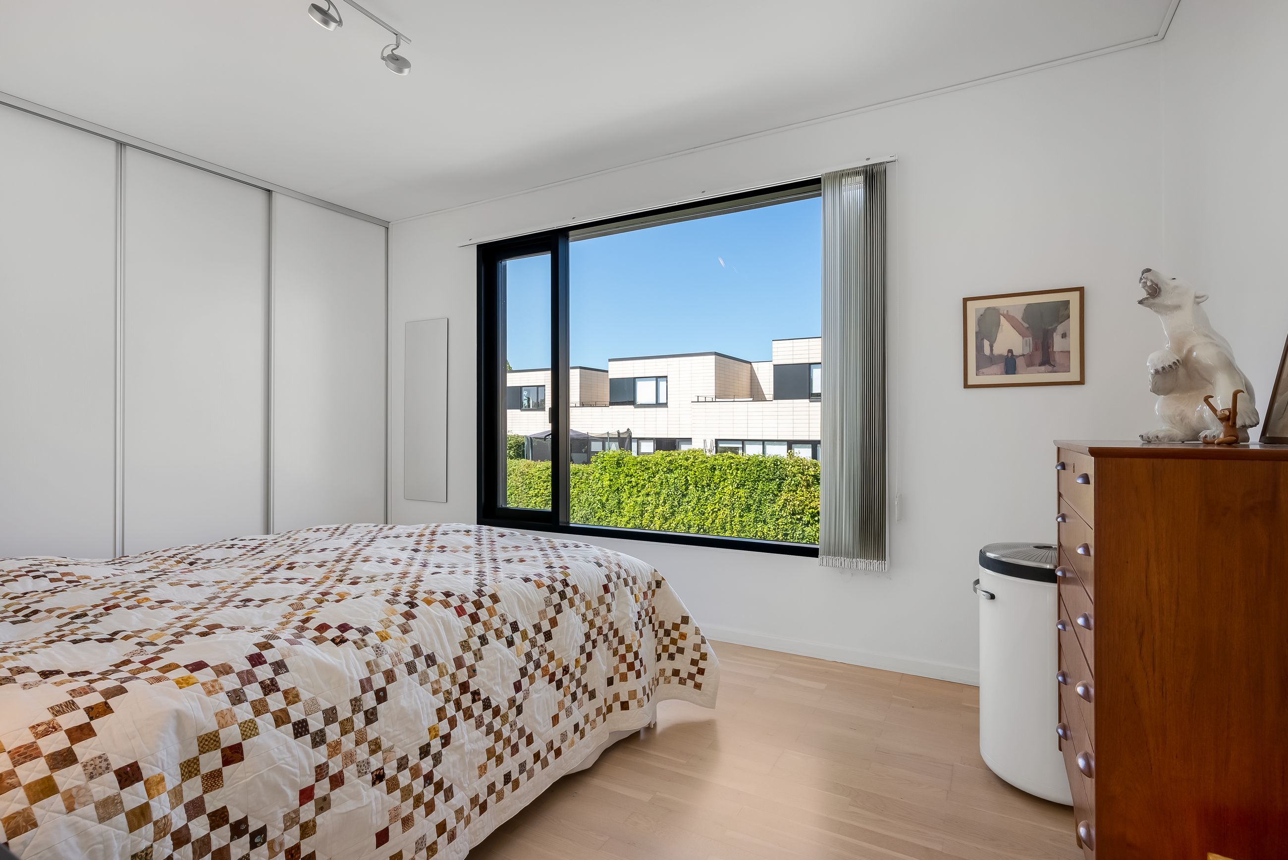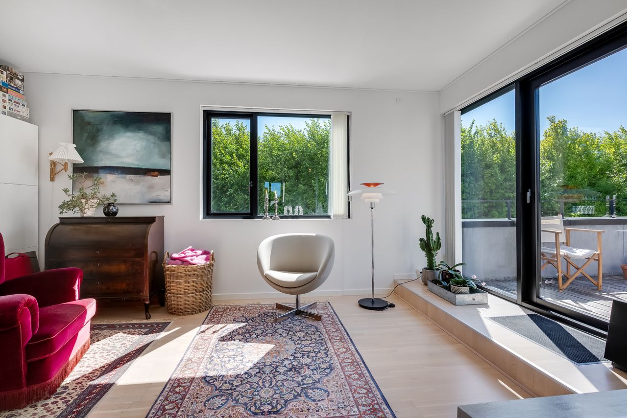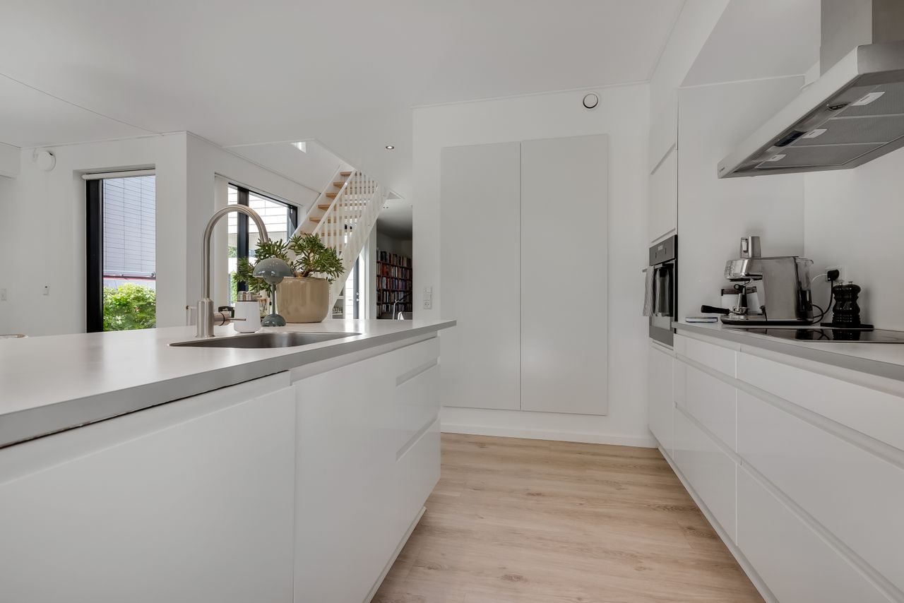 Med en moderne planløsning får du masser af naturligt lysindfald gennem de store vinduespartier, mens den syd- og vestvendte terrasse samt haven tilbyder fantastiske muligheder for at nyde solen hele dagen. Boligen strækker sig over 140 kvadratmeter fordelt på to fulde etager. Hertil kommer et praktisk depotrum samt et integreret vognly, der gør hverdagen nemmere.