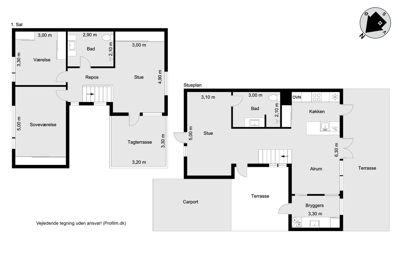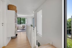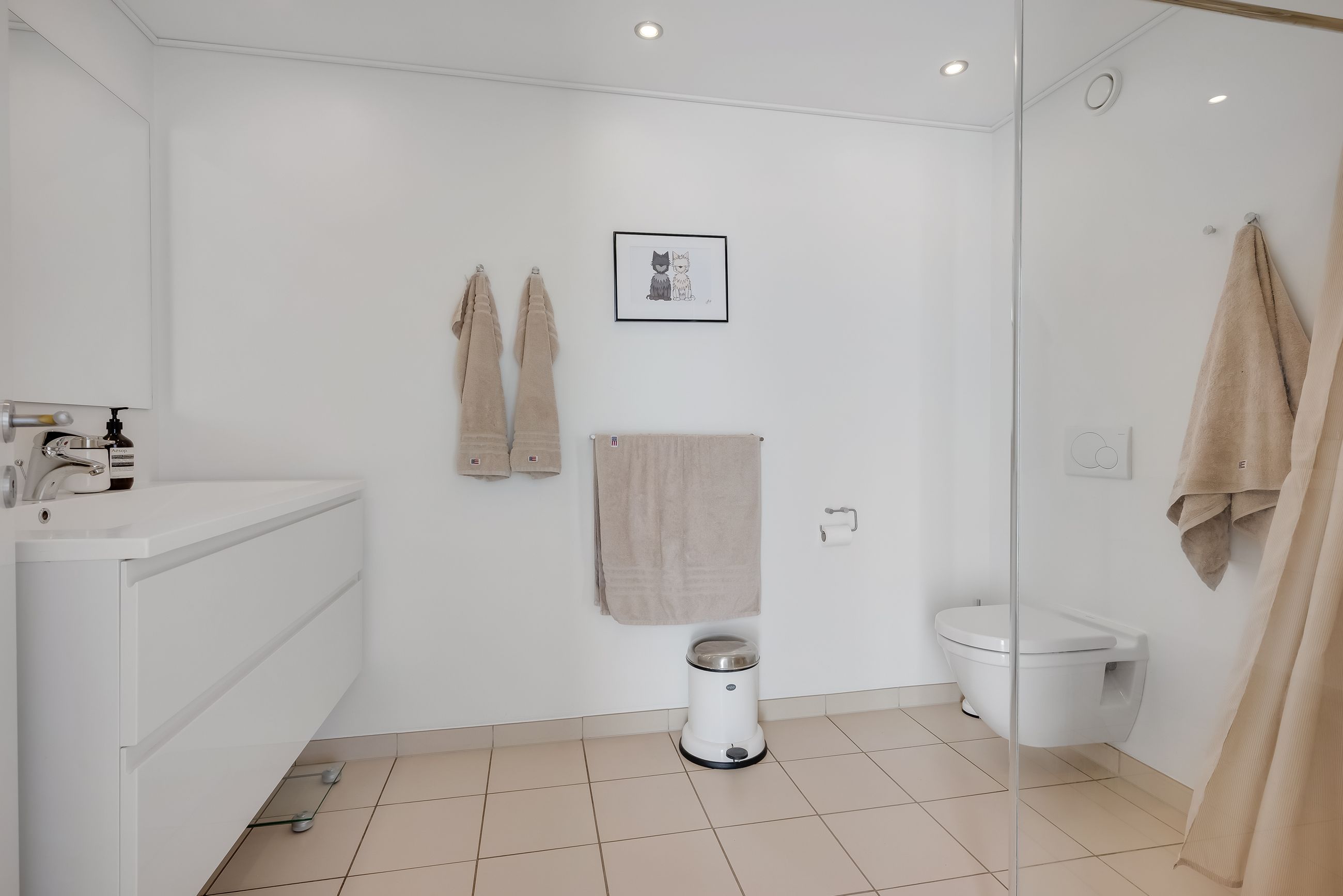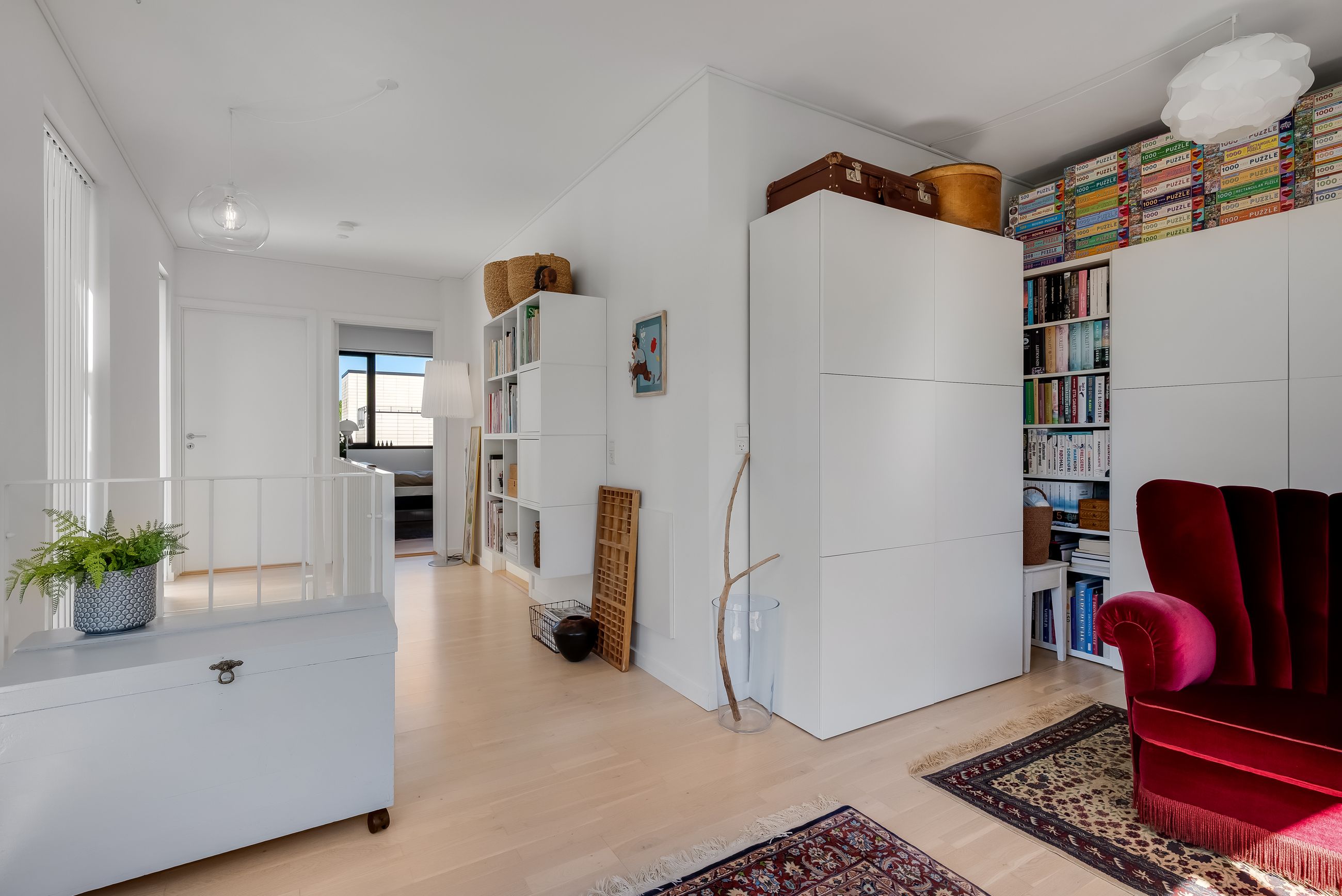 På første sal finder du repos, to gode soverum, et lækkert badeværelse samt endnu en stue, der kan omdannes til yderligere et værelse efter behov. Herfra er der også adgang til tagterrassen – ideel til afslapning eller solbadning.