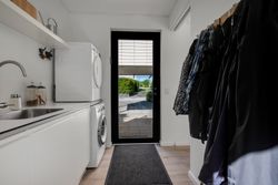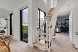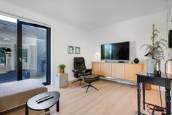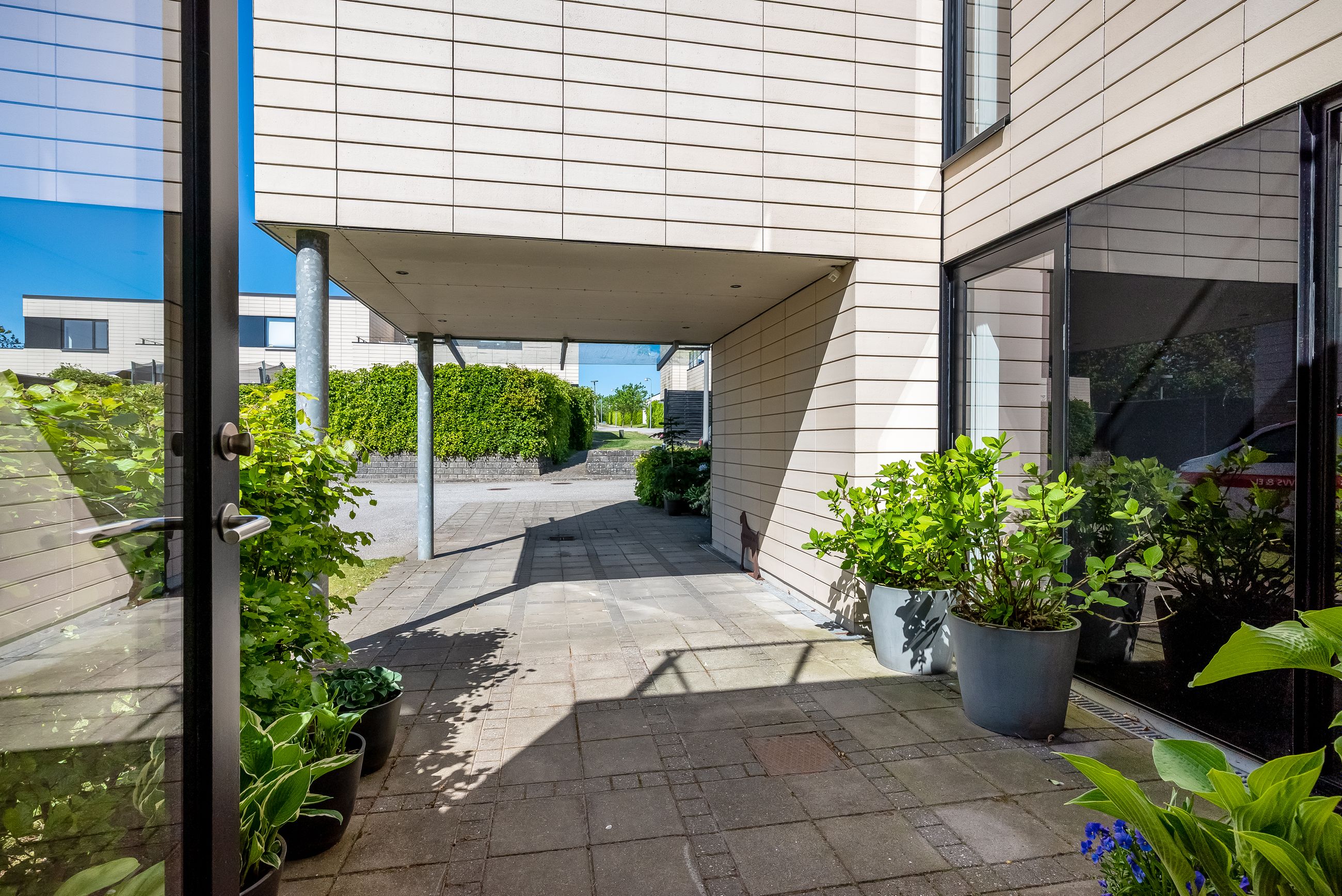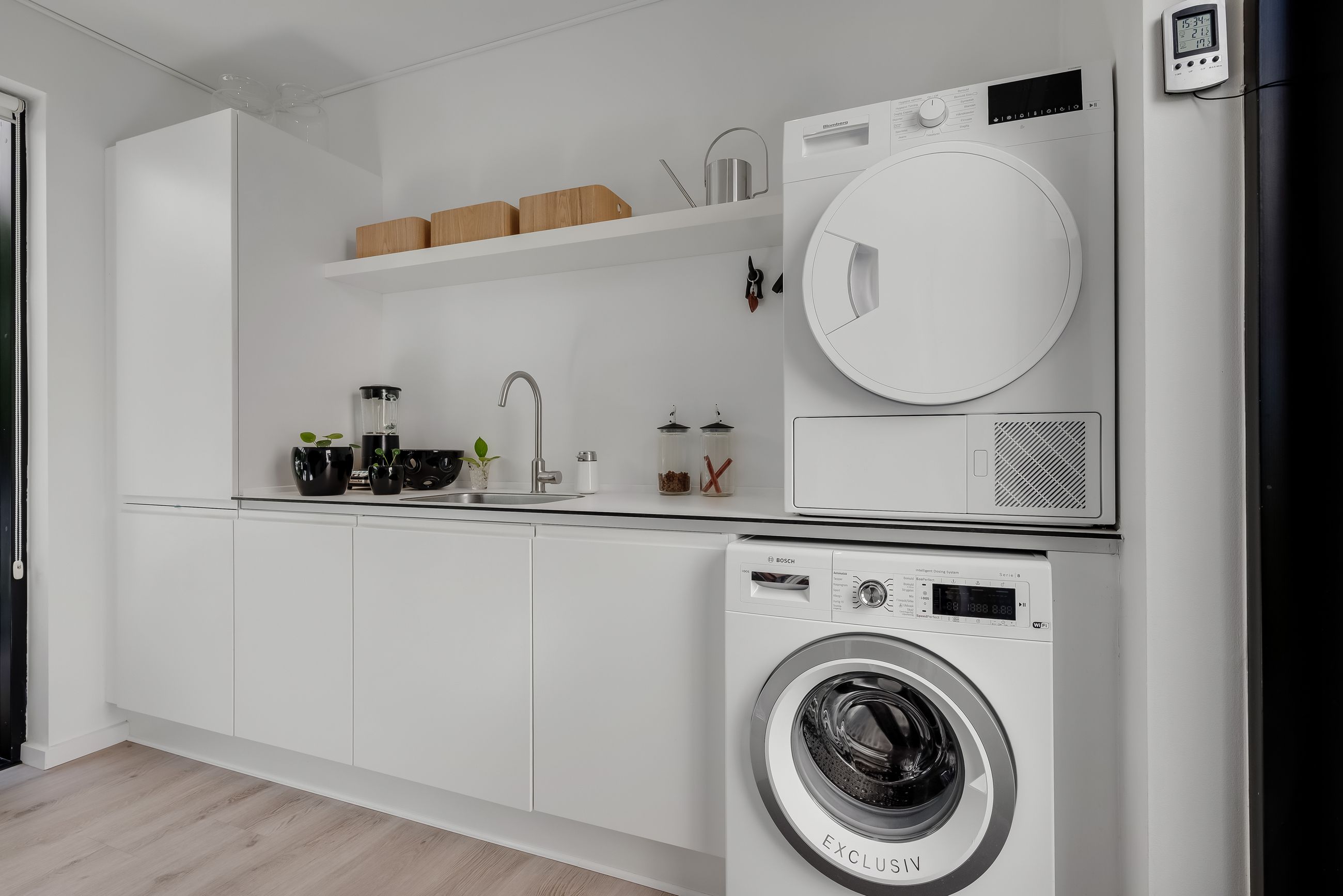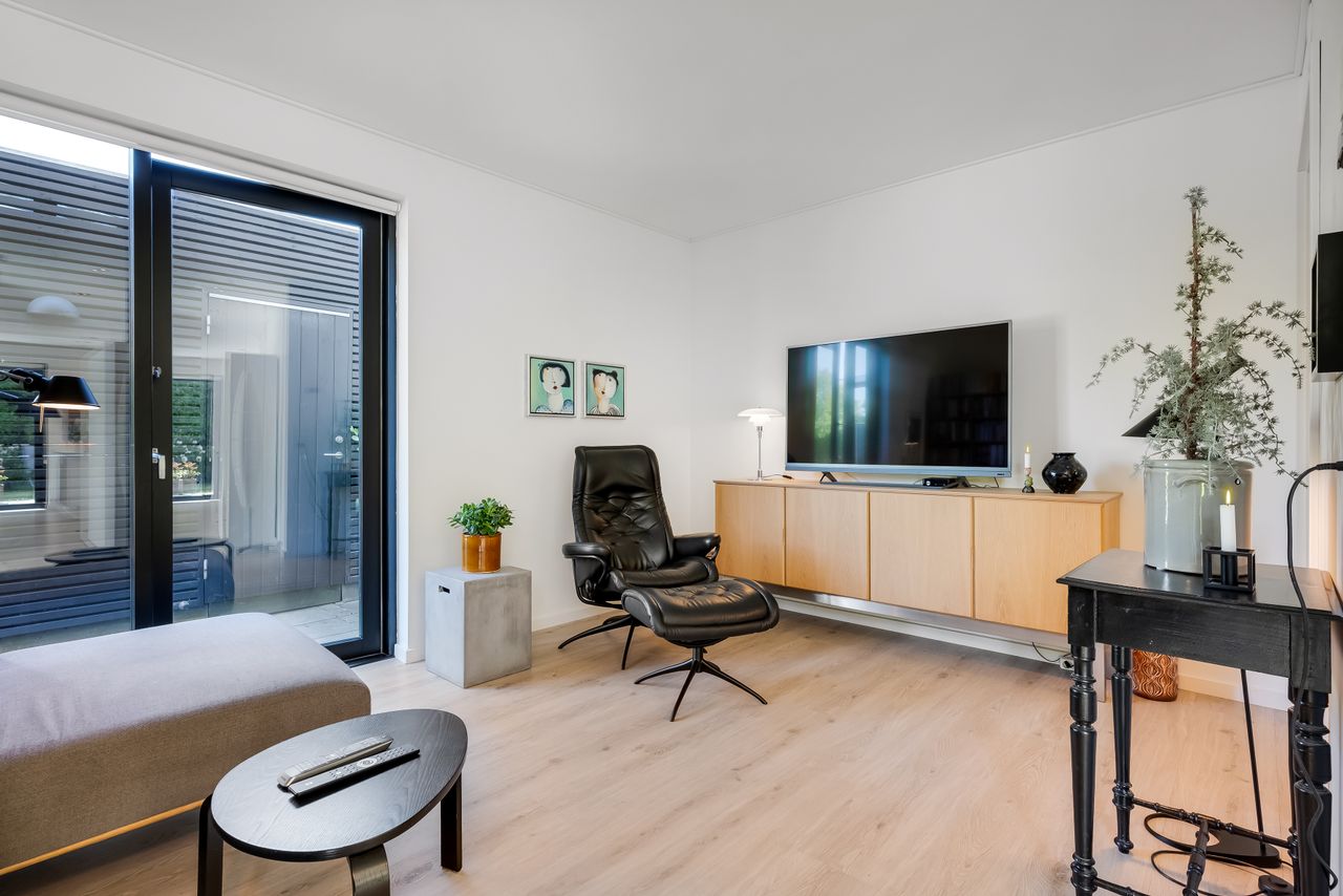 Indretningen er både moderne og tidssvarende med fokus på funktionalitet. Stueplan byder på et lyst bryggers samt et åbent køkken/alrum med direkte adgang til den sydvendte træterrasse udstyret med markise – perfekt til hyggelige stunder ude som inde. Derudover er der en dejlig stue og et stort flot badeværelse.