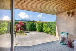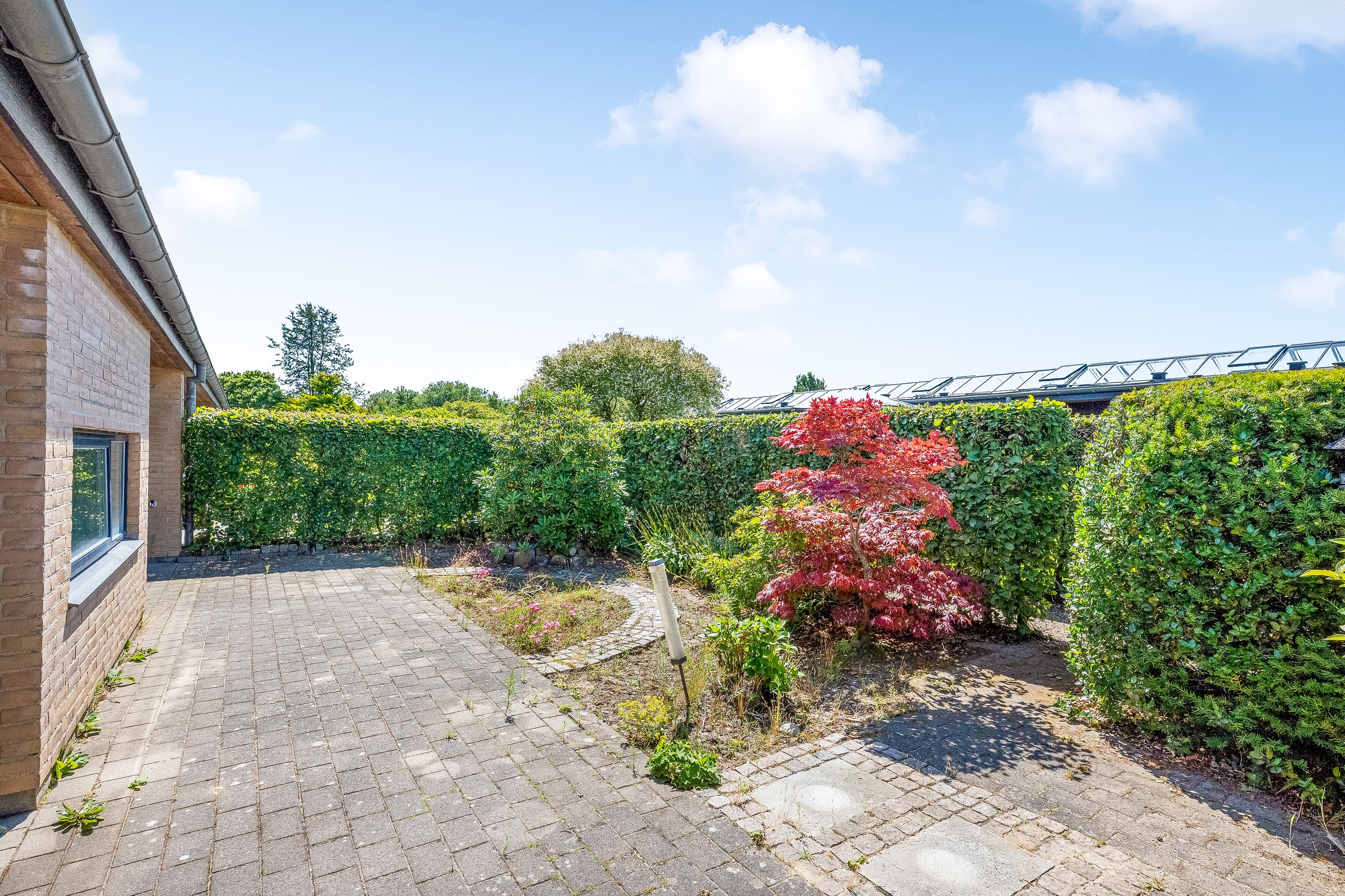 Den overskuelige have kræver minimal vedligeholdelse og byder på en stor flisebelagt terrasse – ideel for dem, der ønsker at nyde udelivet uden større besvær. Beliggenheden er optimalt i forhold til at nyde senior tilværelsen, da ejendommen ligger i et roligt villakvarter tæt på indkøbsmuligheder og grønne områder.