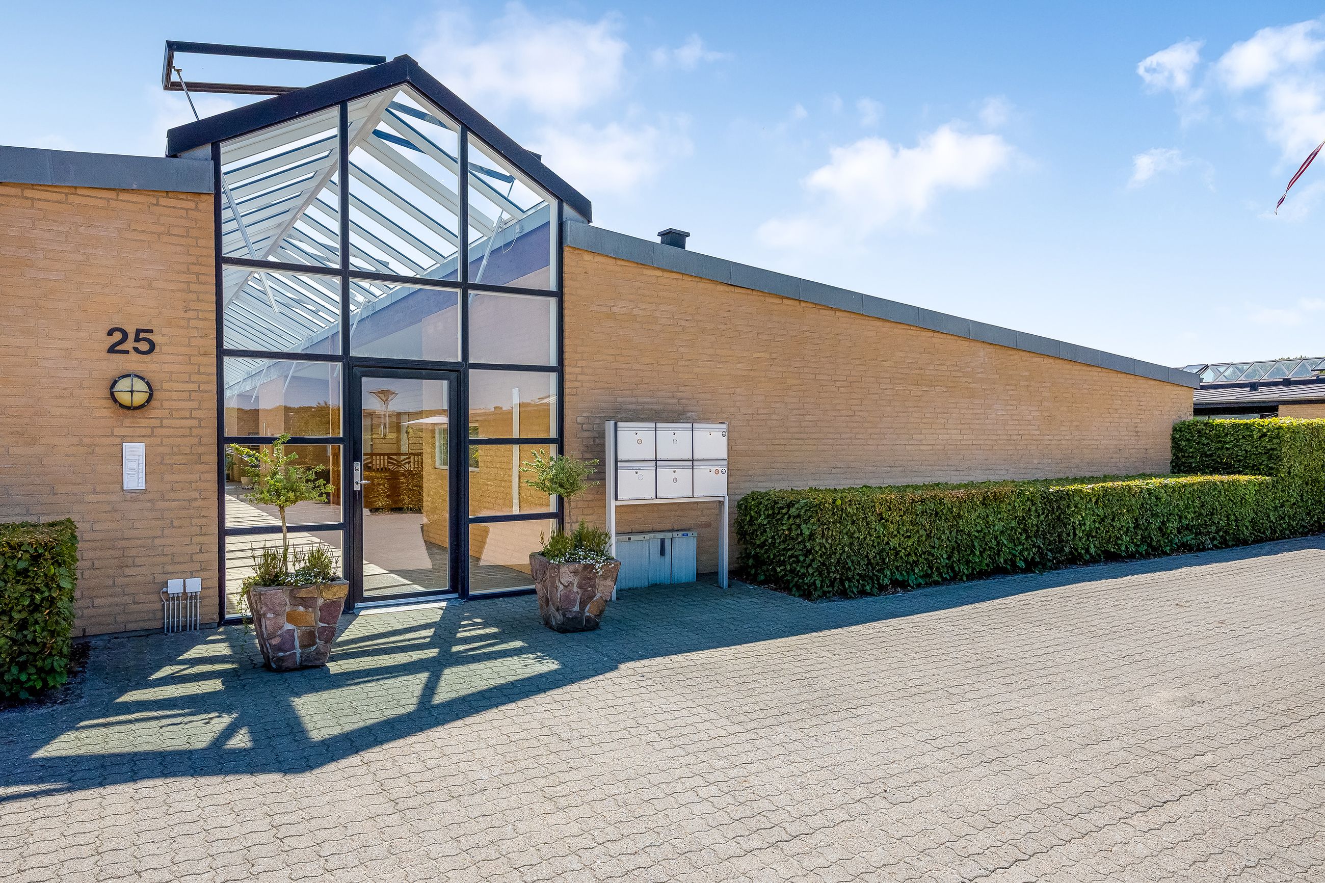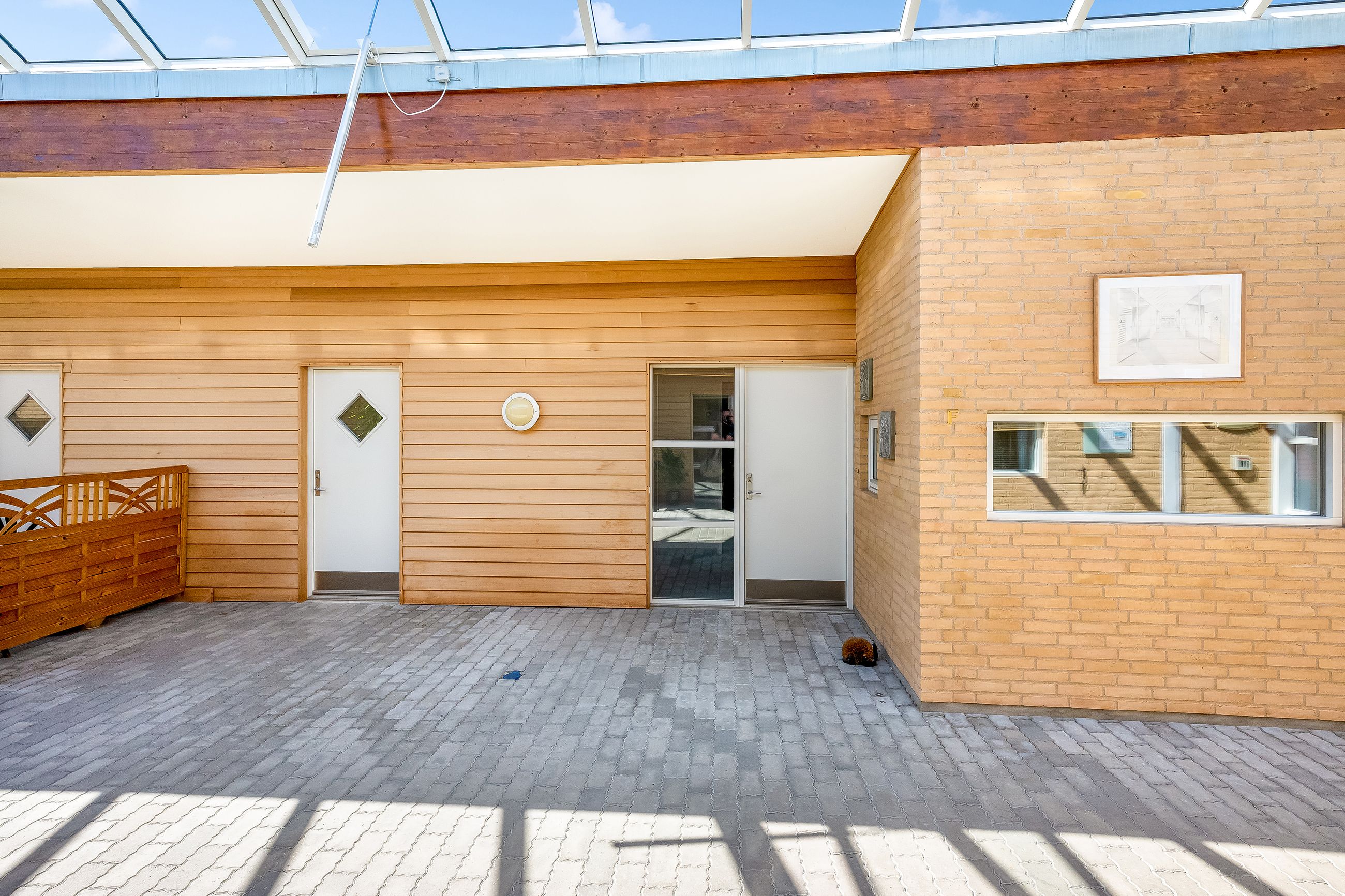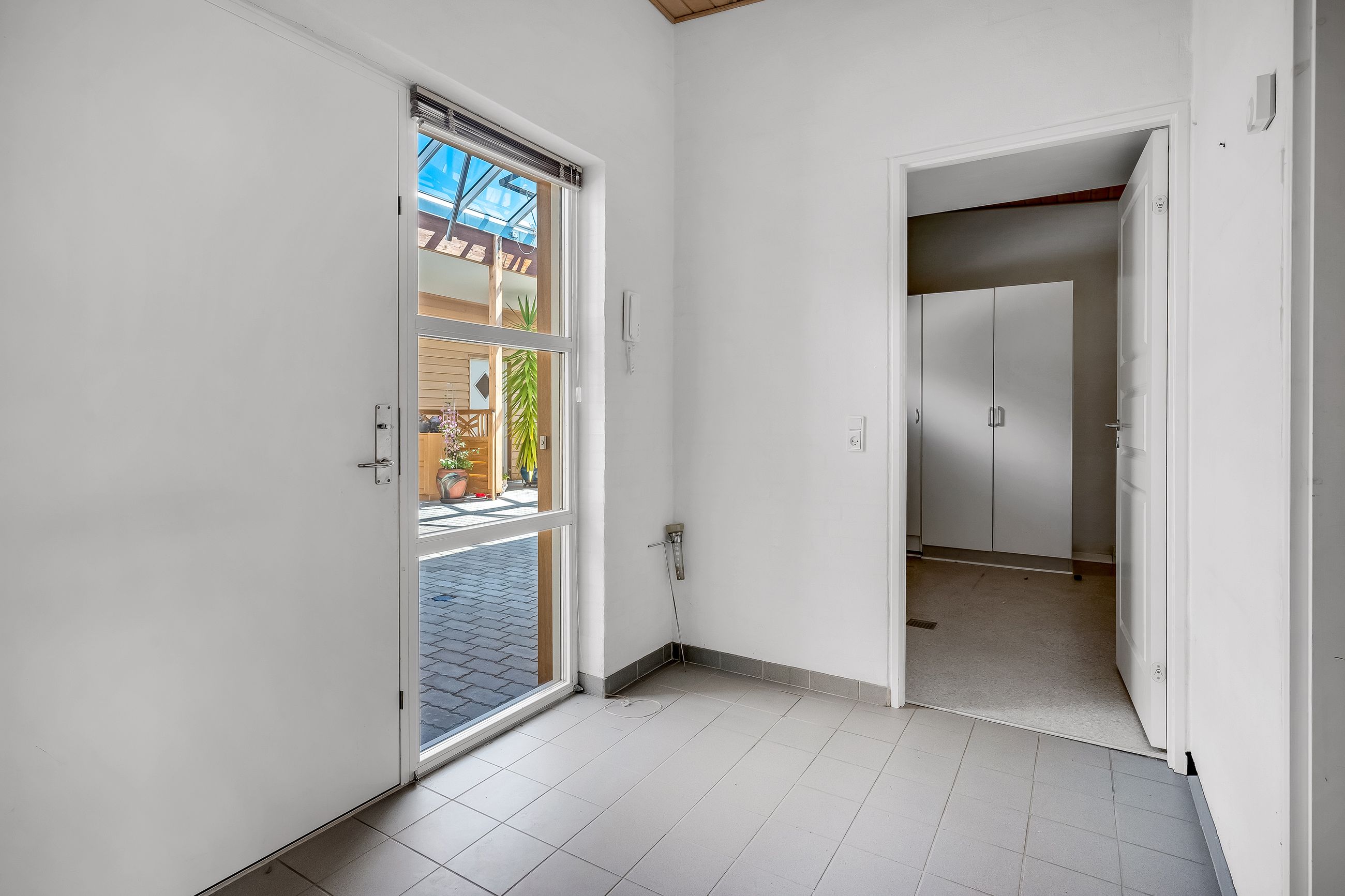 Indenfor bydes du velkommen i entréen, der leder videre til et åbent køkken/alrum/stue-område. Herfra er der direkte adgang til den vestvendte terrasse samt den lille have – perfekt til afslapning efter arbejde eller weekendens grillhygge. Boligen rummer desuden et funktionelt bryggers, et rummeligt badeværelse samt et soveværelse med egen udgang til terrassen. Yderligere findes der et værelse/kontor, som kan benyttes efter behov.