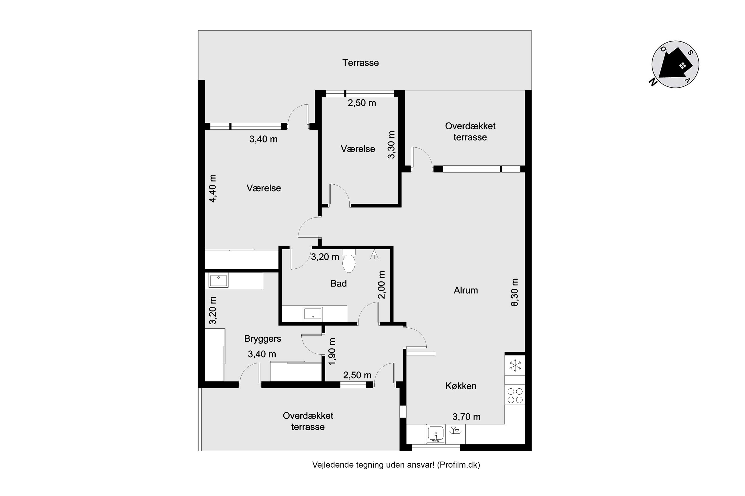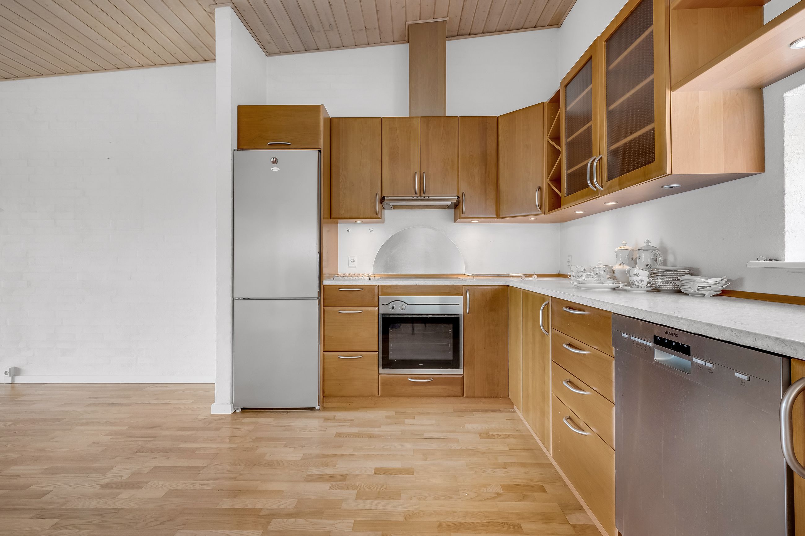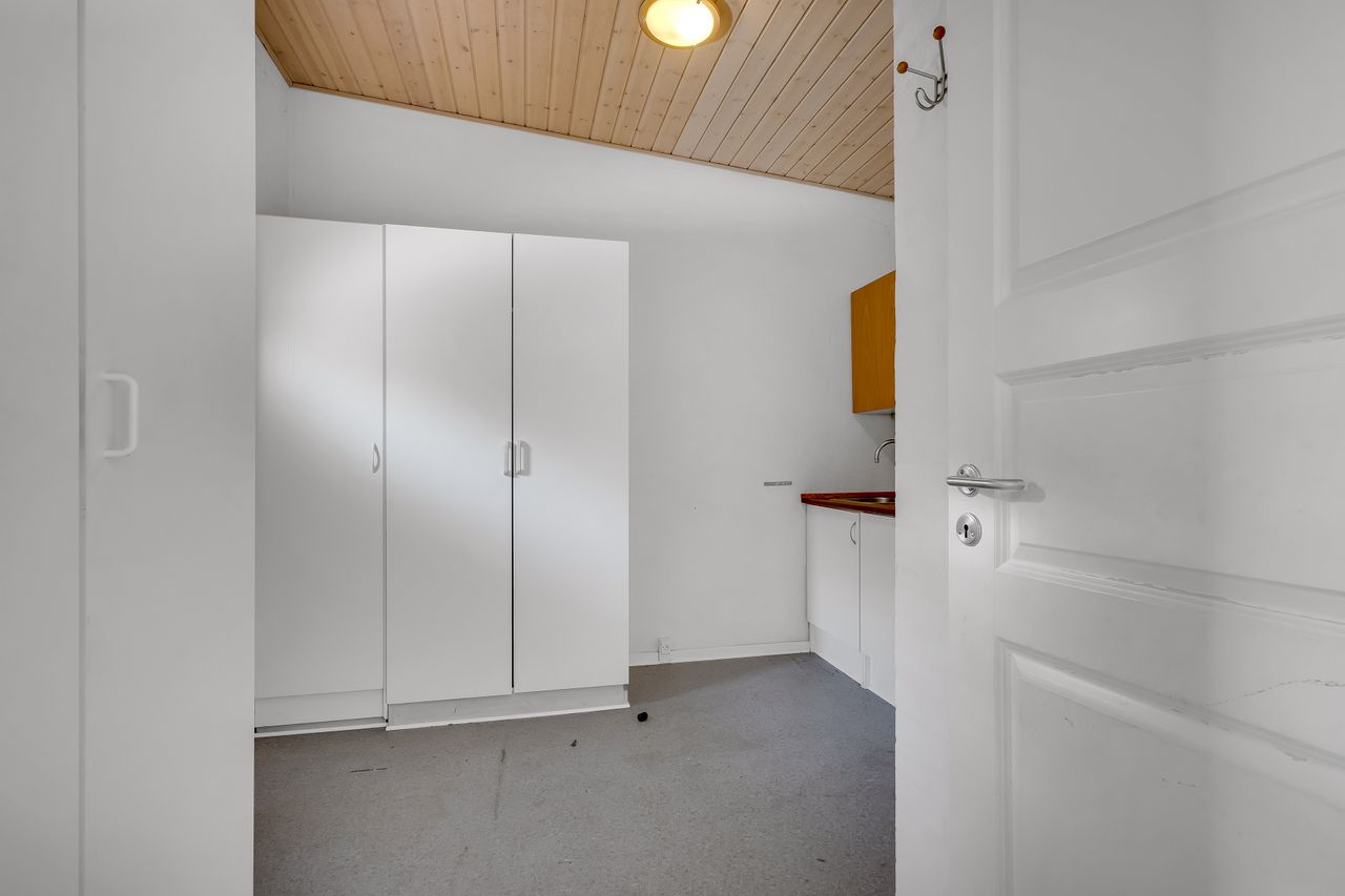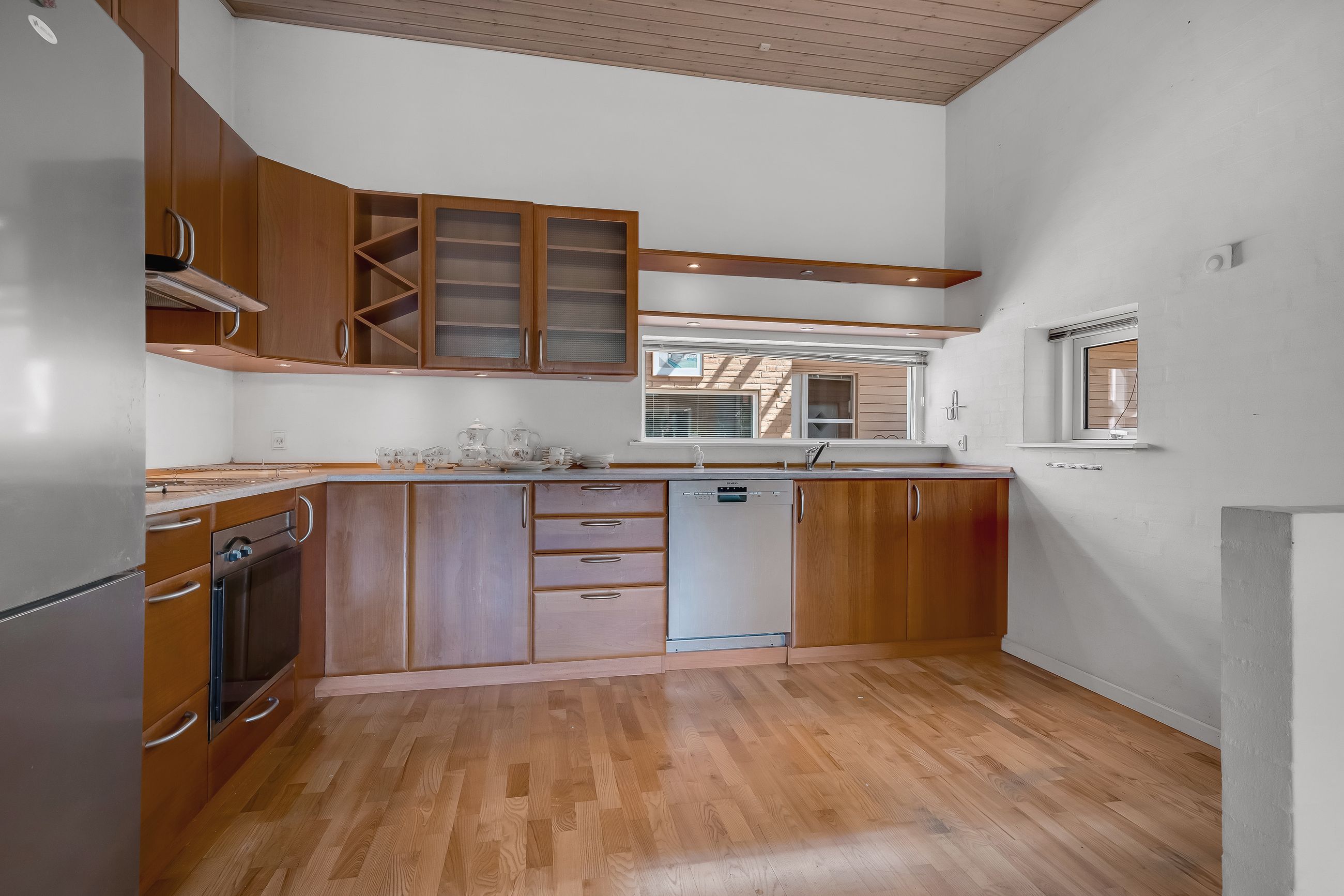 Indenfor bydes du velkommen i entréen, der leder videre til et åbent køkken/alrum/stue-område. Herfra er der direkte adgang til den vestvendte terrasse samt den lille have – perfekt til afslapning efter arbejde eller weekendens grillhygge. Boligen rummer desuden et funktionelt bryggers, et rummeligt badeværelse samt et soveværelse med egen udgang til terrassen. Yderligere findes der et værelse/kontor, som kan benyttes efter behov.