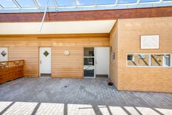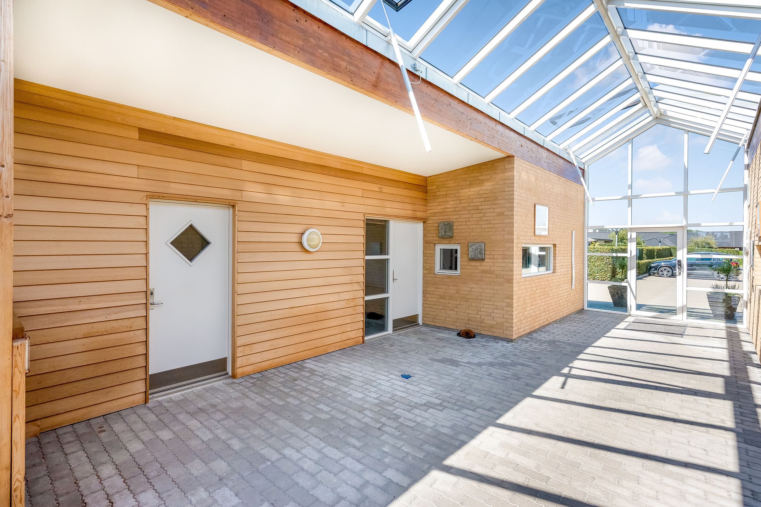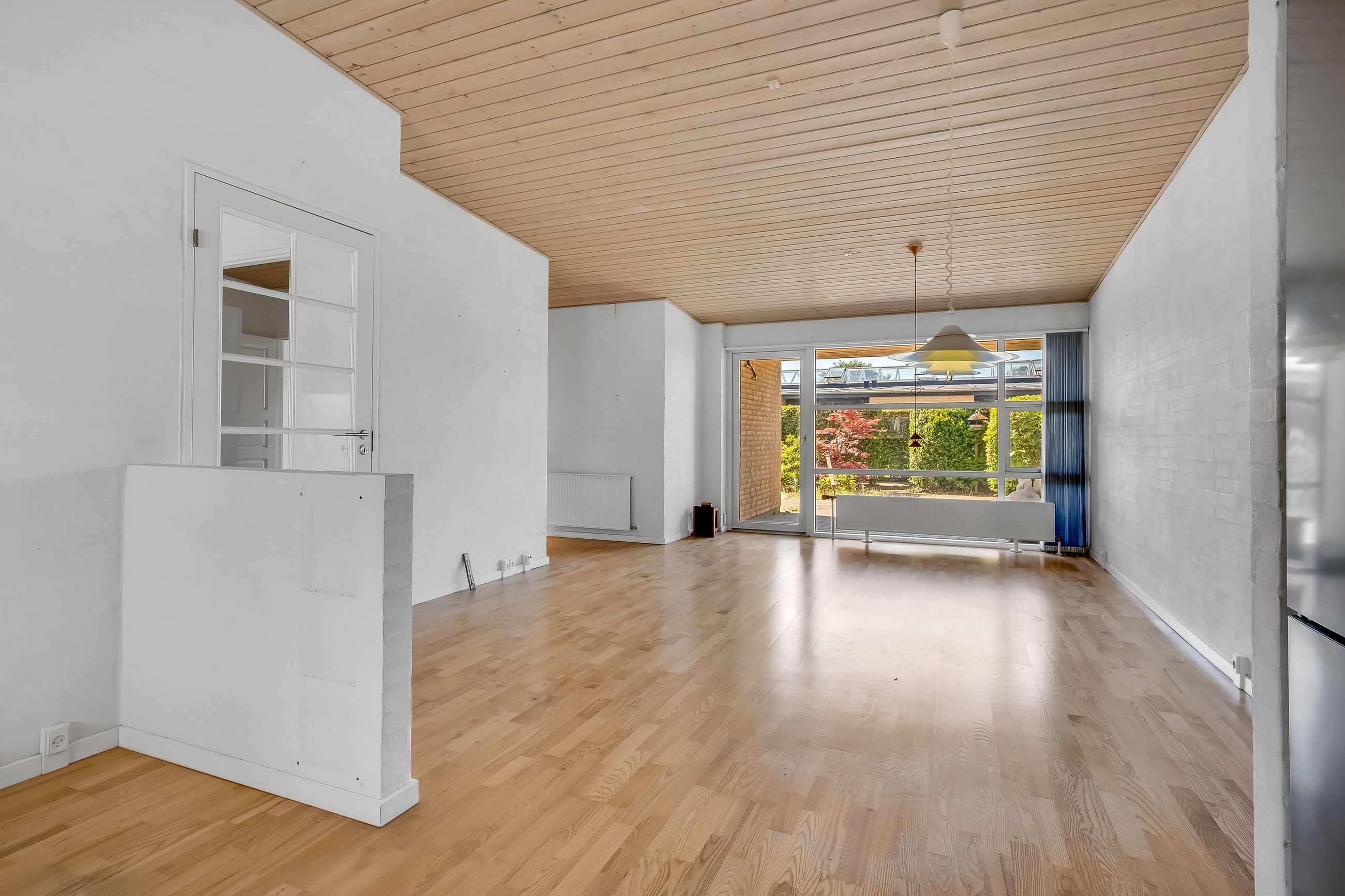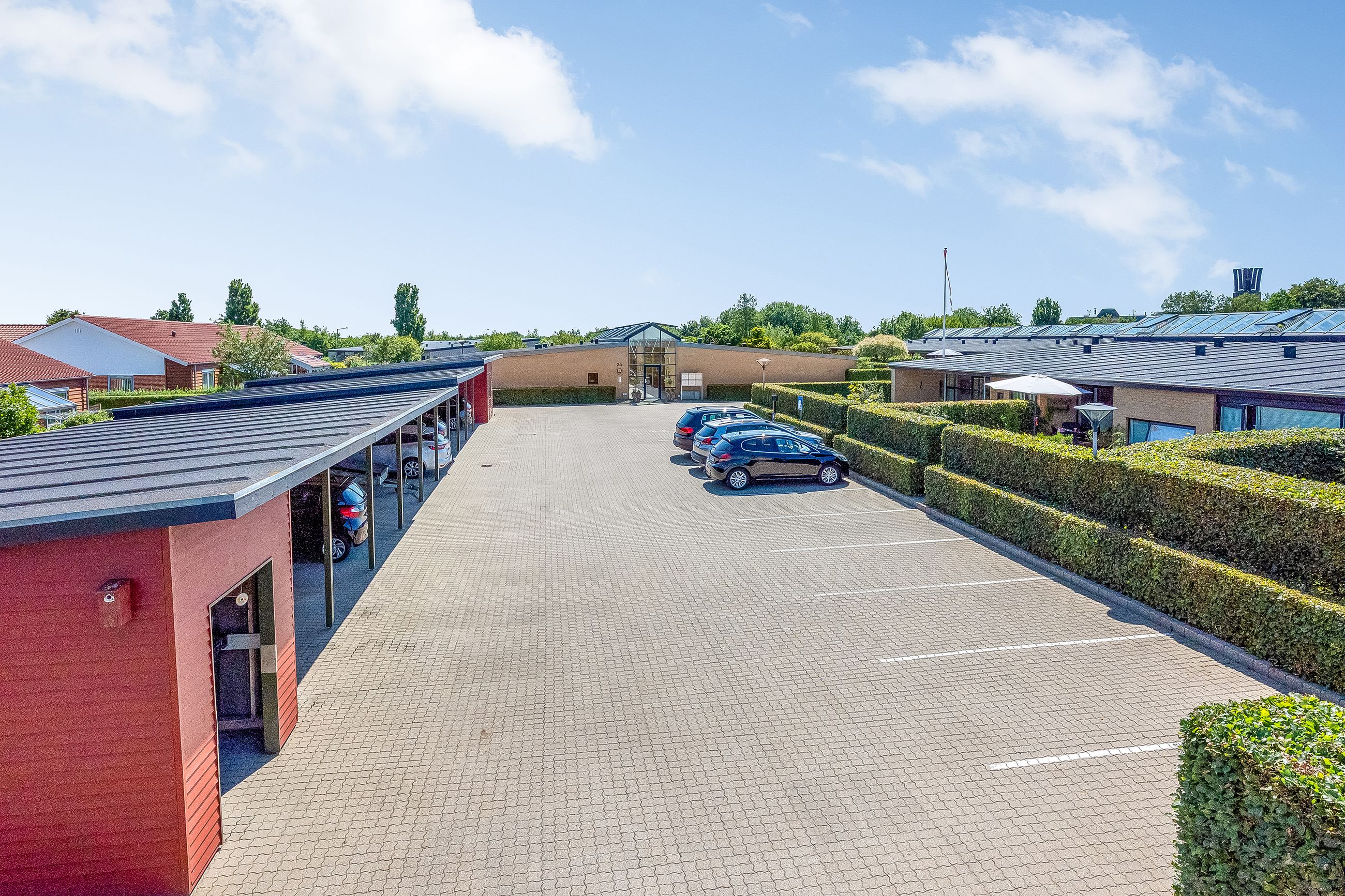Boligen er praktisk indrettet på ét plan og ligger som en del af en bygning med seks boliger. Her finder du et skønt fællesareal i form af en overdækket arkade, der indbyder til hyggelige stunder med naboerne. Derudover har du brugsret til egen carport, hvilket gør hverdagen nemmere.