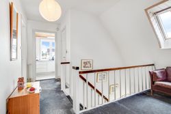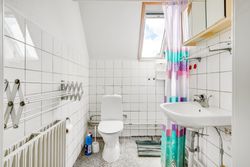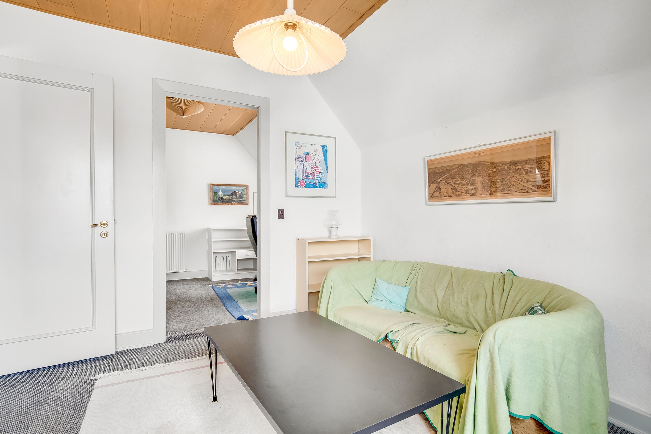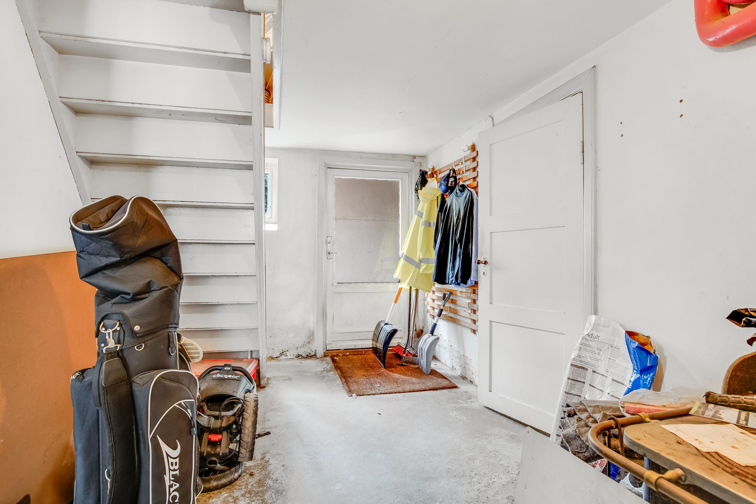 En elegant trappe fører dig op til første sal, hvor tre til fire soverum venter. Her er også en repos samt endnu et badeværelse fra tidligere tider – alt sammen klar til at blive forvandlet efter dine ønsker. Kælderen har tidligere været brugt som kontor- og aktivitetsrum og rummer mange muligheder for kreativ udfoldelse eller ekstra opholdsplads.