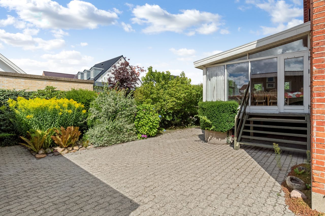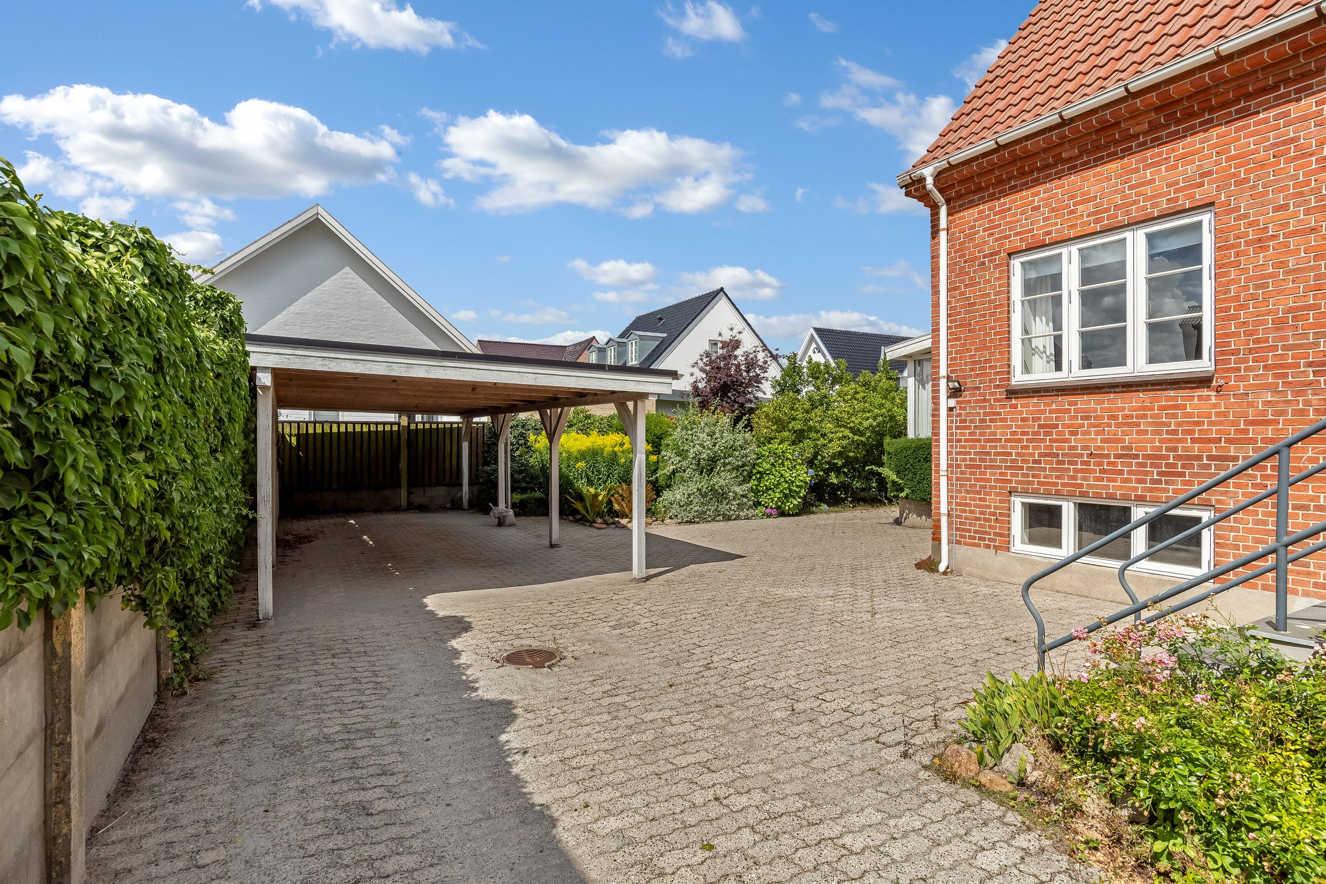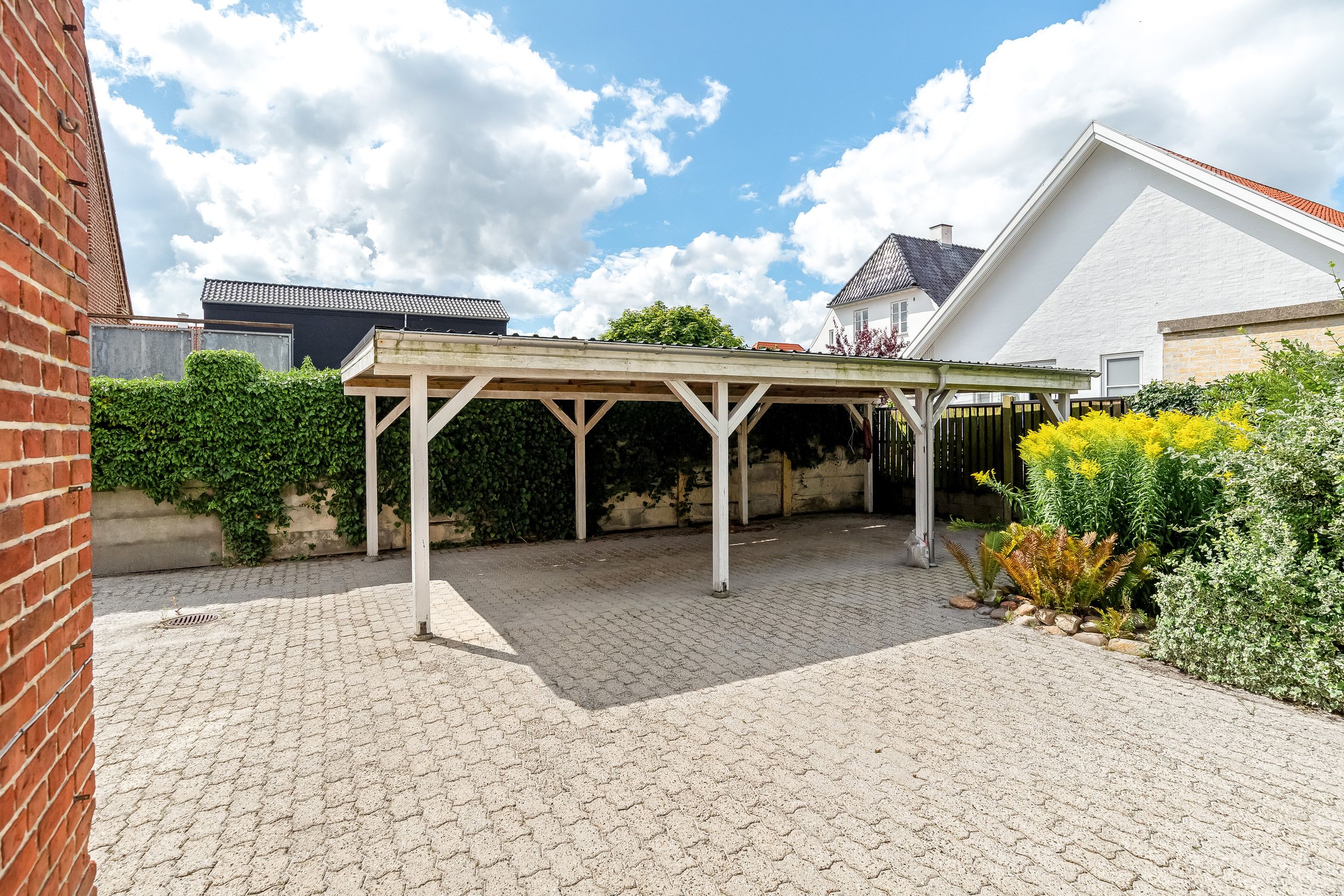 Udenfor finder du både carport og garage på egen grund – perfekt til bilentusiasten eller dem med behov for ekstra god plads til parkering. Haven er primært udlagt i belægning, hvilket sikrer minimal vedligeholdelse men maksimal udnyttelse som terrasseområde eller legeplads for børnene.