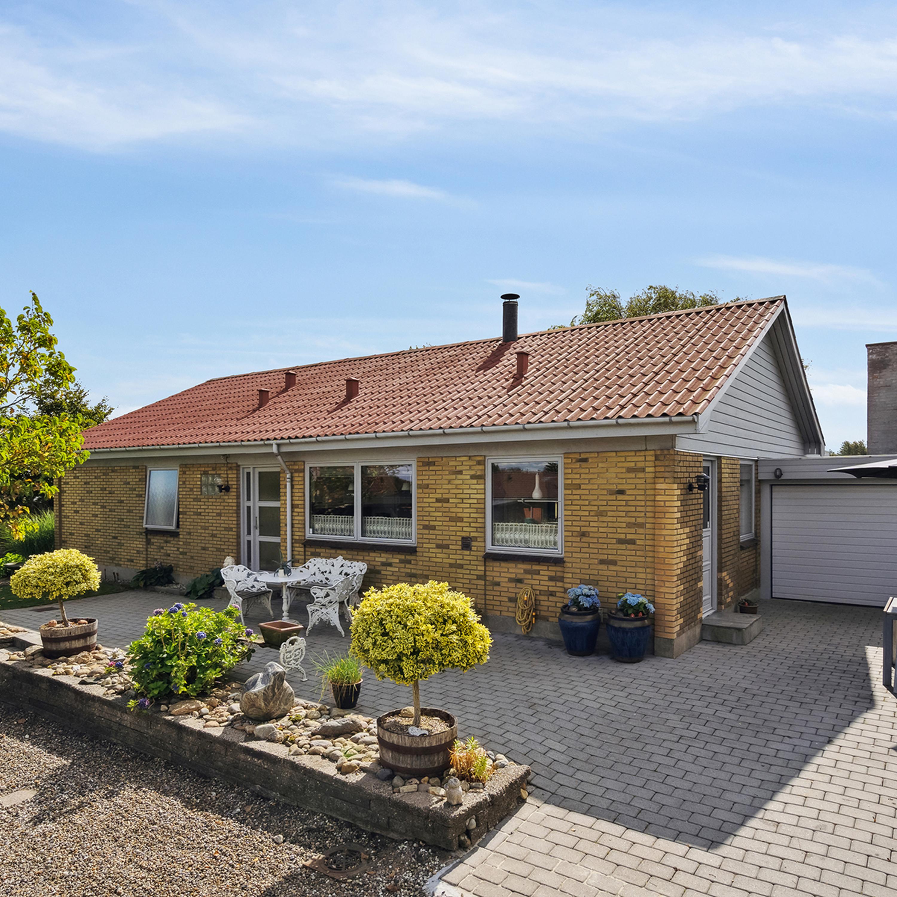 I udkanten af Sørvad ligger denne skønne étplansvilla tilbagetrukket på en højtbeliggende i alt 1371 m2 stor koteletgrund, hvilket sikrer en privat og fredelig have, som giver gode betingelser for familielivet.