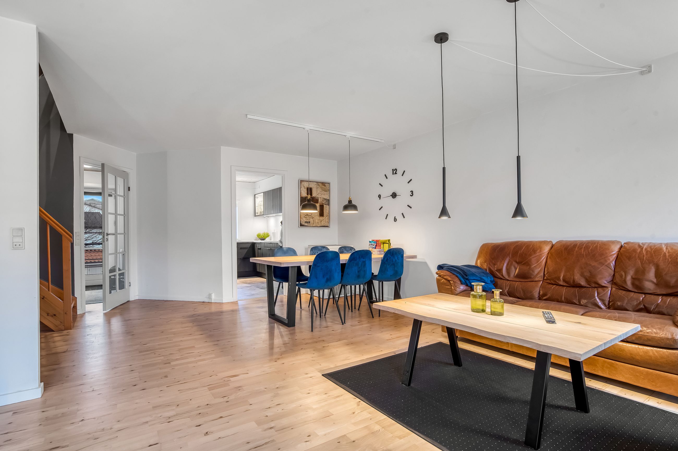 Boligen er særdeles velindrettet og fremstår lys og indbydende med indbygningsspots samt flotte parketgulve i boligens