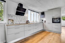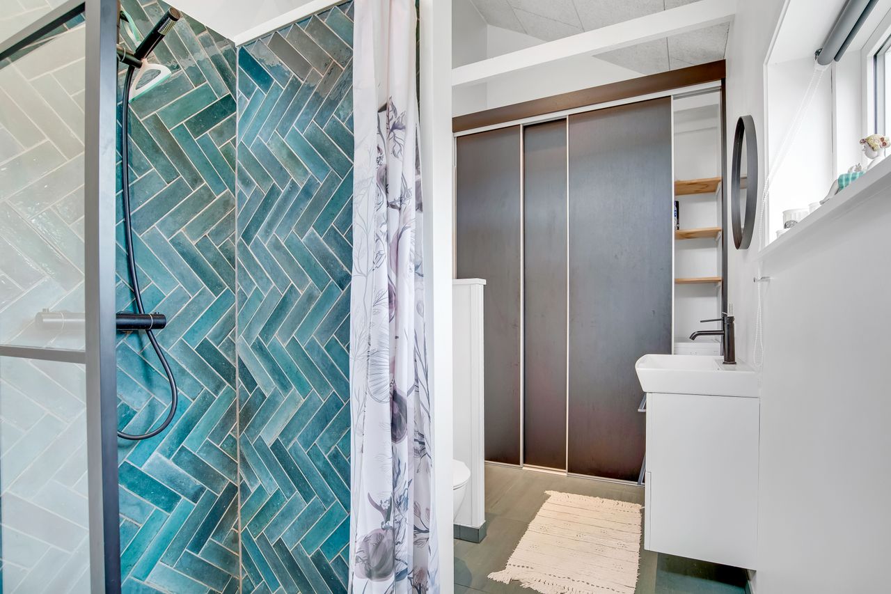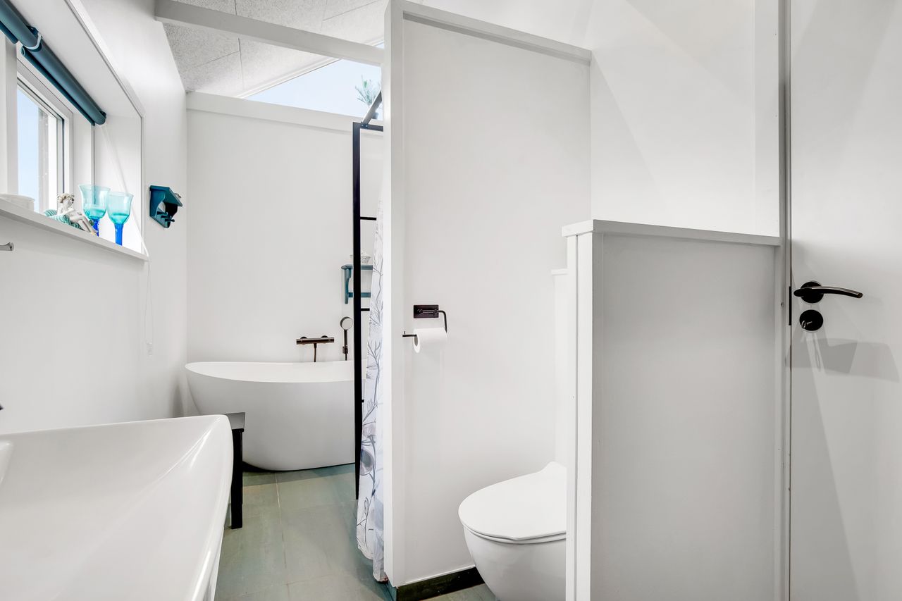Fritidshuset har en attraktiv placering blot ca. 200 meter fra Limfjorden og byder på skøn udsigt over vandet fra både hus og grund. Her kan I nyde roen og udsigten i det varme vildmarksbad – eller tage en afslappende stund i husets indendørs badeværelse med både bruseniche og badekar.